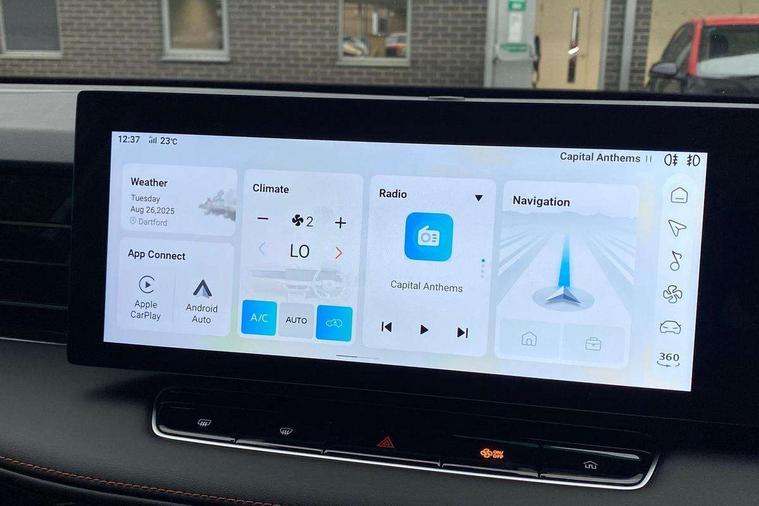 Driver attention alert, 12.3" colour touchscreen, 12.3" Virtual driver information display, 360 degree parking camera, Adaptive cruise control, Android Auto, Apple CarPlay, Blind spot detection, Bluetooth connectivity, Driving modes, Emergency call service, Forward collision warning, Front parking sensors, Intelligent speed limit assist, iSmart, Lane change assist, Lane keep assist system (LAS) with Lane departure warning system (LDWS), Live services, PAS, Rear cross traffic alert, Rear parking sensors, Satellite navigation system, Smart power tailgate, Traffic jam assist, Trip computer, Wireless charging, 4 USB ports 2 front and 2 rear, 8 Speaker audio system, DAB audio, Auto dimming rear view mirror, Automatic headlights, Electric adjustable/heated/folding door mirrors with memory, Follow me home headlights, Front and rear aero wiper, Front and rear electric windows with one-touch up/down, Front fog lights, Intelligent high beam, LED 3rd brake light, LED daytime running lights, LED Headlights, LED rear lights, Rain sensing wipers, Rear privacy glass, Rear side wing doors, Side steps, Silver roof rails, Vehicle to Load, 12V power sockets, 2nd row 60/40 split fold seat, 3 rear headrests, 3 seat bench in 2nd row, 3 stage heated front seats, 4 way electric adjustable passenger seat, 6 way electric adjustable drivers seat with lumbar adjustment and memory function with easy access, Dual zone automatic air conditioning, Front and rear reading lights, Front centre sliding armrest with storage compartment, Front headrests, Height and reach adjustable steering wheel, ISOFIX restraints on outer rear seats x2, Metal sports pedals, Multi function steering wheel, Single passenger seat, 3x3 point rear seatbelts, ABS/EBD, Active emergency braking with pedestrian/Bicycle detection, Anti rolling protection, Door open warning, Drivers seatbelt reminder, Dual front airbags, Electric parking brake with auto hold function, ESP, Front and rear passenger seat belt reminder, Front centre airbag, Front passenger airbag deactivation switch, Front seat belt height adjuster, Front seatbelts (3-point + pretensioner + load limiter), Front side airbags, Hill descent control, Hill launch assist, Manual rear child locks, Rear outer seatbelt pretensioner and load limiter, Side curtain airbags, Tyre pressure monitoring system, Acoustic vehicle alert system (AVAS), Alarm system and engine immobiliser, Keyless entry and push button start system, Remote central locking, Speed sensing door locks, 19" Blade diamond cut alloy wheels, Tyre repair kit,