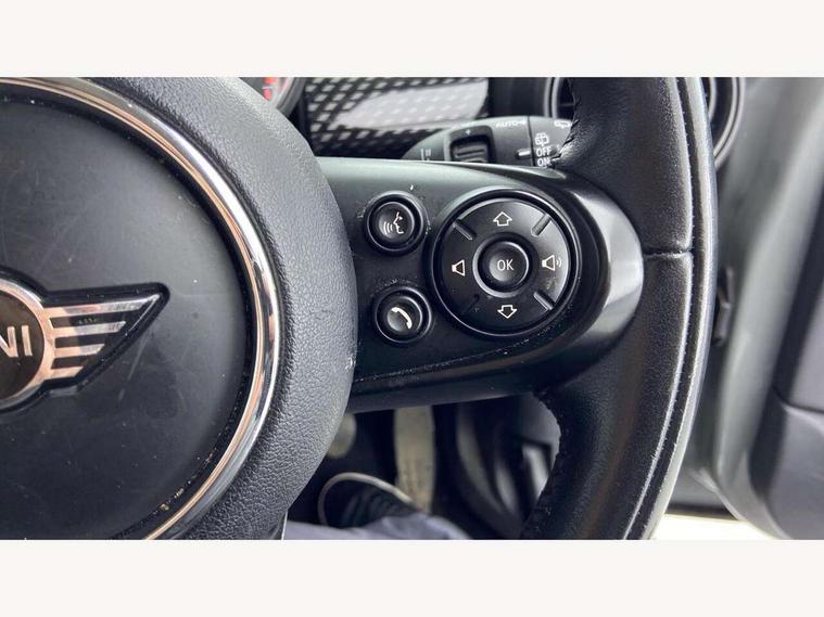 Acoustic seat-belt warning, Basic bluetooth function with USB audio, Brake fluid level warning light, Brake pad wear indicator warning light, DTC - Dynamic traction control, Exterior temperature gauge, Intelligent emergency call, MINI TeleServices, Oil level indicator, On board computer, Push button starter, Service interval indicator, Servotronic PAS, Electronic differential lock, Performance Control, Auxiliary input socket, DAB digital radio module, 2 speed wipers+intermittent wipe, Anti dazzle mirror, Anti trapping/one touch open close front windows, Body colour scoop integrated into engine- compartment lid, Body coloured bumpers, Chrome bezels around rear lights and headlights, Chrome door handles, Chrome plated fuel cap, Chrome plated trim on bottom edge of window, Chrome strip on lower grille, Electric front windows, Electric rear windows, Electrically adjustable door mirrors, Flared wheel arches, Follow me home headlights, Green tinted heat insulating glass, Heated door mirrors/heated windscreen washers, Heated rear window with auto timer, High gloss black tailgate, Honeycomb radiator grille, LED fog lights, LED rear lights, Rear wiper, Side scuttles, Twin chromed exhaust pipes, White indicator lights, 2 rear head restraints, 4 boot load lashing points, 4 way manually adjustable passenger seat with height, reach, tilt, backrest and headrest, 6-way manually adjustable driver's seat, Active carbon filter, Adjustable front seats backrest, Air recirculation system, Auxiliary socket in centre console storage compartment, Centre console storage, Driver's seat height adjuster, Driver/passenger sunvisors, Front and rear cupholders, Front head restraints, Front passenger grab handle, Front seat backrest storage nets, Front sports seats, Gear/selector and handbrake in artificial leather, Internal chrome door handles, Isofix child seat preparation, Luggage compartment lighting, Multifunction steering wheel, Reach + rake adjustable steering column, Rear grab handles, Rear storage trays, Split folding rear seats, Storage compartments in doors, Toolkit in luggage compartment, 3 point seatbelts, 3x3 point rear seatbelts, ABS/EBD, ASC+T, Cornering brake control (CBC), Crash Sensor - activates hazard/interior lighting + unlocks doors, Driver and passenger airbags, Driver/front passenger side airbags, DSC - Dynamic Stability Control, Fuel cut off safety device, Head airbags, Hill start assist, Passenger airbag deactivation system, Seatbelt pretensioners, Tyre pressure warning, Ventilated front disc brakes, Drive away door locking, Locking wheel bolts, Remote central locking/doors+fuel cap+tailgate, Second remote key, Thatcham category 1 alarm + immobiliser,