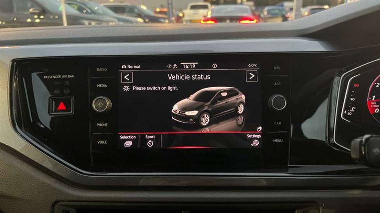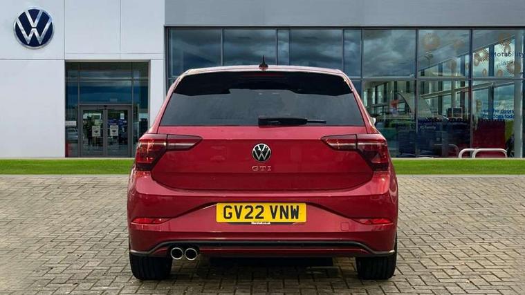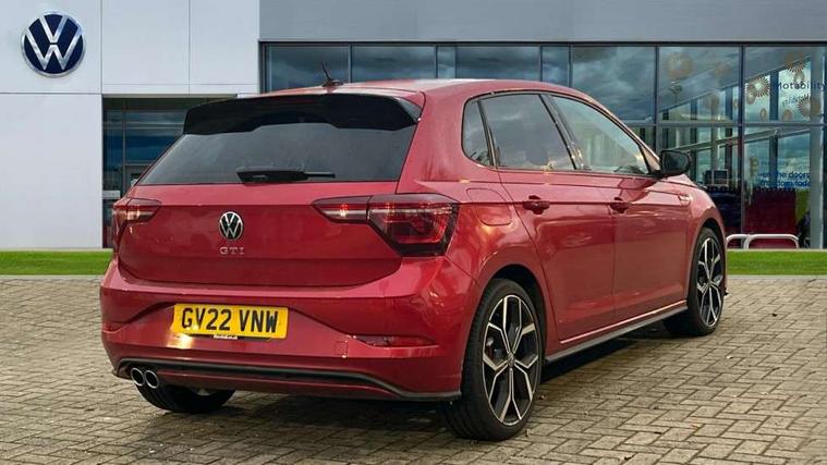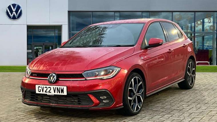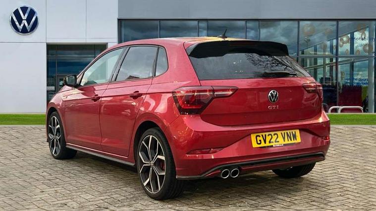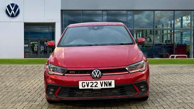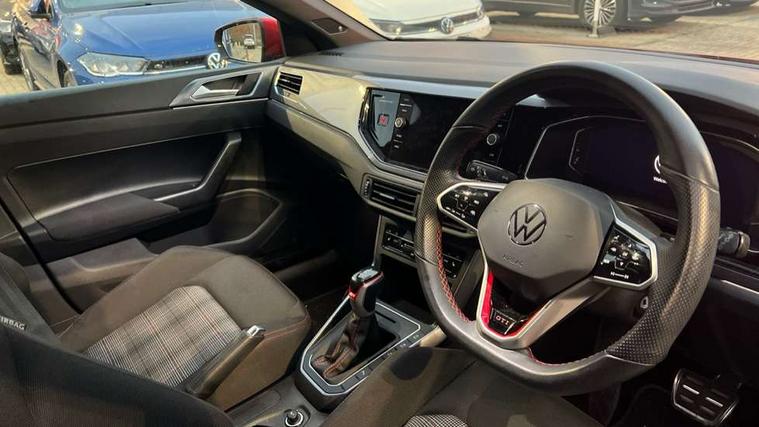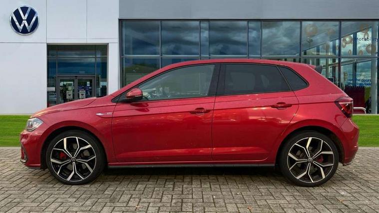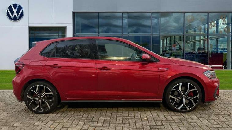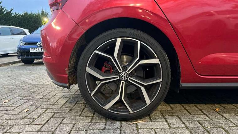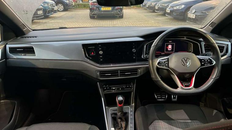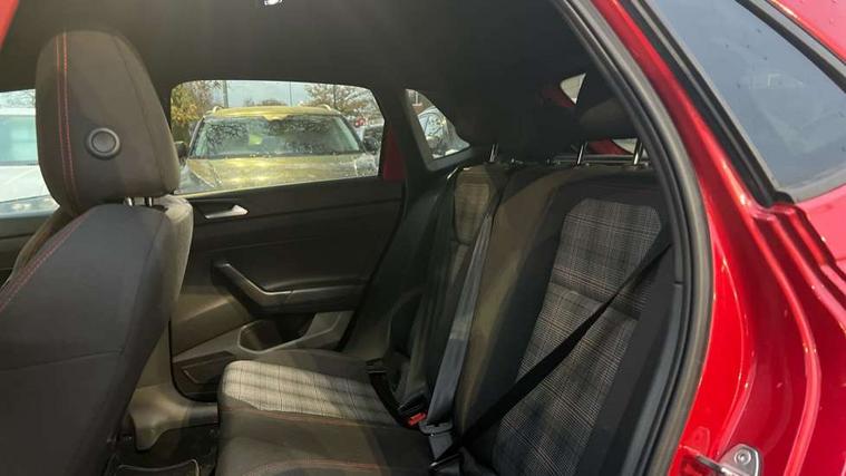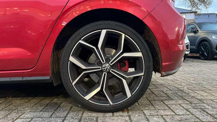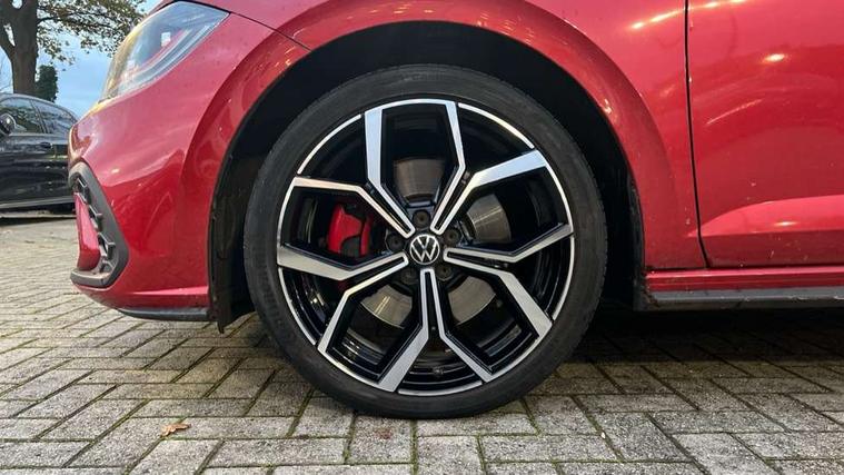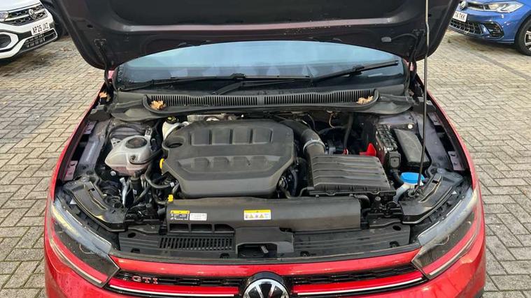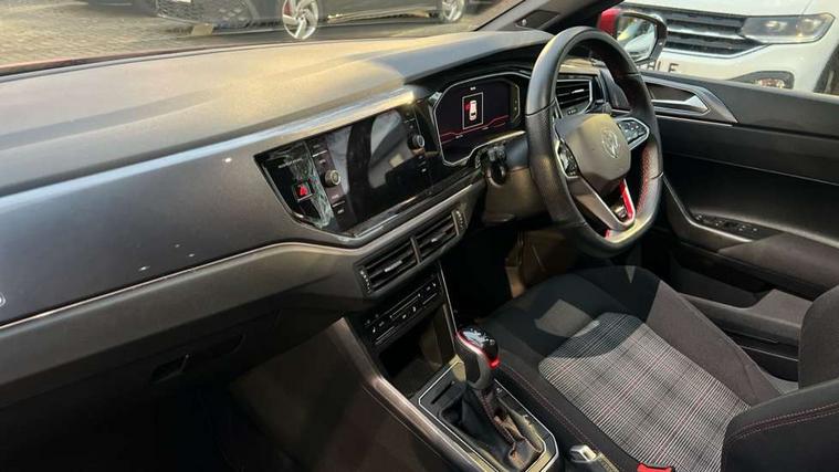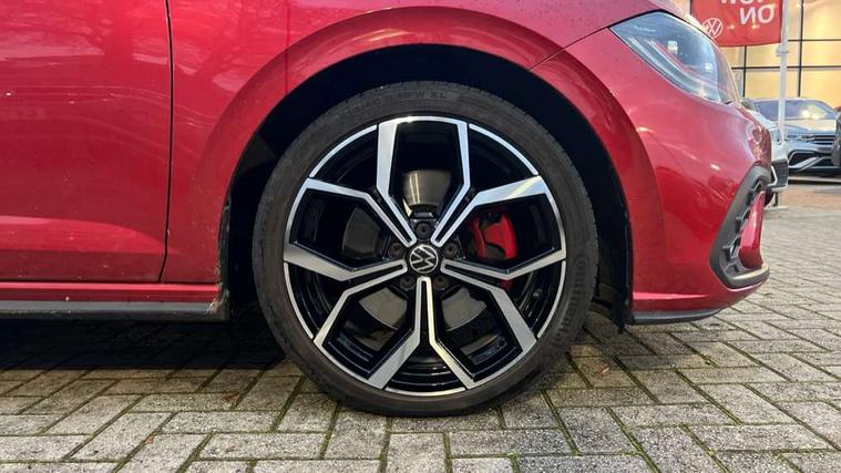 Adaptive cruise control with follow-to-stop and speed limiter, Bluetooth mobile phone interface, Digital Cockpit Pro with 10.25" Display, Driver alert system, Dynamic road sign display, Eco mode, Emergency call service, Power assisted speed sensitive steering, Preparation for We connect and We connect plus, Speedo and rev counter, electronic odometer, trip, service interval display and fuel gauge, Travel Assist - Lane keeping system and traffic jam assist, Travel assist including emergency assist, Trip computer, Warning signal and warning light for front and rear seatbelts not fastened, Washer fluid level indicator, Wireless app connect, Adaptive chassis control, Front wheel drive, Heavy duty rear axle, Rear shock absorpion sports version, Sports select suspension lowered by 15mm, Start-stop system with battery regeneration (recuperation - energy recovery during braking), DAB Digital radio, Diversity antenna for FM reception, Front and rear 6 speakers, Body colour bumpers, Body colour door handles, Electric front windows, Front scuff plates in aluminium with GTI logo, Heat insulating darkened glass in side and rear windows, Heat insulating glass windscreen, Power folding adjustable/heated exterior mirrors and front passenger exterior mirror lowering function, Rear electric windows, Rear fog light, Rear side wing doors, Rear windscreen washer and wiper with interval delay, Sport bumpers with air intakes with honeycomb structure, Third brake light, Twin chrome exhaust tailpipes, 12V power socket in centre console, 2 USB-C ports in the front, 2 USB-C charging sockets on the center console in the rear, 3 rear head restraints, 60/40 split folding rear seat and rear seat bench not split, Air care climatronic air conditoning system with active combination filter and 2-zone temperature control, Black roof lining, Ceramique headliner, Chrome plated radiator grille inserts, air vent surrounds and light switch surrounds, Door and side trim panel, Driver and front passenger seat height adjustment, Driver/passenger sunvisors with illuminated vanity mirrors, Front + rear carpet mats, Front centre armrest, Front footwell illumination, Front seat backrest storage pockets, GTI sports gearshift knob in aluminium leather, Handbrake lever handle in leather, Isofix child seat preparation easy-fit (for two outer rear seats, and front passenger seat) compatible with I-size, LED interior light with switch off delay and dimmer, 2 reading lights front and rear, Luggage compartment cover, Luggage compartment floor, Luggage compartment lighting, Single front passenger seat, Stainless steel pedals, Standard pedal cluster, Three spoke leather wrapped multifunction sports steering wheel with shifting paddles, IQ LED matrix headlights pack - Polo, Light and sight pack - Polo GTI, Sports suspension pack - Polo, 3 point height adj front seatbelts + pretensioners, 3x3 point rear seatbelts, ABS, Driver and front passenger airbag with front passenger airbag deactivation, Drivers and front passengers safety optimised head restraints, ESC (Electronic stability control) + EDL (Electronic Differntial lock) and ASR (Traction control), Extended and predictive pedestrian/ cyclist protection, Front and rear disc brakes with red brake calipers, Front curtain and side airbags with center airbag, Hill hold control, Manual child lock in rear doors, Two tone horn, Tyre pressure loss indicator, Alarm with interior protection, Anti-theft alarm system with interior monitoring, backup horn, and towing protection, Anti-theft wheel bolts, Electronic engine immobiliser, Chrome applications on rotary light, mirror adjustment, window regulator switches, outlet with frame in black, Low rolling resistance tyres,