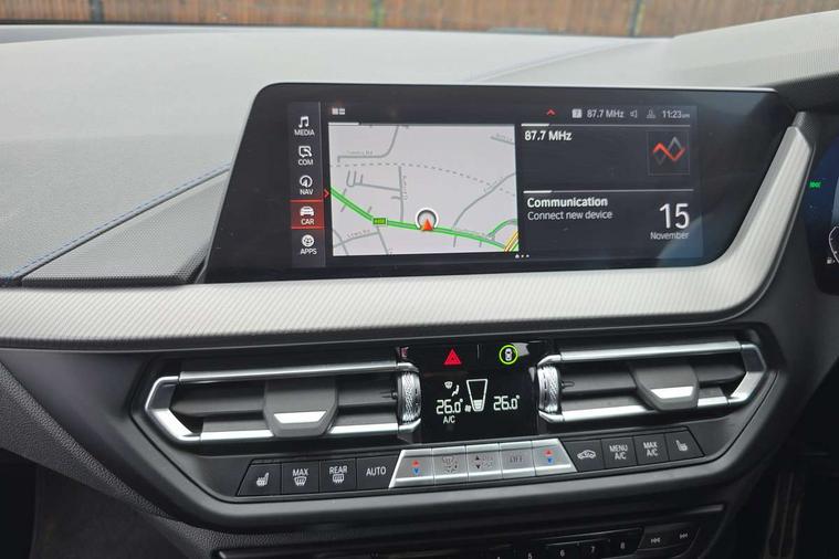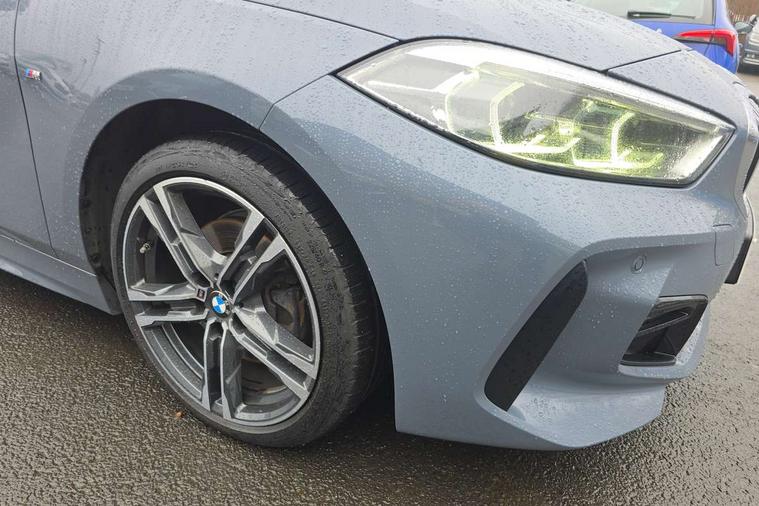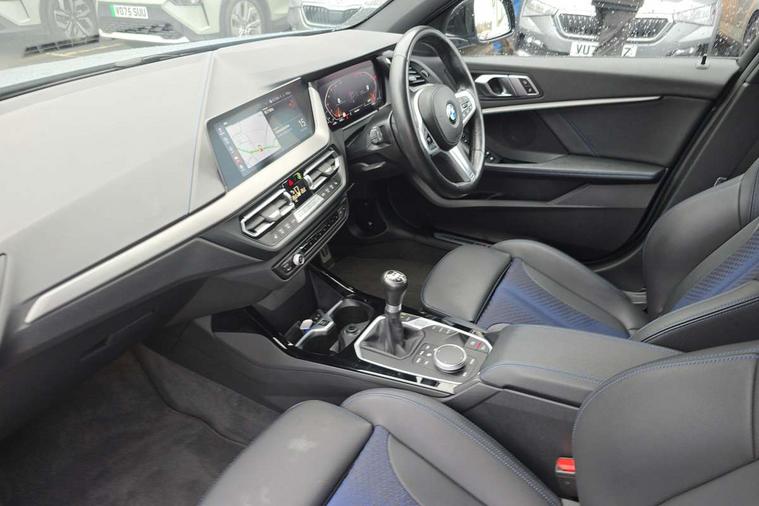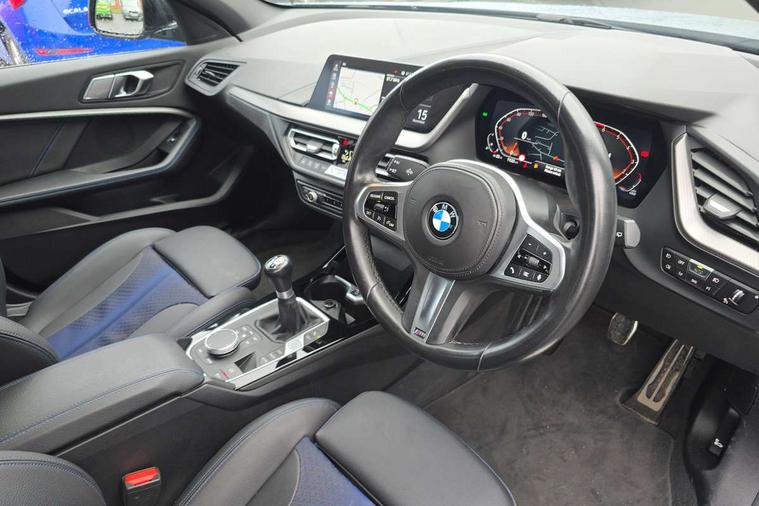 Active guard plus, Attentiveness assist, BMW ConnectedDrive online services, BMW Teleservices, Check Control warning system for monitoring of lights and door/luggage compartment open warning, Cruise control with brake assist, Eco pro mode, Front axle single joint with specific axle kinematics to minimise drive influences on steering + provide increased rigidity agile driving behaviour, Integrated owners handbook, Lane departure warning system, Oil sensor for level and grade, On board computer, Optimum shift indicator, Personal Profile, Pull away assistant, Rigidly mounted rear subframe - Multi link construction with separate spring / damper configuration and excellent driving characteristics, Speed limit Info including no-overtaking indicator, Speed limiter, Aluminium lightweight construction, Anti roll bar front and rear, Balancer shaft, Double VANOS twin scroll turbocharging system, Drive Performance Control, Electronic differential lock, High precision injection, M sport suspension, Petrol Particulate Filter, Twin tube gas filled shock absorbers with degressive characteristic curve, VALVETRONIC engine management, DAB Digital radio, Auto dimming rear view mirror, Automatic headlight beam throw control, Automatic windscreen wipers and automatic headlight, Body colour door handles, Body colour mirror caps, Body colour roof trims, Chrome 'M' logo side designation, Chrome exhaust twin tailpipes round 90mm in left, Chrome kidney grille frame with Satin Aluminium struts, Direction indicator side lights in exterior mirrors, Fading support, Folding side mirrors with auto dimming/folding wing mirrors with auto dimming, Follow me home headlights, Front and rear bumper system with replaceable deformation elements, Front and rear electric windows with open and close fingertip control, anti trap facility and comfort closing, Front door sill finishers in black plastic with M designation in metallic look, Green tinted heat protection glazing, Heated, electrically adjustable exterior mirror aspheric on driver side, convex on passenger side, High gloss shadowline window frame, Recess cover mirror frames and B/C pillar embelisher trim, High level third brake light, Integrated front windscreen with washer jets, LED daytime running lights, LED eyebrow turn indicators, LED front fog lights, LED Headlights, Lightweight engineering, Matt black air guide grilles, Matt black wheel arch trim, Model designation on electric bootlid, Nearside reverse light in rear light cluster, Preparation for high beam assistant, Rear fog lights, Rear side wing doors, Rear window wiper, Shark fin antenna, Trailer stabilisation logic, Visible VIN plate, Welcome lighting, 12V power socket in front centre console with blanking plug, 3 rear seat head restraints, 3 seat bench in 2nd row, 3 spoke sports leather steering wheel in black leather with black stitching and decorative finisher in pearl chrome, specific M badge + leather knob, Anthracite headlining, Black boot net with lashing eyes, Cargo function on 2nd seat row, Child seat ISOFIX attachment for two outer rear seats and front passenger seat with anchorage points, Conditioned based service, Driver and front passenger seat heating, Folding rear clothes hook, Four grab handles integrated in roof lining, Front and rear door pockets with bottle holders, Front and rear side armrest integrated into door trim, Front armrest, Front sports seats, Gearshift lever with M designation, Glove compartment, Height adjustable front head restraints, Luggage compartment for bag hooks on left and right, foldable luggage compartment liner and four lashing eyelets, Manual adjust steering wheel, Multi-function controls for steering wheel, Single front passenger seat, Storage compartment in centre console, Sun visors with vanity mirrors and insert tab, Two front centre console cupholders, Two zone automatic air conditioning, Velour floor mats, Additional interior lighting pack - 1 Series, BMW live cockpit professional pack- 1 Series, Connected pack professional - 1 Series, Interior lights pack - 1 Series, M Sport exterior styling aerodynamics pack - 1 Series, 2 tone horn, 3 point seatbelts on all seats, front pyrotechnic belt tensioners, stopper and belt force limiters, rear coded belt buckles, Airbags - Front driver/passenger, front and rear curtain head protection, front side, manual deactivation of front passenger airbag, Anti lock braking system (ABS) with brake assist, BMW emergency call, Brake drying, Braking readiness, Child proof locking system in rear door, City braking function, Comfort modes, Cornering brake control, Crash sensor activating central locking release, hazard warning lights, fuel cut off, interior lighting + activation of safety battery terminal clamp, Driver and front passenger seat belt security check, Dynamic stability control + (DSC+), Dynamic Traction Control - DTC, Electrically operated hand brake, Front and rear disc brakes, Seatbelt warning, Side impact protection, Tyre pressure monitoring system, Warning triangle and first aid kit, Central locking switch for all doors, fuel filler cap and luggage compartment, Deadlocking function system to all doors, Drive away locking system on all doors and luggage compartment with de-activated in iDrive settings, Locking wheel bolts, Remote control with integrated key with High-gloss Black inlay and M designation and 1 button for open/ close lock, window, open luggage compartment, Start/stop button illuminated in centre console with keyless engine start and auto start stop deactivation button, Thatcham Cat.1 alarm and immobiliser, Wheel slip limitation close to the actuator (ARB), Contrast stitching on instrument panel, Electrically powered 12V compressor, Reduced rolling resistance tyres,