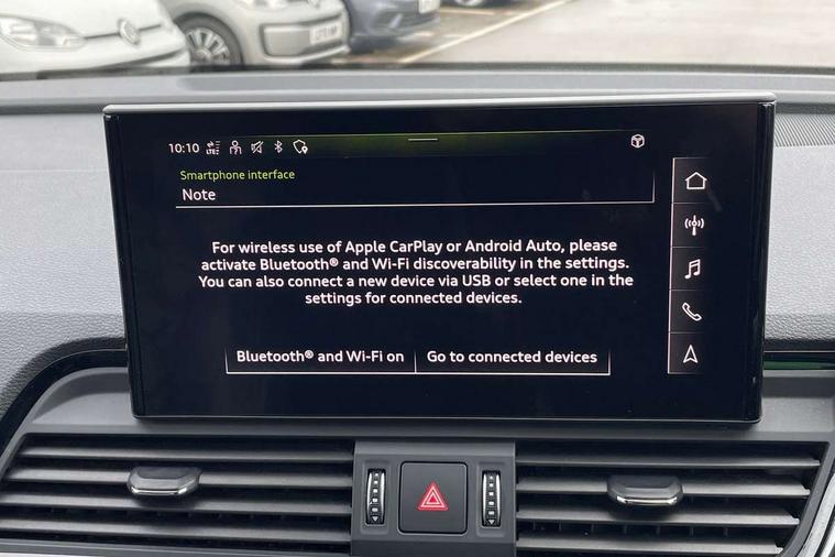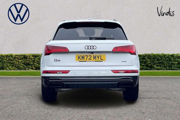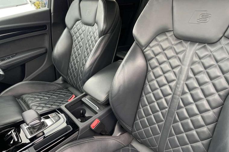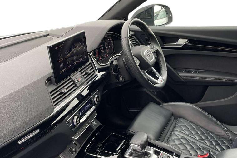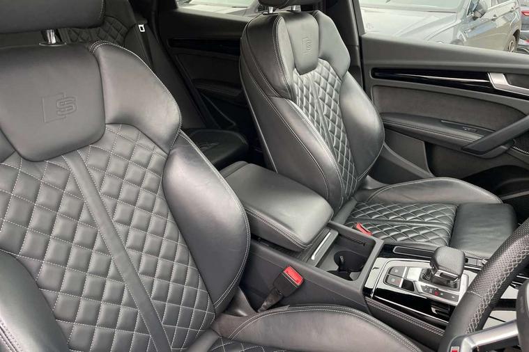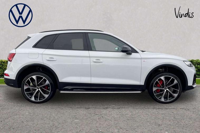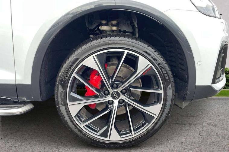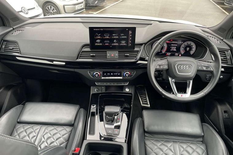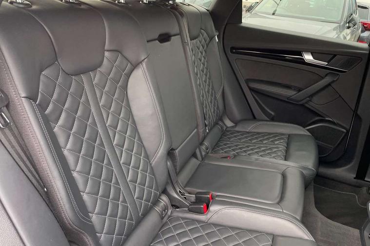 360 degree camera with top view, Advanced key with electric hands free boot opening system, Audi connect safety and service (e-call), Audi connect with Amazon Alexa Integration, Audi drive select, Audi Phone Box with wireless charging - Qi enabled compatible phone and additional bluetooth interface, Audi virtual cockpit plus with 12.3" screen and three different layout designs, Audi wireless smartphone interface, Automatic start-stop system with coasting functionality and efficiency programme, Electro - mechanical power assisted steering, Head up Display, MMI navigation plus with 10.1" touch screen, Mobile telephone preparation - bluetooth interface, Park assist with parking aid plus, Power tailgate, Service interval indicator, Voice control system with Audi hotword activation "Hey Audi", Adaptive air suspension, Quattro on demand, Bang + Olufsen sound system, DAB Digital radio, 3rd brake light, Acoustic windscreen, Audi beam with 'Vorsprung' logo, Audi matrix LED headlights with OLED rear lights + dynamic front and rear indicators, Auto dimming door mirrors, Auto dimming rear view mirror, Automatic headlight adjustment, Automatic headlights and windscreen wipers, Black roof rails, Body colour bumpers, Body colour underbody protection, Chrome plated exhaust trims, Daytime running lights, Door sills in Selenite silver, Electric adjustable/heated/folding door mirrors, Front air inlet surrounds in titanium black, Front and rear electric windows, Gloss black finish for Audi rings and Q5 logos without engine badging, Headlight washers, High gloss black B pillar trims and triangular rear door trim, Lower bumpers painted in contrast Manhattan grey, Matrix LED headlights with dynamic front and rear indicators, Panoramic sunroof, Rear chrome trim strip below lights, Rear privacy glass and rear side windows, Rear side wing doors, Rear wiper, Roof bars, Running boards, S Line rear spoiler, 2 x USB charging port with aux input socket, 3 rear headrests, 3 spoke heated leather multi-function steering wheel, 4 way electric lumbar support for driver and front passenger, 40:20:40 split folding 3 rear bench seat in 2nd row with rear centre armrest, Black cloth headlining, Comfort front centre armrest, Contrast stitching on seats, steering wheel and gear lever gaiter, Deluxe 3 zone electronic climate control, Electrically adjustable front seats with driver memory, Fine Nappa leather upholstery with diamond pattern contrast stitching + front sport seats with S embossed logo, Front/rear floor mats, Gear lever in black leather, Heated front and outer rear seats, Height adjustable front head restraints, Illuminated door sill trims with aluminium inlays, ISOFIX child seat mounting and top tether, Luggage compartment cover, Massage function for front seats, Rear seat bench plus, Removable luggage compartment floor, Single front passenger seat, Stainless steel pedals, Sunvisors with vanity mirrors, Tool kit, Black styling package - Q5, City Assist pack - Q5, Extended interior upholstery pack - Q5, Extended LED Interior multi coloured Lighting Pack - Q5, Tour pack - Q5, 3 point seatbelts on all seats, 6 airbags - Driver, front passenger, curtain and side airbags, Electrically operated child locks on rear doors, Electromechanical parking brake, Electronic stabilisation control including ABS, ASR and EDL, Front passenger airbag deactivation, Hill descent control, Hill hold assist, Multi collision brake assist, Pop-up bonnet for pedestrian protection, Pre sense city, Seat belt force limiter, Seatbelt monitoring, Tyre pressure warning, Warning triangle and first aid kit, Anti theft alarm, Anti-theft wheel bolts, Keyless Go access/ignition system, Remote central locking, Piano black finish inlay, Tyre repair kit,