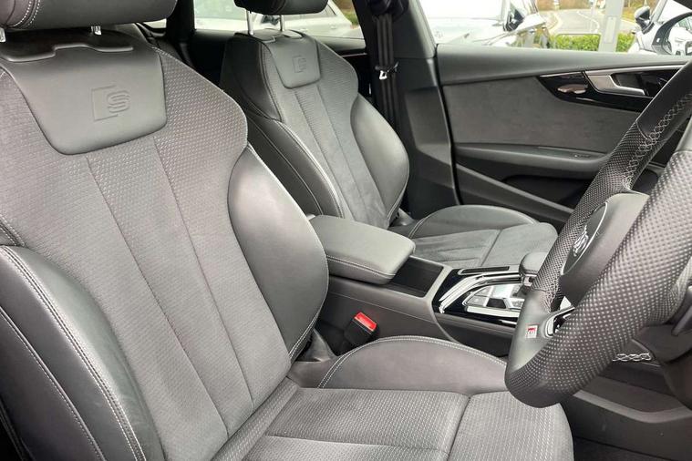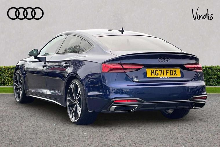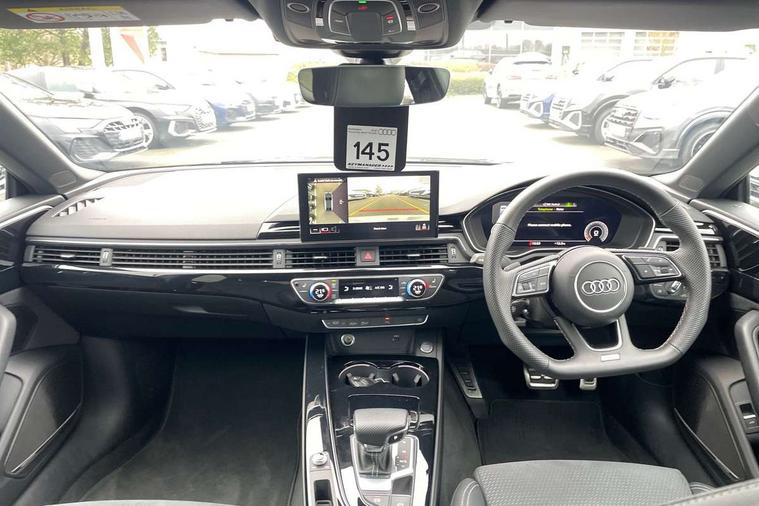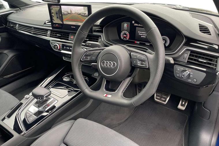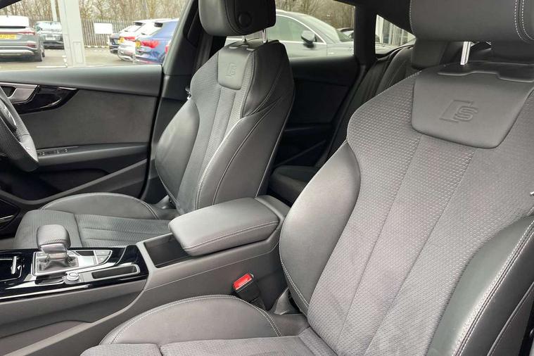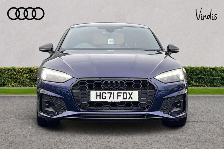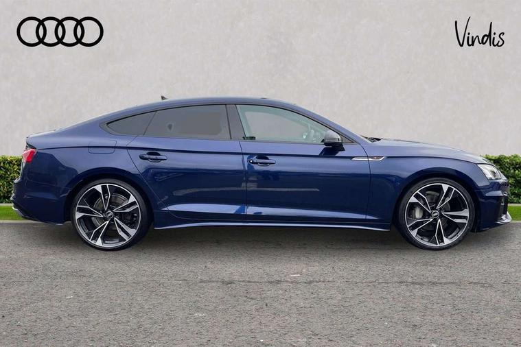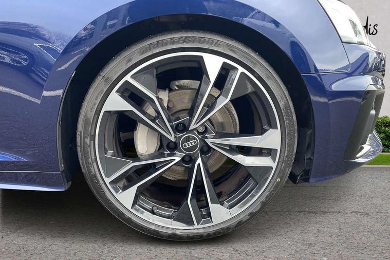 Audi connect safety and service (e-call), Audi connect with Amazon Alexa Integration, Audi drive select (Auto, Comfort, Dynamic, Efficiency and Individual), Audi parking system plus with front and rear sensors, Audi smartphone interface, Audi virtual cockpit - 12.3" full colour digital instrument cluster, vehicle/engine speed, Radio/media information+Driver assistance systems, Automatic start-stop system with coasting functionality and efficiency programme, Bluetooth interface, Electro-mechanical power steering, Email, calendar and text messages displayed via MMI, MMI nav+ with MMI touch - 10.1" high resolution MMI display, touch sensitive, 3D map, route/country info, dynamic route guide, personal route assist, Power operated tailgate, Rear view camera, Service interval indicator, Voice control system, Sports suspension lowered by 23mm, 8 passive loudspeakers, CD player, DAB digital radio reception, Two additional USB ports for rear passenger in rear centre console, Two SDXC card slots, Audi matrix LED headlights with LED rear lights + dynamic front and rear indicators, Auto dimming rear view mirror, Black audi rings decal above rear sills, Black door mirror housings, Body colour door handles, Body colour front spoiler lip, Body colour side sill trim, Electric adjustable heated door mirrors, Electric folding door mirrors, Electric front windows, Front fog lights, Honeycomb structure radiator grille in grained matt black, LED daytime running lights, LED third brake light, Matt aluminium silver tailpipe trim, Privacy glass, Rain and light sensors, Rear diffuser in matt titanium black with trim strip in matt aluminium silver, Rear side wing doors, S model rear spoiler in black, Side air inlets in grained matt black with matt aluminium silver inlay, Sport front and rear bumpers with side skirts, Variable front intermittent wipers, Windscreen with acoustic glazing, 3 Spoke flat bottom high multi-function leather steering wheel with shift paddles, 4 way electric lumbar support for driver and front passenger, 40/20/40 split folding 3 seater rear bench seat, Adjustable steering column, Black cloth headlining, Black perforated leather gearknob, Contrast stitching on seats, steering wheel and gear lever gaiter, Deluxe 3 zone electronic climate control, Front centre armrest, Front head restraints, Front/rear floor mats, Heated front seats, Illuminated door sill trim with S logo, ISOFIX child seat mounting and top tether, Luggage compartment mat, Manual seat adjustment, Rear headrests, Single front passenger seat, Stainless steel pedals, Sunvisors with vanity mirrors, Black styling pack - A5 Coupe/Sportback, LED interior light pack - A5/RS5, 3x3 point rear seatbelts, 6 airbags - Driver, front passenger, curtain and side airbags, Electromechanical parking brake, Electronic Stabilisation Control (ESC) including ABS, ASR and EDL, Front passenger airbag deactivation, Height adjustable front seatbelts, Hill hold assist, Multi collision brake assist, Pop-up bonnet for pedestrian protection, Pre sense city, Seatbelt monitoring, Tyre pressure warning, Variable restraint system, Warning triangle and first aid kit, Anti theft alarm system, Anti theft wheel bolts, Immobiliser, Keyless Go, Remote central locking, Piano black finish inlay, 20" 5 twin spoke polygon design alloy wheels in gloss anthracite black and gloss turned finish, Tool kit, Tyre repair kit,