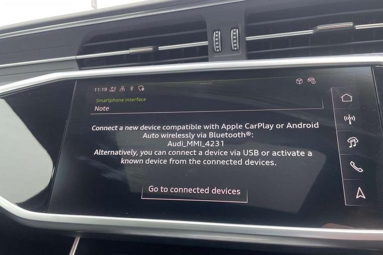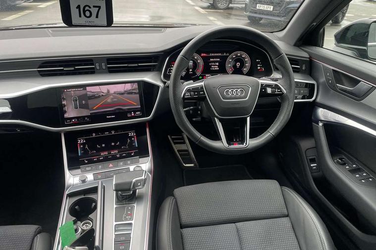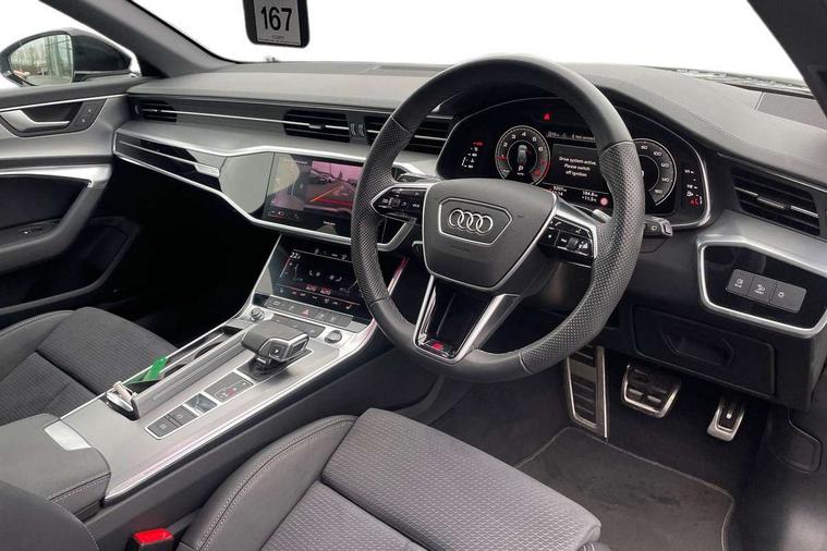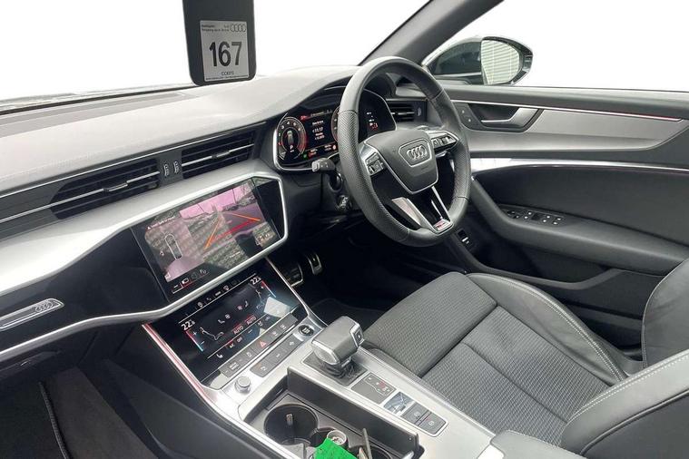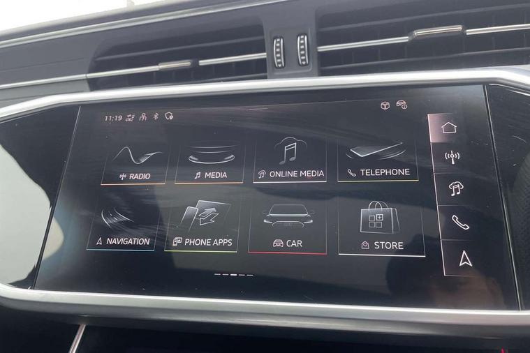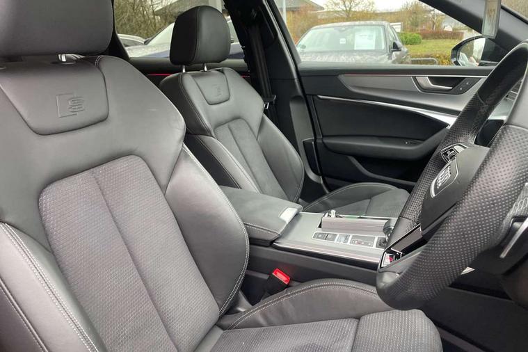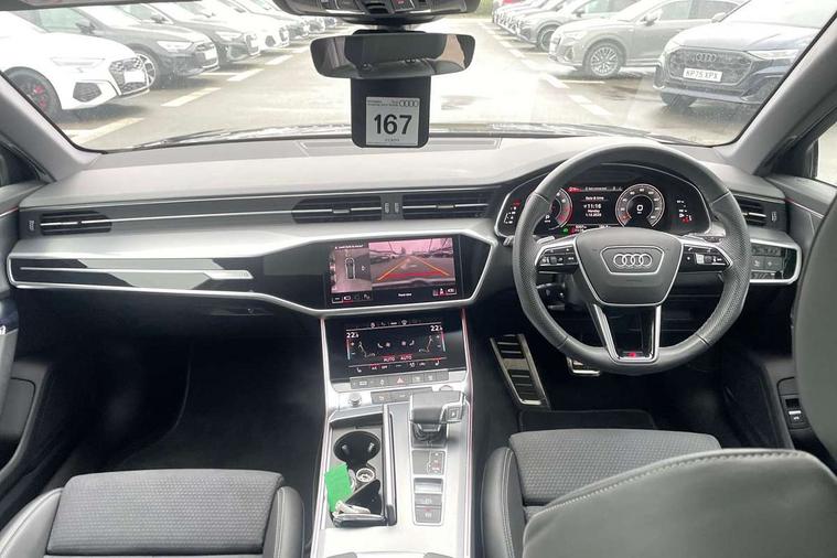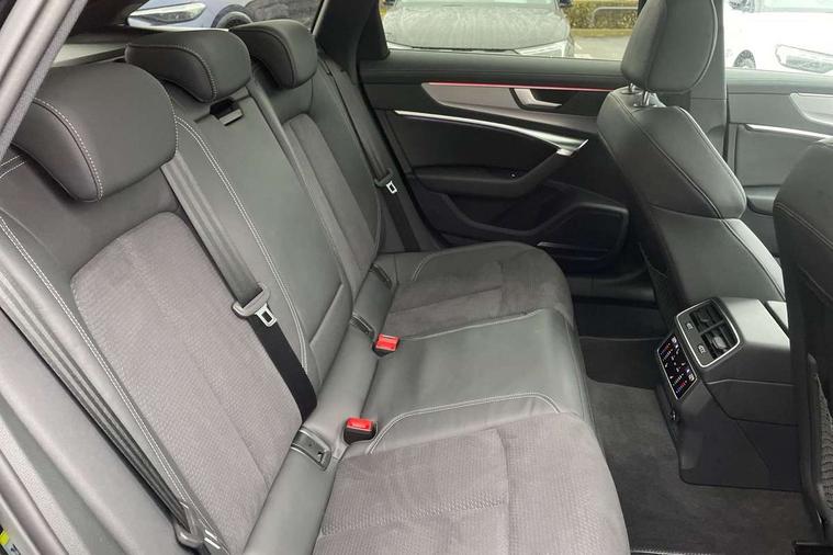 Audi connect safety and service (e-call), Audi connect with Amazon Alexa Integration, Audi drive select, Audi parking system plus - acoustic and visual park assist system for front and rear, Audi virtual cockpit, Automatic start/stop system with coasting functionality, Bluetooth interface, Camera based traffic sign recognition, Lane departure warning system, MMI navigation plus with 10.1" and 8.6" touch screens, Power operated tailgate, Progressive steering, Rear view camera, Service interval indicator, Smartphone interface includes wireless Apple carplay/Android Auto, Voice control system, Sports suspension, Audi front music interface, Audi sound system, Auxiliary input socket, DAB Digital radio, USB connection, Aluminium roof rails, Body colour rear roof spoiler, Body coloured door mirrors, Electric front/rear windows, Electrically adjustable heated and folding + automatically dimming exterior mirrors with memory function, Frameless auto dimming interior rear view mirror, Front intermittent wipers, Heat insulating darkened glass in side and rear windows, Heat insulating glass in windshield, LED rear lights with dynamic indicators, LED signature front daytime running light, LED third brake light, Matrix LED headlights, Matt black rear diffuser with diffuser strip and tailpipes in chrome, Matt black side air intake grille with inlay in matt aluminium, Privacy glass, Radiator grille in anthracite black matt, single frame in chrome and horizontal struts in matt aluminium silver, Rain and light sensors, Rear side wing doors, Rear wiper, 2 zone deluxe electronic climate control, 3 spoke high multi-function perforated leather steering wheel with contrast stitching and shift paddles, 40/20/40 split folding 3 rear seat bench in 3 parts with rear centre armrest, Audi phone box light, Black cloth headlining, Electrically adjustable front seats including seat height, fore/aft position, backrest angle and 4-way lumbar with memory for driver's seat, Front and rear floor mats, Front centre armrest, Front head restraints, Heated front seats, Height/reach adjust steering wheel, Illuminated door sill trims with S logo, Illuminated sun visors with vanity mirrors, Leather gear knob, Luggage compartment system, Rear headrests, Single front passenger seat, Stainless steel pedals and foot rest, Tool kit and car jack, LED Interior Ambient Lighting Pack - A6, Non smoking pack - A6, S line exterior style pack - A6, 3 point seatbelts on all seats, Airbags - Front side, front and rear including head, Audi pre-sense front, EBD - Electronic brakeforce distribution, Electromechanical parking brake, Electronic Stability Control (ESC) including ABS, ASR and EDL, Extended pedestrian protection measures, ISOFIX child seat mounting for front passenger seat and ISOFIX child seat mounting with Top Tether for outer rear seats, Manual child proof rear door locks, Seatbelt monitoring, Tyre pressure warning light, Warning triangle and first aid kit, Anti theft alarm with tow away protection, Anti-theft wheel bolts and wheel loosening detection, Immobiliser, Keyless Go, Remote central locking, Matt brushed aluminium inlays,