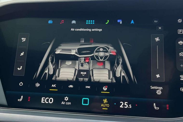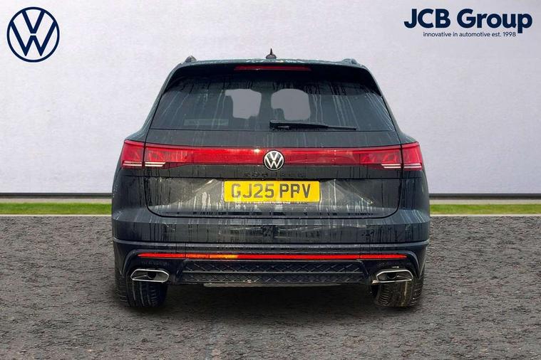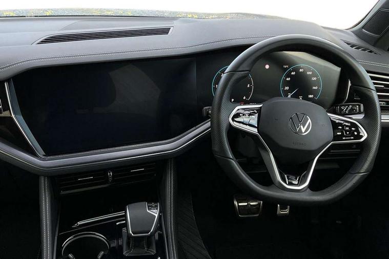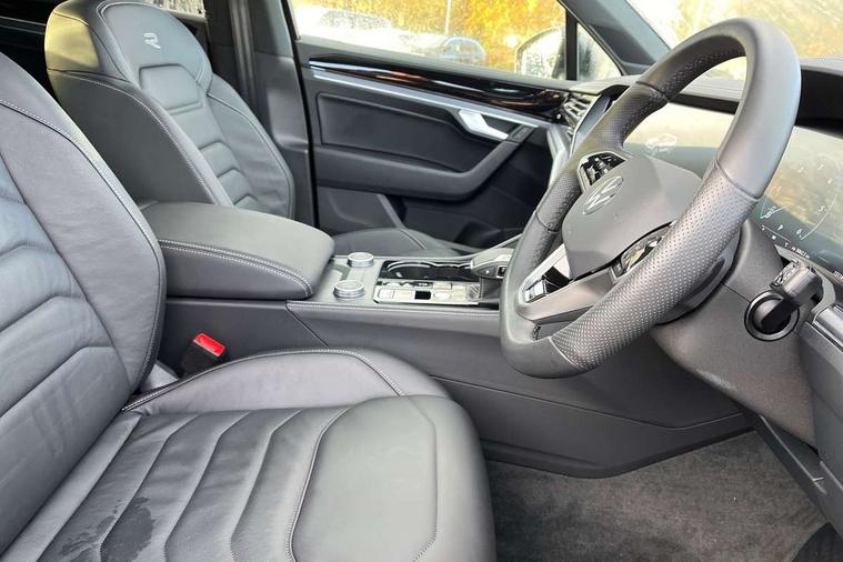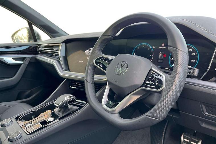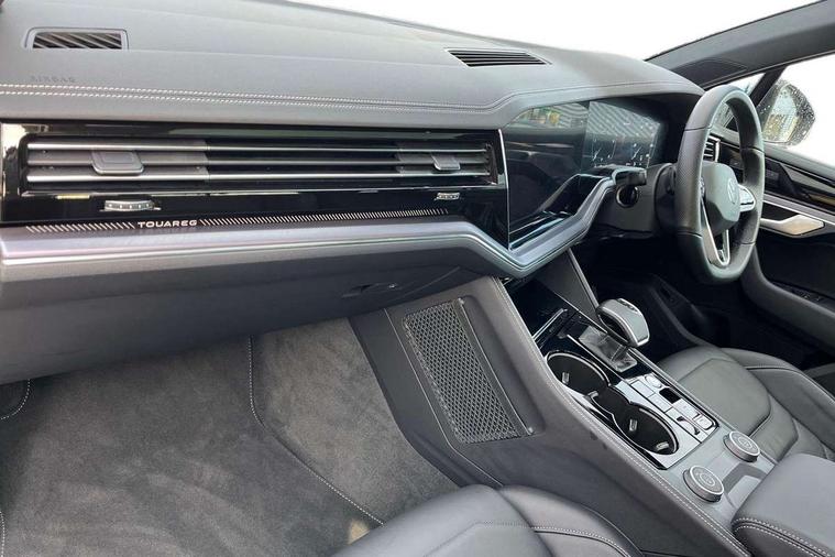 15" Screen Top infotainment system Premium (MIB3), Adaptive cruise control, Advanced driver attention and drowsiness monitor, Driver profile selection, Dynamic road sign display, E-Sim card for online connectivity, eCall emergency system, Innovision cockpit, Intelligent park assist, Mobile phone interface with inductive charging, Multi-colour Active Info display, Park Assist - Sensor controlled steering aid to assist parallel or bay parking, PAS, Warning signal and warning light for front and rear seatbelts not fastened, Wireless app connect, Adaptive chassis control, DAB Digital radio, Diversity antenna for AM/ FM reception, We Connect and We Connect Plus functionality, Automatic coming/leaving home lighting function, Automatic headlights, Black door mirrors, Black style comfort bumpers, Dynamic headlight range control with dynamic cornering light, Electric front tilt/slide panoramic sunroof and fixed rear sunroof, Electrically power adjustable, heated, folding, auto dimming, front passenger exterior door mirror lowering function, External USB type C socket and charging sockets, Gloss black roof rails, HD LED Matrix beam plus digital headlight projection with variable light distribution, Headlight washers, Highway light, LED 3rd brake light, LED daytime running lights, LED rear combination lamp with variable lighting functions and special styling, Poor weather light, Rain sensor, Rear exhaust tailpipe, Rear fog light with back up light on both sides, Rear light bar and illuminated logo, Rear side wing doors, Rear wiper, Stainless steel door sill protection, 12V socket in centre console, 3 rear headrests, 3 seat bench in 2nd row, 4 zone climate control, Airbag label on sun visor and B-pillar, Brushed stainless steel pedals, Double sun visors with illuminated vanity mirrors, Front + rear carpet mats, Front centre armrest, Leather wrapped multifunction sports steering wheel, heated, with touch control and shift paddles, Mechanical rear seat release, Power adjustable lumbar support in front, Power seats in front, right side with memory features and seat cushion depth adjustment, Rear seat backrest and split folding with center armrest, Single front passenger seat, Memory pack plus - Touareg, 3 point seatbelts, outer rear with ECE lable, ABS, Child locks on rear doors, Curtain airbags, Driver and front passenger safety-optimised head restraints, Driver/Front Passenger airbags, Extended pedestrian protection measures, Front assist, Front seat side impact airbags, Generative braking with start and stop system, Height adjustable 3 point front seatbelts with pre tensioners, Passenger airbag deactivate switch, Three 3 point rear seatbelts, Two tone horn, Tyre pressure loss indicator, Warning triangle and first aid kit, Alarm system with interior protection, Easy open and close sensor controlled luggage compartment opening and closing with remote unlocking, Keyless Access Keyless locking and starting system with SAFELOCK, Aluminium decorative inserts, Black decorative trims, Gloss black decorative inserts in centre console, Tool kit,