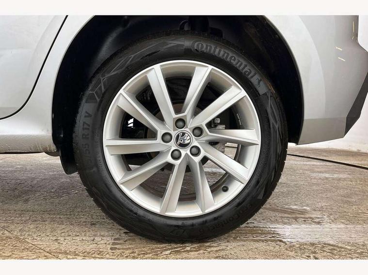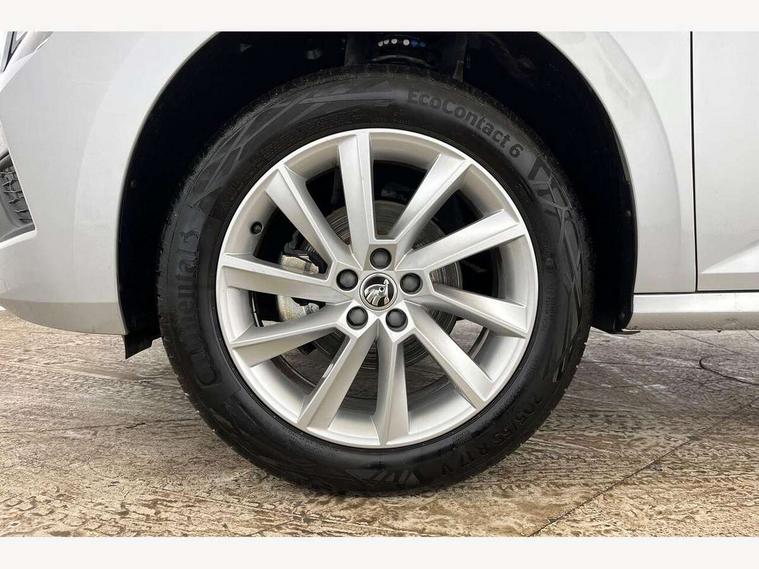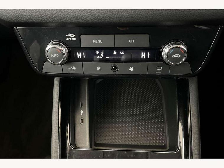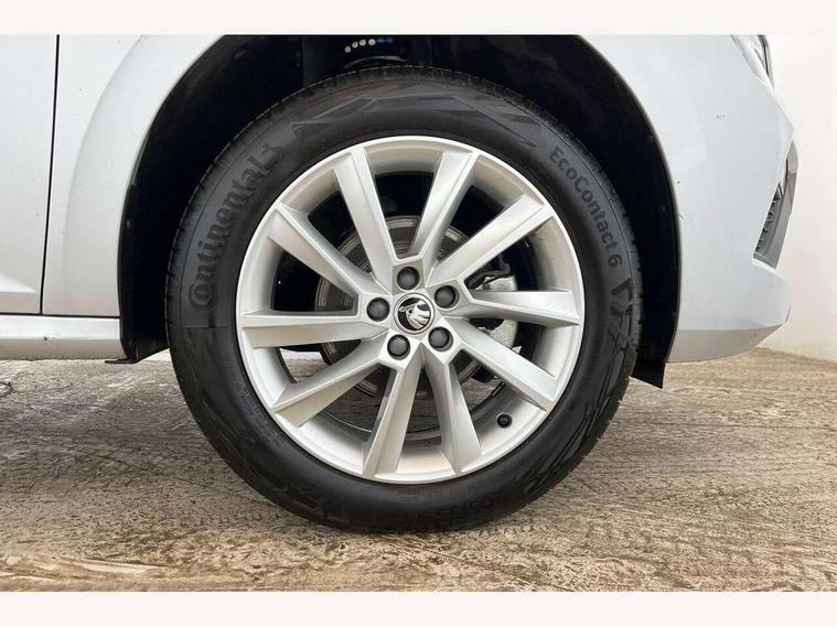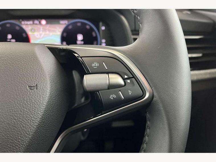 Advanced driver attention and drowsiness monitor, Bluetooth system, E-call, Front assist system, PAS, Rear parking sensors, Rear view camera, Service indicator, Speed limiter, Traffic sign recognition, Virtual cockpit with 10.25" display, Voice control system, Wireless smartlink, 4 USB C ports, 8 Speakers, 8.25" Skoda infotainment display, 9.2" Skoda navigation display, DAB Digital radio, Auto dimming rear view mirror, Automatic headlight control with coming home and leaving home feature, Black roof rails, Body colour bumpers, Body colour door mirrors and handles, Chrome grille surround, Front and rear electric windows, Full LED headlights, Heated rear window, LED brake lights, LED daytime running lights, LED front turning lights, LED high beam, LED low beam, LED third brake light, Rear LED fog light, Rear side wing doors, Rear wiper, Ticket holder inside windscreen, 12V socket in luggage compartment, 3 seat bench in 2nd row, Black hotstamping, Cargo elements, Chrome inner door handles, Driver and passenger sun visors with vanity mirror, Dual zone climate control, Front and rear roof lights, Front centre armrest, Front head restraints, Glove compartment with illumination, Height adjustable driver seat, Height adjustable front passenger seat, Ice scraper, Inner circulation control with pollen filter, ISOFIX on front passenger seat, Isofix preparation for back seats, Krepp recycled decor inserts, Leather gearknob and handbrake lever, Loft cloth upholstery, Manual lumbar support for front seats, Net package and top tether hooks in boot space, Net under rear shelf, Overhead glasses storage compartment, Pocket on the back of both front seats include mobile phone pockets, Rake/reach adjustable steering wheel, Reading lights, Satin black door inserts, Single front passenger seat, Textile floor mats, Third rear headrest, Top tether for front passenger seat, Umbrella in driver's door, 3x3 point rear seatbelts, Airbags - driver and front passenger, Disc brakes, ESP, Extended and predictive pedestrian/cyclist protection, Front passenger airbag deactivation switch, Front side airbags with curtain airbags, Hill hold control, Manual leather parking brake, Manual rear child locks, One tone horn, Seatbelt reminder for driver an co-driver, Traction control, Tyre pressure monitor, Anti-theft alarm system with interior monitoring, backup horn, towing protection and remote central locking with SAFE system, Anti-theft wheel bolts, Electronic engine immobilizer,