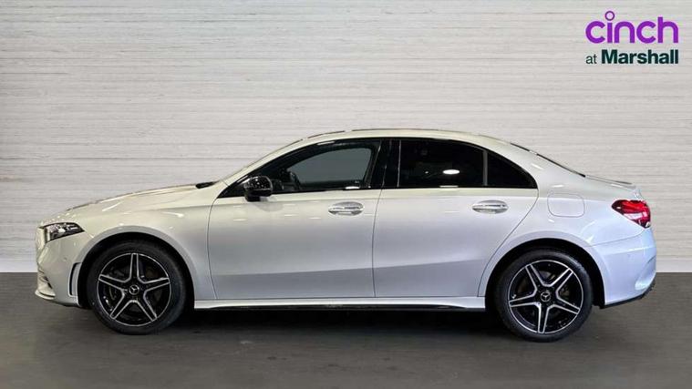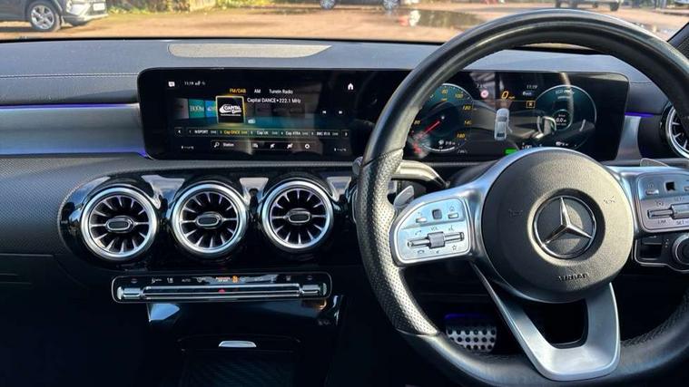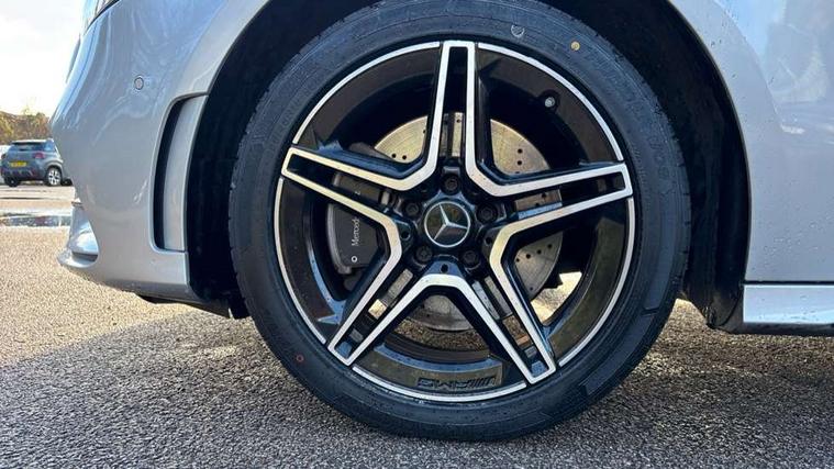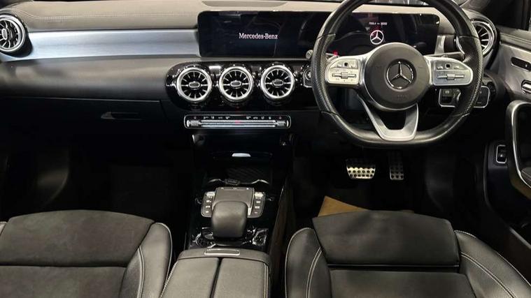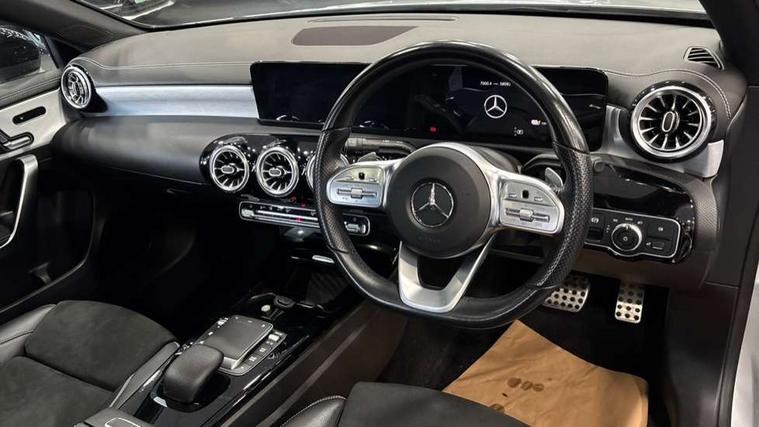 10.25" Digital instrument cluster display screen, 10.25" media display, 180 degree rear view camera with parking guidelines, Acoustic ambient protection, Active parking assist with visual and audible warning of detected obstacles, Attention assist, Brake pad wear indicator warning light, Car wash mode, Direct steering, Dual bluetooth interfaces, DYNAMIC SELECT with a choice of driving modes (ECO, Comfort, Sport and Individual), ECO start/stop function, Fluid level warning indicator for fuel, oil, coolant and washer fluid, Hard-disk navigation, Hey Mercedes Voice activation, Lamp failure indicator, Lane keeping system, Mercedes me connect including emergency call system, accident recovery, breakdown and maintenance management, Mercedes me remote services, Outside temperature gauge, Owners manual in English, Pre-installation for private car sharing, Preinstallation for Mercedes Benz link, Remote and charging services plus, Service indicator (ASSYST), Smartphone integration with Apple CarPlay and Android auto, Traffic sign assist, Trip computer, Ultrasonic sensors positioned in the front and rear bumpers, 7.4 kW monophase on board charger, Comfort suspension, Mode 3 charging cable 11 kW, Rear axle multi-link, 10 speakers, 2 USB ports (type C) in rear stowage compartment and one in front of center console, DAB Digital radio, MBUX multimedia system with DAB digital radio and touchpad including satellite navigation, Mercedes-Benz sound system - 100W, 4 Electric Front and Rear windows, Adaptive brake lights, AMG bodystyling - Front apron with splitter in chrome, rear apron with chrome trim and chrome visible trim elements in tailpipe, Black weather strip, Body colour bumpers, Body colour door handles, Body colour side skirt, Body coloured door mirrors, Edition badging on the front wings, Electric adjustable and heated door mirrors with integrated LED side indicators, Exclusive diamond radiator grille, Exhaust system - Twin visible tailpipes in polished stainless steel, Headlamp assist automatic headlamp activation, Heated glass rear windscreen + timer control, High gloss black beltline, LED tail lamp, Multibeam LED with adaptive highbeam assist plus, Panoramic sliding sunroof, Privacy glass, Radio aerial, Rain sensing windscreen wipers with two sensitivity settings, Rear fog lights, Third brake light featuring LED technology, Window line trim strip in high gloss black, 3 pin charging cable plug, 3 Spoke flat bottom leather multi function steering wheel with perforated leather in grip area, 40:20:40 split folding rear seats, Artico man-made leather/Microfibre Dinamica upholstery with contrast stitching in light grey, Auto Mercedes-Benz child seat recognition sensor, Black air vents with surround in silver chrome, Black roof lining, Brushed stainless steel sports pedals with rubber studs, Charging socket, Controller on centre console with chrome surround, Electrically adjustable front memory seats including lumbar support, Floor mats with black top stitching and embroidered edition logo and piping in light grey, Front centre armrest with storage compartment, Front seat backs luggage nets, Front seat cushion length adjustment, Front sports seats with adjustable head restraints, Galvanished gear shift paddles on steering wheel, Heated front seats, Height/reach adjustable steering column, Illuminated front door sills with changeable cover, Interior lighting - 64 colour Ambient lighting, Interior mirror with reading lamps in black and frameless, Pre-entry climate control, Rear armrest with 2 cupholders, Rear head restraints, Seat occupancy sensor for front passenger seat, Stowage compartment in centre console with retractable cover, Sunvisors with illuminated vanity mirrors, Touchpad on center console, Twin front cupholders, Two zone thermotronic luxury automatic climate control, Light and sight pack - A Class, Mirror package - A Class, Night pack - A Class Saloon/Hatchback, Seat comfort pack - A Class, 3 rear 3 point seatbelts, ABS with Brake Assist, Active bonnet, Adaptive brake assist with hold function and hill start assist, Black seatbelts, Childproof locks manually operated for rear doors and electrically operated for rear power windows, Crash responsive emergency lighting, Driver and passenger head and side airbags, Drivers knee airbag, Dual stage driver/passenger airbags, Electronic parking brake, ESP curve dynamic assist, ESP with ASR, Front and rear seatbelt reminder, Front brake callipers with Mercedes Benz lettering, ISOFIX and top tether child seat fixing points in two outer rear seats, Perforated front brake discs, Radar based regeneration, Tyre pressure monitoring system, Warning triangle and first aid kit, Window airbags, Alarm system/interior protection/immobiliser, Keyless entry lock/unlock, Keyless Go, Remote central locking and crash sensor with emergency opening function, Urban guard vehicle protection system with immobiliser and interior protection, Matrix look light longitudinal grain aluminium trim element, 18" AMG 5 twin spoke light alloy wheels aerodynamically optimised painted in black with highsheen finish, Summer tyres, Tirefit sealant kit,