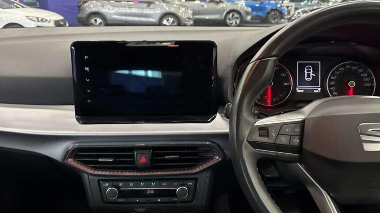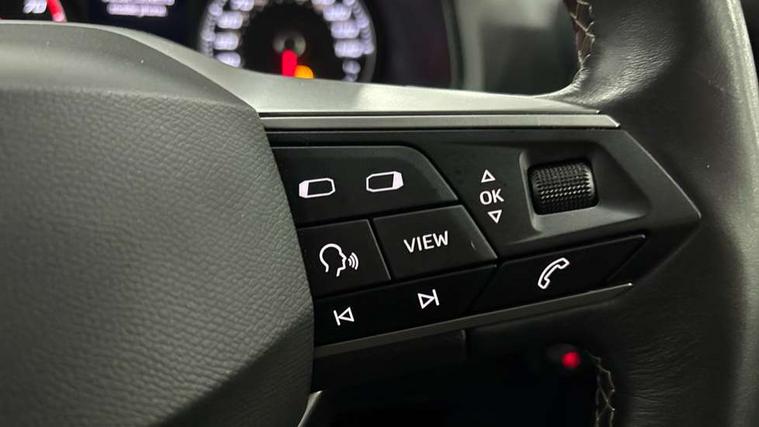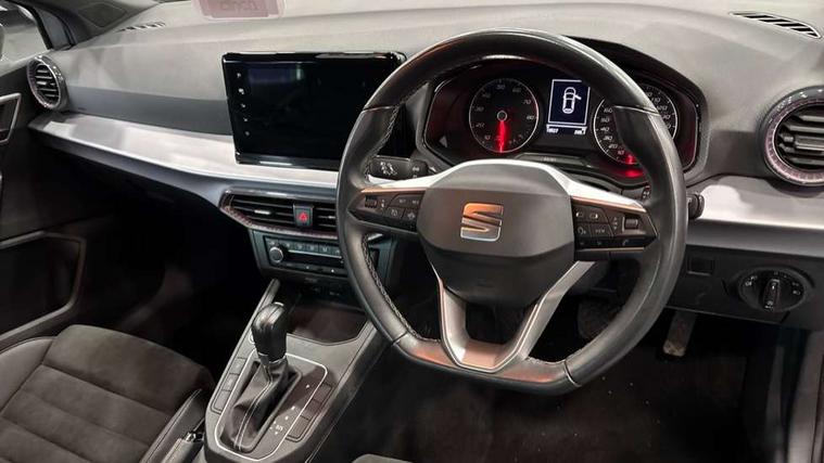 'Lights On' Reminder warning buzzer, 8" Digital cockpit, 9.2" touchscreen navigation system with type C USB socket, Voice control and DAB/AM/FM radio, Auto start and stop system, Bluetooth audio streaming with handsfree system, Digital clock, E-call, Full link smartphone integration with mirror link, wireless apple carplay, Google android auto + USB Type C cable for apple and android devices, Lane assist, Low fuel warning light, Outside temperature gauge, Power Steering, Rear parking sensor, Seat connect with safety, service, remote and online, SEAT logo boot release, Speed limiter, Trip computer, Comfort suspension, Auxiliary input socket, Radio/MP3 player, SD card slot, Steering wheel mounted controls, Anti theft roof antenna, Atom grey door mirrors, Auto dimming rear view mirror, Automatic rain sensing wipers, Body colour bumpers, Body colour door handles, Chrome window surround and upper grille surround, Dark tinted rear windows, Electric adjustable/heated/folding door mirrors, Electric front windows, Electric headlight adjustment, Electric rear windows, Front/rear fog lights, FULL LED automatic headlights with dynamic headlight range control, coming and leaving home, LED daytime running lights, LED tail lights, Rear side wing doors, Rear wiper, Third brake light, 3 seat bench in 2nd row, 60/40 split folding rear seat, Ambient interior lighting, Chrome detailing and black headlining, Comfort seats, Dual zone climate control with combination filter, Front centre armrest, Front courtesy lights, Front cupholders x 2, Front reading lights, Gear shift indicator, Glovebox, Height adjustable front and rear headrests (five), Height adjustable front seats, Height/reach adjust steering wheel, Illuminated air vent surrounds, Illuminated boot, Instrument lighting with brightness control, Isofix, Leather multifunction flat bottomed sports steering wheel, Microsuede cloth upholstery, Passenger sunvisor, Single front passenger seat, Storage pockets on back of front seats, Sunvisors with mirror and driver side card holder, 3 point seatbelts on all 3 rear seats, ABS, Active front headrests, Child locks on rear doors, Electronic stability control, Energy recovery system, Front assist forward collision warning and autonomous emergency braking, Front driver and passenger side airbags with curtain airbag and front passenger airbag deactivation, Hill hold control, Multi-Collision braking, Seat belt reminder for front and rear seats, Tiredness recognition system, Tyre pressure monitoring system, Electronic engine immobiliser, KESSY Keyless entry and go, Locking wheel bolts, Perimeter alarm and interior monitoring with backup horn and tow away protection, Remote central locking + deadlocks, 17" Dynamic machined alloy wheels in Nuclear grey,