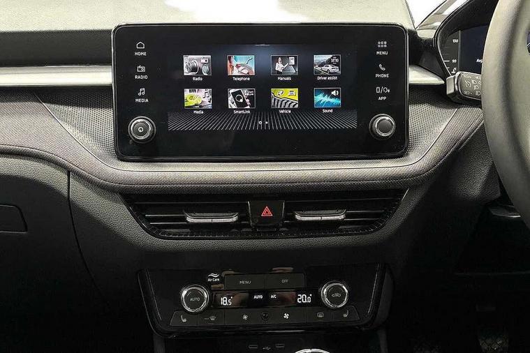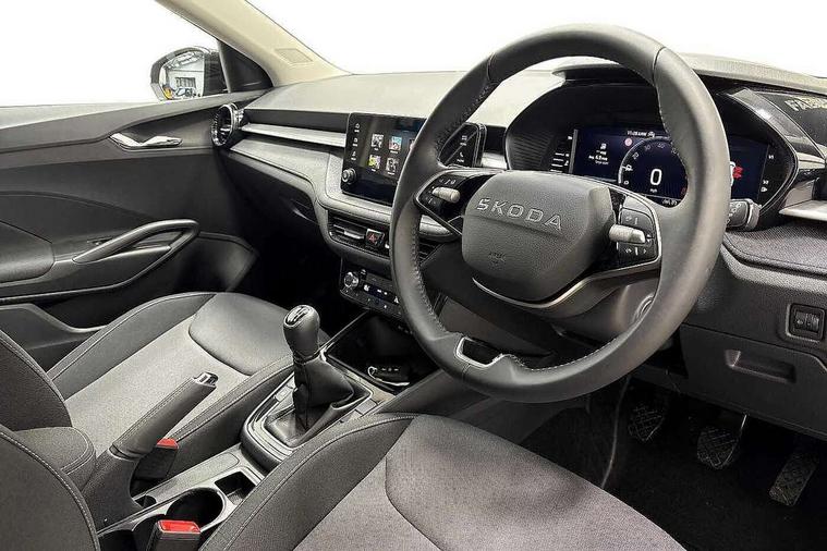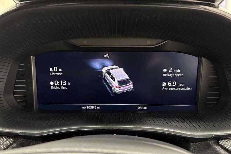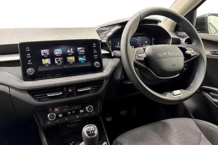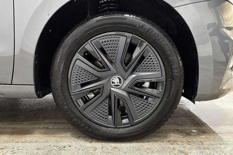 Advanced driver attention and drowsiness monitor, Bluetooth connection, Electromechanical power steering, Exterior temperature gauge, Service interval indicator, Traffic sign recognition, Virtual cockpit with 10.25" colour display, Wireless SmartLink for Apple CarPlay and Android Auto, 6 Speakers (4 in front and 2 in rear), Auxiliary socket for external MP3 player, DAB digital radio reception, Auto dimming rear view mirror, Body coloured bumpers, Door mirror integrated indicators, Front and rear electric windows, Front window wiper intermittent control, Headlight range control - Automatic, Ice scraper in fuel cap, LED 3rd brake light, LED daytime running lights with coming and leaving home feature, LED rear lights, Privacy glass, Rear LED fog light, Rear side wing doors, Rear window wiper with washing nozzles, Roof mounted spoiler, SKODA tailgate lettering in chrome, Unique dark chrome design logo on alloy wheels, 2 reading lights in front and 2 reading lights in rear, 3 rear headrests, Backrest split and folding, Central console with removable cup holder and storage box, Chrome handbrake release button, Dual zone air conditioning with climatronic electronic control, Fabric upholstery, Front centre armrest, Gearshift knob/handle in leather, Grain satin black interior door handles, Hand brake lever handle in leather, Height adjustable front headrests, Height adjustable front seats, Height adjustable steering wheel, ISOFIX and TopTether anchorage points to the outer rear seats, ISOFIX and TopTether on the front passenger seat, Luggage compartment lighting, Manually adjustable lumbar support in front seats, Pollen filter, Rear seat bench unsplit, Single front passenger seat, Skoda lettering on steering wheel, Storm grey headlining, Sun visors with mirror and airbag label on passenger side, Textile floor mats, Ticket holder, Umbrella in drivers door, 3-point height adjustable front seats belts with pretensioner and force limiter, Automatic warning lights in case of crash, Driver and passengers airbag with switch off function, e-Call+, ESC including ABS, MSR, ASR, EDS, HBA and XDS, Front and rear seat belt warning, FRONT ASSIST (AEB City and AEB Inter Urban), Front side airbags, Head airbags, One tone horn, Pedestrian protection, Three rear 3-points safety seat belts with pretensioner and force limiter including stop function for outer rear seat belts, Tyre pressure monitoring system, Anti-theft alarm system including immobiliser, interior monitoring, backup horn, and towing protection, Central locking with radio remote control, interior controls, SAFE function and 2 foldable keys, Black painted air vents, Grain satin black central console cover, Metallic grey upper decorative trim, Satin black door and side trim panel in front, Textile Kota grey lower decorative inserts, Anti-theft wheel bolts protection, Super-low rolling resistance tyres,