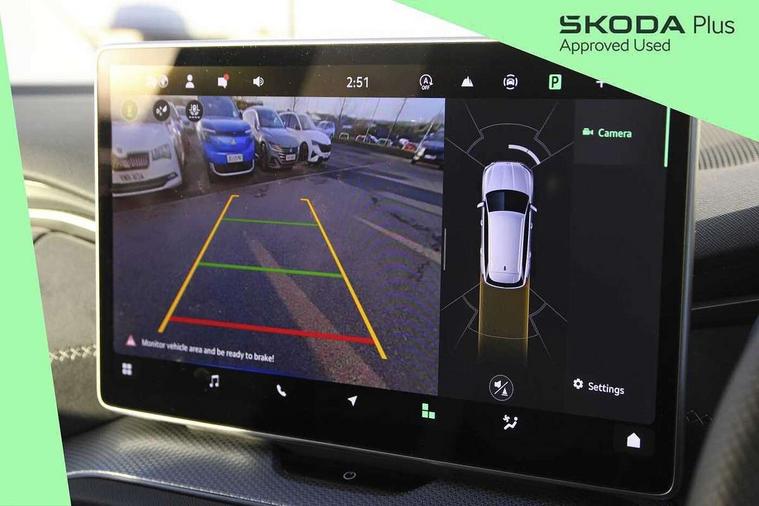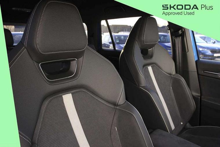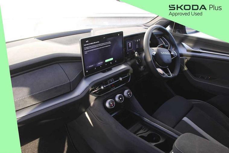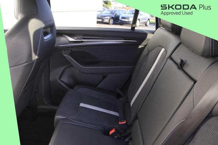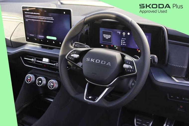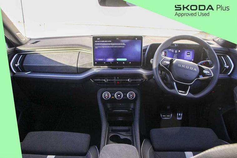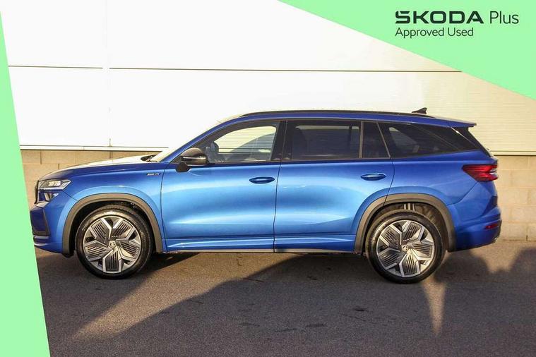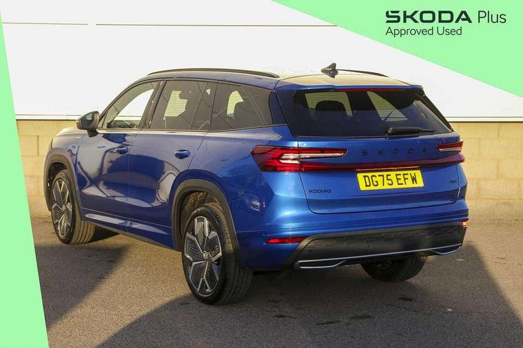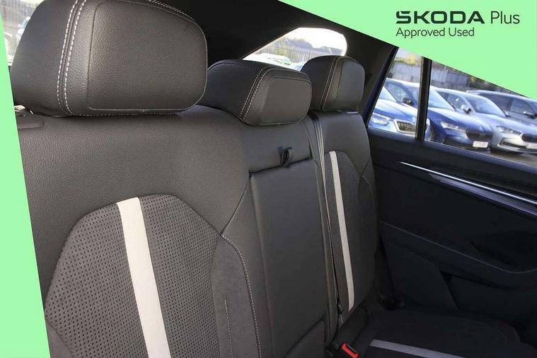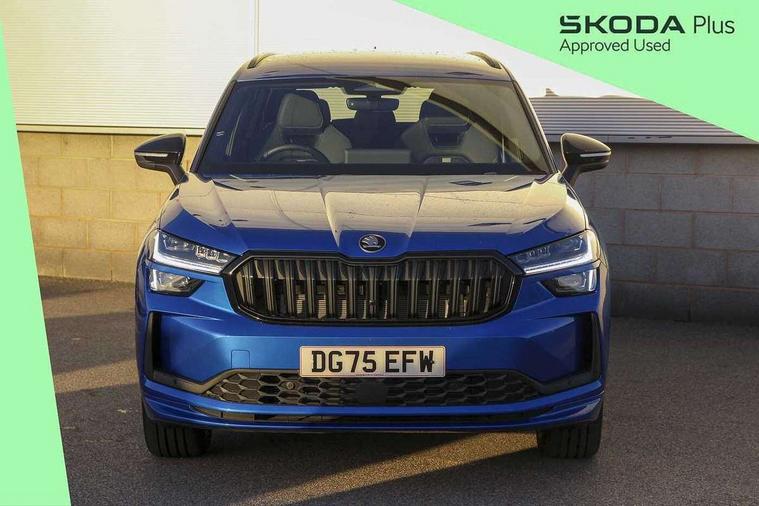 13" satellite navigation touchscreen display, Blind spot detection with door exit warning, Bluetooth system, ChatGPT functionality, Driver alert - Fatigue and drowsiness monitor, Dry display cleaner, Emergency call, Front and rear parking sensors, Front cross traffic assist, Lane assist, Off road modes, PAS, Rear traffic assist, Tailgate unlocking from outside, Traffic sign recognition, USB C Port x 2 in front centre console, Virtual Cockpit - 10.25" digital display, Voice control system, Wireless charging for two smartphones (15W) with cooling function, Wireless SmartLink for Apple CarPlay and Android Auto, Stop/start function, 2x USB-C in the rear, DAB Digital radio, Aero front windscreen wipers with intermittent function, Auto dimming rear view mirror, AWL (all weather lighting) and all weather light with cornering function, Black diffuser and decorative tailpipe with a unique dark chrome finish, Black roof rails, Black sports styling including front grille and window surrounds, Black wheel arch surrounds, Body colour door handles, Cornering light and poor weather light, Electric folding /adjustable/separted heated/folding door mirrors, auto dimming with boarding sports and memory function, Electric front and rear windows, Exterior black decorative trims, Front and rear sports bumpers including lower rear chrome strip, Gloss black door mirrors, Gloss black window frame and D pillar, Heat insulating glass in windshield, Heated rear window, Ice scraper in fuel tank cap, LED daytime running lights, LED third brake light in rear spoiler, Light assistant with automatic headlight control and coming home feature, Logo projection in door mirrors, Privacy glass, Rear roof spoiler, Rear side wing doors, Rear window wiper, Red decorative strip between rear LED lights, Safety reflectors on front and rear doors, Sportline badge on front fenders, Tailgate lettering in Black, Unique dark chrome design logo on alloy wheels, Window control switches with black trim, Windscreen wipers with rain sensor, Without engine designation, 1.5l bottle holder points in all door, 1x centre rear reading light, 2 seat bench in 3rd row, 3 configurable smart dials with 32mm coloured display, 3 seat bench in 2nd row, 4 foldable roof handles with rear coat hooks, Aluminium pedals, Ambient interior lighting - Dashboard, front-door stowage compartments, front and rear door panels and footwell lighting, Automatic gear selector on steering column, Chrome interior door handles, Driver/front passenger reading lights, Fabric headlining, Fixed bench 40:60:40 split folding backrests, Front and rear floor mats, Front centre armrest with jumbo box storage compartment, cup holder and 12V socket, Front sport seats, Height adjustable front headrests, Interior black decorative trims, Isofix child seat fittings in outer middle row rear seats and front passenger with top tether, Manually adjustable steering column, Pollen filter, Rear centre armrest with cupholders, Rear seat boot backrest release, Single front passenger seat, Skoda lettering on steering wheel, Storage pocket including mobile phone pockets on the backs of the front seats, Sunvisors with illuminated vanity mirrors, Three rear height adjustable headrests, Ticket holder on A Pillar, Tri zone climate control, Umbrella in door panel x1 made from sustainable materials, Upper and lower glovebox with card holder and coin compartment, USB C port by rear view mirror for charging only (15W), Acoustic package - Kodiaq, Performance package - Kodiaq, Sportline design selection pack - Kodiaq, Auto door release and activation of warning lights in the event of an accident, Driver and front passenger airbag with knee airbag and front passenger airbag deactivation, Electric child locks, Electronic parking brake, ESC (incl. ABS+EMD+MSR+ASR+EDL+HBA+DSR+RBS+ESBS+MCB+TSA+XDS), Front assist with braking reaction to vehicles, pedestrians and cyclists, Front disc brakes, Fuel cut off safety device, Height adjustable front 3 point seatbelts + pretensioners, Hill hold assist, Junction assist with automatic emergency braking, Rear disc brakes, Safety vest holder in door, Seat belt reminder for all seats, Three point rear seat belts, Two tone horn, Tyre pressure monitor, Alarm with interior monitoring and tilt sensor with safe function, Anti-theft wheel bolts, Immobiliser, Remote central locking with 2 keys, 20" Rila anthacite polished alloy wheel with black matte aero covers,