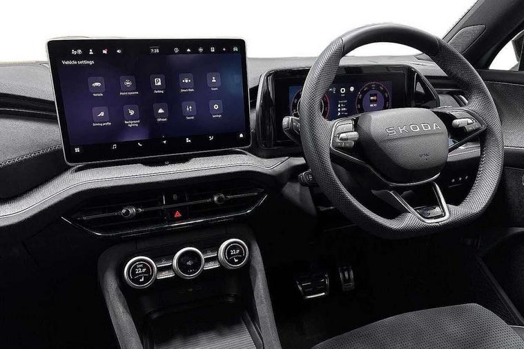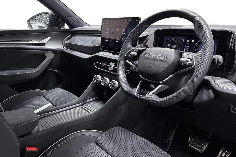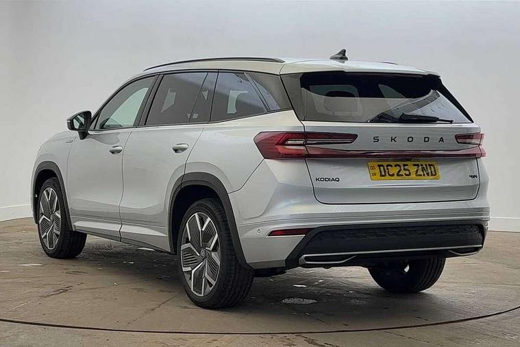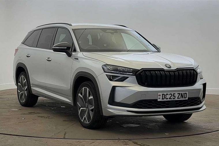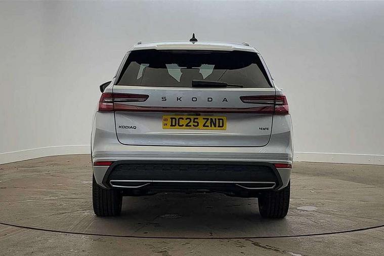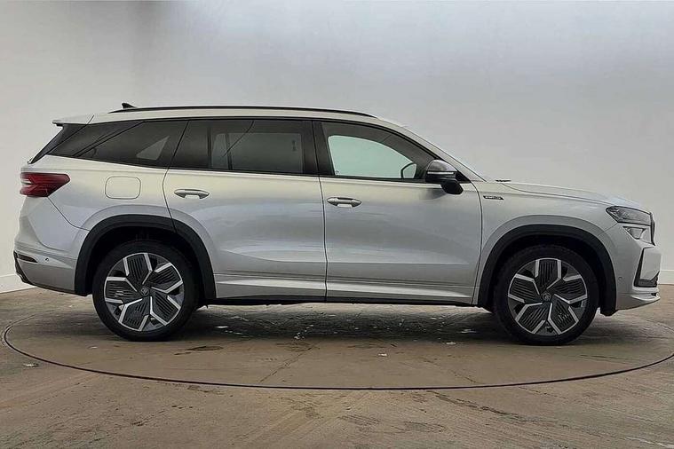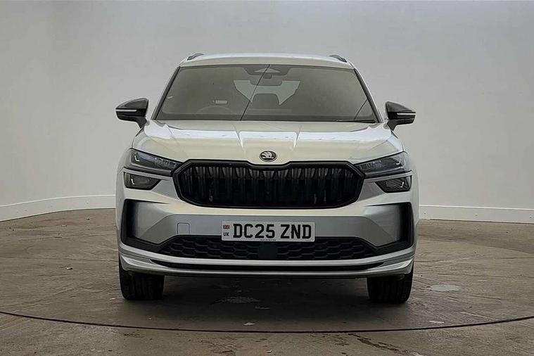 13" satellite navigation touchscreen display, Blind spot detection with door exit warning, Bluetooth system, ChatGPT functionality, Driver alert - Fatigue and drowsiness monitor, Dry display cleaner, Emergency call, Front and rear parking sensors, Front cross traffic assist, Lane assist, Off road modes, PAS, Rear traffic assist, Tailgate unlocking from outside, Traffic sign recognition, USB C Port x 2 in front centre console, Virtual Cockpit - 10.25" digital display, Voice control system, Wireless charging for two smartphones (15W) with cooling function, Wireless SmartLink for Apple CarPlay and Android Auto, Stop/start function, 2x USB-C in the rear, DAB Digital radio, Aero front windscreen wipers with intermittent function, Auto dimming rear view mirror, AWL (all weather lighting) and all weather light with cornering function, Black diffuser and decorative tailpipe with a unique dark chrome finish, Black roof rails, Black sports styling including front grille and window surrounds, Black wheel arch surrounds, Body colour door handles, Cornering light and poor weather light, Electric folding /adjustable/separted heated/folding door mirrors, auto dimming with boarding sports and memory function, Electric front and rear windows, Exterior black decorative trims, Front and rear sports bumpers including lower rear chrome strip, Gloss black door mirrors, Gloss black window frame and D pillar, Heat insulating glass in windshield, Heated rear window, Ice scraper in fuel tank cap, LED daytime running lights, LED third brake light in rear spoiler, Light assistant with automatic headlight control and coming home feature, Logo projection in door mirrors, Privacy glass, Rear roof spoiler, Rear side wing doors, Rear window wiper, Red decorative strip between rear LED lights, Safety reflectors on front and rear doors, Sportline badge on front fenders, Tailgate lettering in Black, Unique dark chrome design logo on alloy wheels, Window control switches with black trim, Windscreen wipers with rain sensor, Without engine designation, 1.5l bottle holder points in all door, 1x centre rear reading light, 2 seat bench in 3rd row, 3 configurable smart dials with 32mm coloured display, 3 seat bench in 2nd row, 4 foldable roof handles with rear coat hooks, Aluminium pedals, Ambient interior lighting - Dashboard, front-door stowage compartments, front and rear door panels and footwell lighting, Automatic gear selector on steering column, Chrome interior door handles, Driver/front passenger reading lights, Fabric headlining, Fixed bench 40:60:40 split folding backrests, Front and rear floor mats, Front centre armrest with jumbo box storage compartment, cup holder and 12V socket, Front sport seats, Height adjustable front headrests, Interior black decorative trims, Isofix child seat fittings in outer middle row rear seats and front passenger with top tether, Manually adjustable steering column, Pollen filter, Rear centre armrest with cupholders, Rear seat boot backrest release, Single front passenger seat, Skoda lettering on steering wheel, Storage pocket including mobile phone pockets on the backs of the front seats, Sunvisors with illuminated vanity mirrors, Three rear height adjustable headrests, Ticket holder on A Pillar, Tri zone climate control, Umbrella in door panel x1 made from sustainable materials, Upper and lower glovebox with card holder and coin compartment, USB C port by rear view mirror for charging only (15W), Acoustic package - Kodiaq, Performance package - Kodiaq, Sportline design selection pack - Kodiaq, Auto door release and activation of warning lights in the event of an accident, Driver and front passenger airbag with knee airbag and front passenger airbag deactivation, Electric child locks, Electronic parking brake, ESC (incl. ABS+EMD+MSR+ASR+EDL+HBA+DSR+RBS+ESBS+MCB+TSA+XDS), Front assist with braking reaction to vehicles, pedestrians and cyclists, Front disc brakes, Fuel cut off safety device, Height adjustable front 3 point seatbelts + pretensioners, Hill hold assist, Junction assist with automatic emergency braking, Rear disc brakes, Safety vest holder in door, Seat belt reminder for all seats, Three point rear seat belts, Two tone horn, Tyre pressure monitor, Alarm with interior monitoring and tilt sensor with safe function, Anti-theft wheel bolts, Immobiliser, Remote central locking with 2 keys, 20" Rila anthacite polished alloy wheel with black matte aero covers,