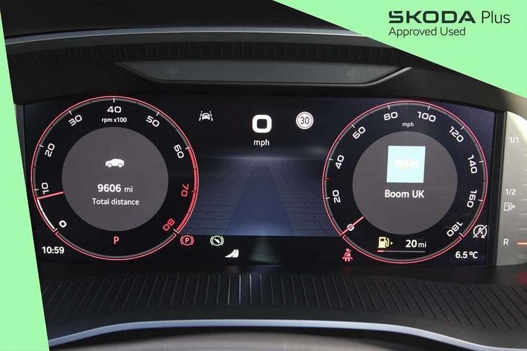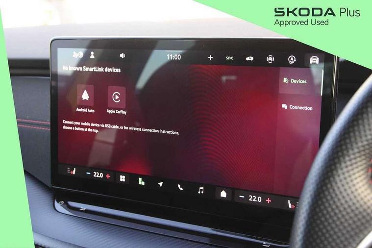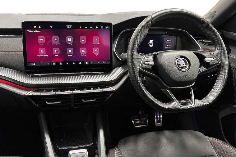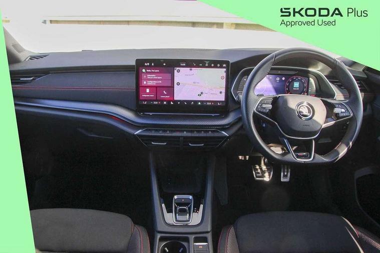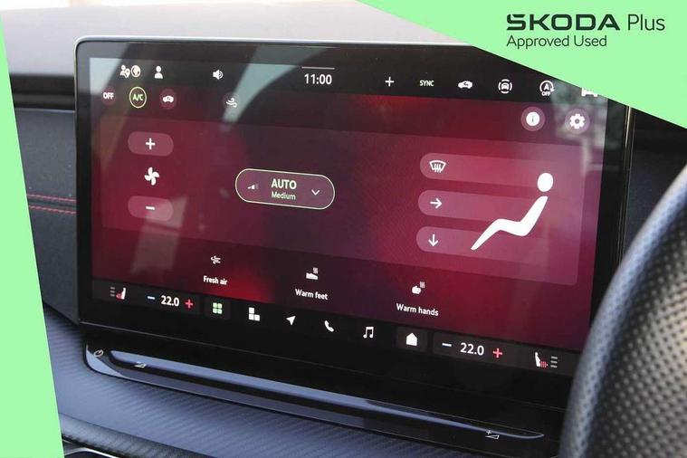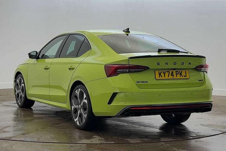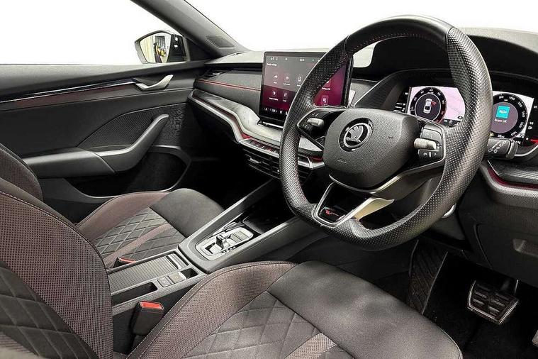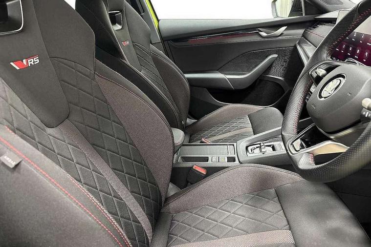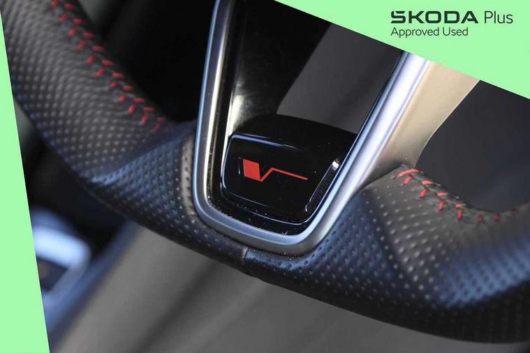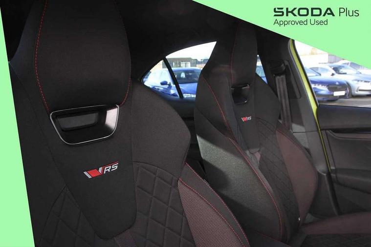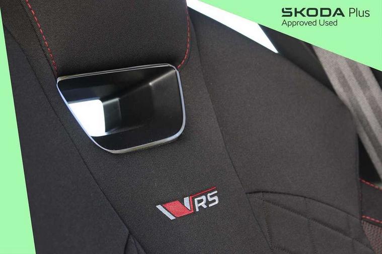 1x USB Typc C port in rear view mirror, 4x USB Type C ports - 2x in front centre console and 2x in rear (45W), Blind spot detection, Drive mode selection, Driver fatigue sensor, eCall emergency system, Electrically operated boot with virtual pedal, Front and rear parking sensors with manoeuvre assist, Front assist system, Predictive adaptive cruise control with traffic jam assist, Progressive dynamic steering, Traffic sign recognition, Turn Assist, Virtual Cockpit - 10.25" digital display, Voice control system, Wireless charging (15W) with cooling function, Wireless SmartLink for Apple CarPlay and Android Auto, Electronically controlled limited slip differential, vRS suspension, 13" touchscreen display with navigation, DAB Digital radio, Aero front windscreen wipers with intermittent function, Auto dimming rear view mirror, Black sport exhaust pipes, Body colour bumpers, Body colour door handles, Electric front and rear windows, Exterior gloss black sports styling including front grille, window surrounds, door mirrors and badging, Gloss black diffuser, Gloss black spoiler, Heated rear windscreen, High beam control, High level third brake light, Ice scraper in fuel cap, LED daytime running lights, Logo projection in front doors, Rain and light sensors, Rear fog light on one side, Rear privacy glass, Rear side wing doors, Unique vRS bumpers and exterior styling, 12 volt socket in boot, 3 rear headrests, 3 seat bench in 2nd row, 4 foldable roof handles, Aluminium pedals, Front head restraints, Front sport seats, Heated front seats, Illuminated glovebox, Interior door handles in dark chrome, Jumbo Box storage, Luggage compartment lighting x2 lights, Mechanical rear seat release from boot, Parcel shelf - folding, Single front passenger seat, Steering wheel in black leather with black stitching, Storage compartments in left and right of boot, Sun visors with mirrors, Sunglasses storage, Ticket holder, Umbrella in door panel, Unsplit rear bench seat, split folding backrest with centre armrest with cupholder, Waste bin in door panel, Comfort package - Octavia, Family package - Octavia, Light and view package plus - Octavia, vRS Design Selection pack - Octavia, 3x3 point rear seat belts, Alarm with interior monitoring, tilt sensor and back up horn, Curtain airbags and front side airbags, Driver and front passenger airbags, Drivers knee airbag, Electronic parking brake, ESC including ABS, EBV, MSR, ASR, EDS, HBA, DSR, Front central airbag, Hill hold assist, ISOFIX on front passenger seat and outer rear seats, Passenger airbag deactivate switch, Red brake calipers, Three point seat belts in front and rear, Two tone horn, Tyre pressure monitor, Visual and acoustic seat belt reminder, Warning reflectors in front door, Anti-theft wheel bolts, Keyless start/stop, Remote central locking, Gloss black air vent surrounds, 19" Elias anthracite alloy wheels,