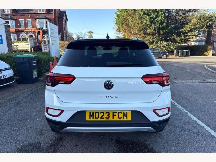 Bluetooth mobile phone interface, Driver alert system with fatigue detection, Driver tips and journey analysis, Emergency call service, Lane keeping system Lane Assist, Modified key software - reduce switch off time for key status change to Long no motion, Online services, Park assist including front and rear parking sensors, Power assisted speed sensitive steering, Service interval indicator, Tailgate/trunk lid release from outside, Think blue trainer driver tips and journey analysis, Warning sound and light for front seatbelts unfastened, Wireless app connect, Battery regeneration during braking, Front shock absorption, Rear shock absorption chassis with increased ride height, Start/stop function with battery regeneration, DAB Digital radio, Diversity antenna for FM reception, Music playback - MP3, WMA and AAC files, Premium USB cable in choice of either Apple or Android smartphone compatibility, SD card slot, Simultaneous pairing of 2 compatible mobile devices, Title and cover art display, We Connect and We Connect Plus functionality, 3rd brake light, Auto dimming interior rear view mirror, Automatic hazard lights activation under emergency braking, Automatic headlight control with LED separate daytime running lights with coming/leaving home function, Black roof rails, Body coloured bumpers and radiator grille with chrome trim and front fog lamps with chrome bezel, Body coloured exterior mirror housings and door handles, Extended roof spoiler, Exterior mirrors aspherical on driver side, convex on front passenger side, External USB type C socket and charging sockets, Front windscreen wiper with intermittent wipe and 4 position delay, Heated rear window, LED rear combination lamps, LED rear number plate lights, LED tail lamp rear comination lamps, Power windows with comfort operation and circuit breaker, Rain sensor, Rear exhaust tailpipe, Rear fog light on one side and reversing lights on both sides, Rear side wing doors, Rear wash/wipe with intermittent wipe setting, Remote electrically foldable door mirrors, puddle lights and reverse activated passenger's door mirror, 12V power socket in centre console, 3 rear head restraints, 3 seat bench in 2nd row, 4 load lashing points in luggage compartment, Air care climatronic air conditoning system with active combination filter and 2-zone temperature control, Ambient lighting with mirror logo projection, Cloth upholstery, Door and side trim panel in cloth, Drawer under drivers seat, Driver/front passenger seat height adjustment, Front centre armrest, Front comfort sports seats, Front cupholders x 2, Front reading light, Instrument lighting, white adjustable panel illumination, Interior light delay, Isofix child seat preparation, Leather gearshift handle, Load-through provision with cup holder when folded down ('Unsplit rear seat bench, split folding backrest, with centre armrest), Luggage compartment lighting, Lumbar support for driver's and front passengers seat, Non-folding front passenger seat backrest, Single front passenger seat, Storage compartment in left and right luggage area, Storage compartment in rear doors, Storage compartments in driver and front passenger doors, Sunvisors with illuminated vanity mirrors, Variable boot floor, height adjustable and removable, Driver assistance pack without proactive passenger protection - T-Roc, 3 point height adj front seatbelts + pretensioners, 3 point seatbelts in outer rear with ECE label, ABS, Child locks on rear doors, Driver and front passenger airbag with front passenger airbag deactivation, Driver and front passenger safety-optimised head restraints, Drivers seatbelt reminder, Electronic parking brake, Electronic Stability Control (ESC) inc EDL (Electronic Differential Lock) and ASR (Traction Control), Front and rear passengers curtain airbag system including front side airbags, Front assist with city emergency braking and pedestrian monitoring, Front disc brakes, Front seat side impact airbags, Hill start assist, Predictive pedestrian protection, Rear disc brakes, Single tone horn, Tyre pressure loss indicator, Volkswagen roadside assistance, Alarm with interior protection, Anti-theft alarm system with interior monitoring, backup horn, and towing protection, Remote central locking with SAFELOCK, radio remote control with 2 remote control folding keys, Pewter matt decorative inserts for intrument panel, centre console and door panels at the front, Trims for alloy wheels,