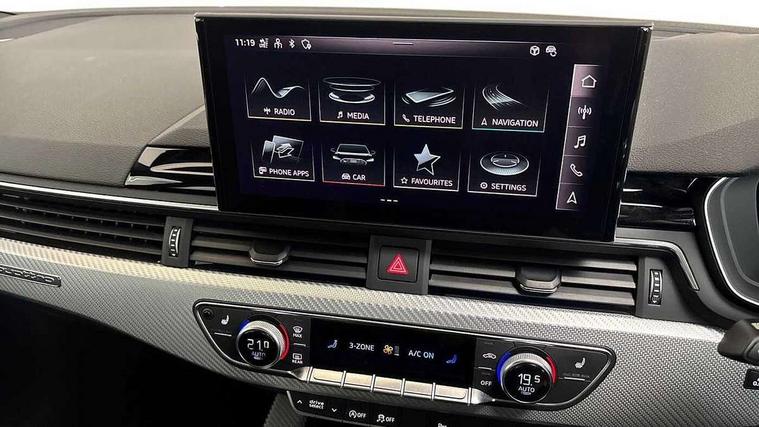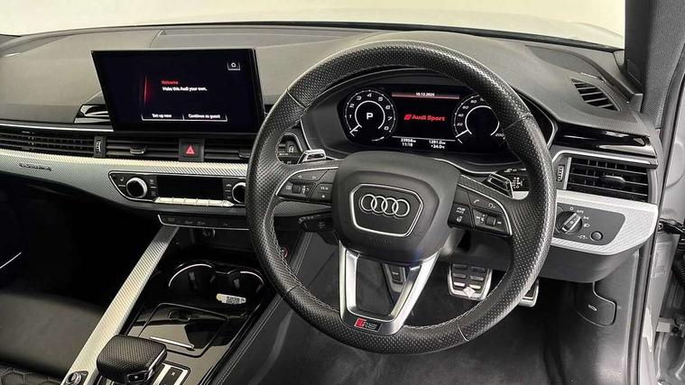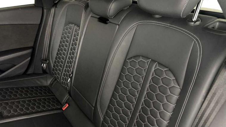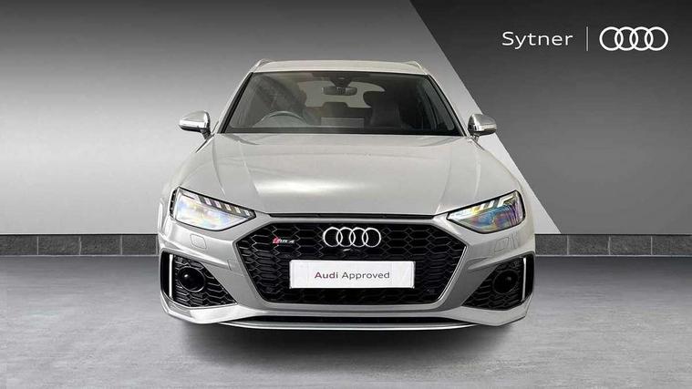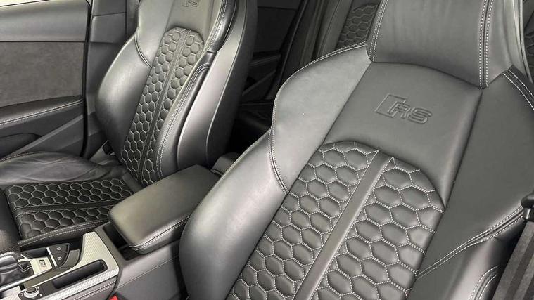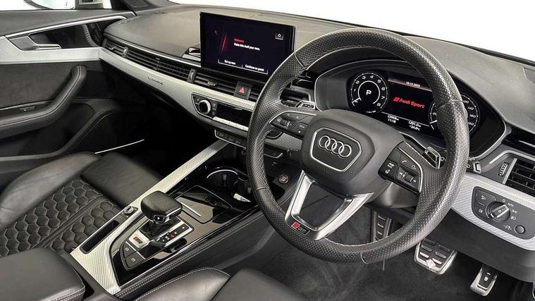 7" Colour driver information system, Audi connect safety and service (e-call), Audi drive select, Audi parking system plus with front and rear sensors, Audi phone box with wireless charging, Audi side assist, Audi smartphone interface, Audi virtual cockpit with RS specific display, Automatic start-stop system with coasting functionality and efficiency programme, Bluetooth interface, Electromechanical power steering, Email, calendar and text messages displayed via MMI, MMI Navigation plus with MMI touch includes 10.1" high resolution colour MMI display, 3D map, Power opening/closing tailgate, Rear view camera, Service interval indicator, Voice control system, 58 Litre fuel tank, Quattro sports differential, 2 USB charging ports, Audi sound system, DAB digital radio module, Acoustic windscreen, Audi Beam uses LEDs to project the Audi Sport logo, Audi matrix LED headlights with LED rear lights + dynamic front and rear indicators, Auto dimming rear view mirror, Automatic headlights + automatic windscreen wipers, Blue tinted glass, Body colour door handles, Electric front windows, Electric rear windows, Electrically folding auto dimming/adjustable/heated door mirrors with memory function, LED side indicators and kerb view function for passenger side, Flared front and rear wheel arches, Front bumper with enlarged air inlets, Front spoiler in matt aluminium look finish, Headlight range control, High beam assistant, High gloss black triangular aperture at rear door, Honeycomb design grille with quattro logo, Lateral air inlets next to front headlights, LED daytime running lights, LED indicators in door mirrors, Matt aluminium door mirrors, Privacy glass with rear acoustic glazing, Rain and light sensors, Rear wiper, Roof rails in aluminium matt look finish, Roof spoiler, RS 4 badges on grille, the front wing panels and rear, RS4 dual branch chrome tailpipes with left and right oval pipes, Side sill extensions in body colour with high gloss black inserts, 3 spoke flat bottomed high multi-function leather sport steering wheel with RS badging, 40/20/40 split folding rear seats with rear centre armrest, Black cloth headlining, Deluxe 3 zone electronic climate control, Electric load area cover, Electrically adjustable front seats, Fine nappa leather with contrast honey comb stitching + super sports seats with pneumatic massage function, Front centre armrest, Front headrests, Front/rear floor mats, Heated front seats, Height and reach adjustable steering wheel with full size airbag, Illuminated door sill trims with RS4 logo, ISOFIX child seat mounting and top tether, Leather door armrests and knee pad, Luggage compartment carpet, Rear headrests, Retractable load area cover, RS Specific perforated leather gear lever knob with contrast stitching, Stainless steel pedals, Sunvisors with vanity mirrors, LED Interior light pack - RS4, Non Smokers pack, 3 point seatbelts on all rear seats, Adaptive driver and front passenger airbags, Electromechanical parking brake, Electronic stabilisation control including ABS, ASR and EDL, Enhanced braking system, Front head airbags, Front seatbelt pretensioners + load limiters, Front side airbags, Hill hold assist, Multi-Collision braking, Pop-up bonnet for pedestrian protection, Pre sense city, Rear side airbags, Seatbelt monitoring, Traction control, Tyre pressure warning, Variable restraint system, Warning triangle and first aid kit, Anti theft alarm, Anti-theft wheel bolts, Immobiliser, Keyless Go, Remote central locking, Remote control key with RS emblem, Aluminium race inlays, Tool kit, Tyre repair kit,