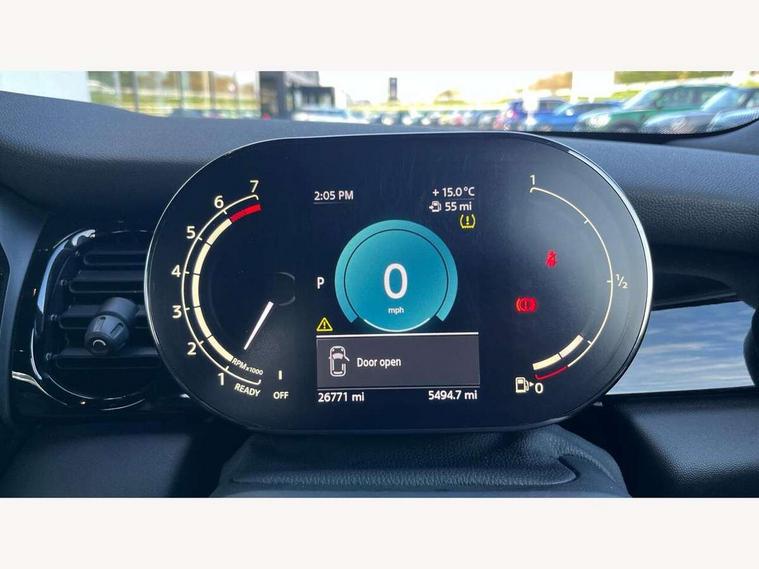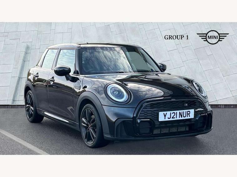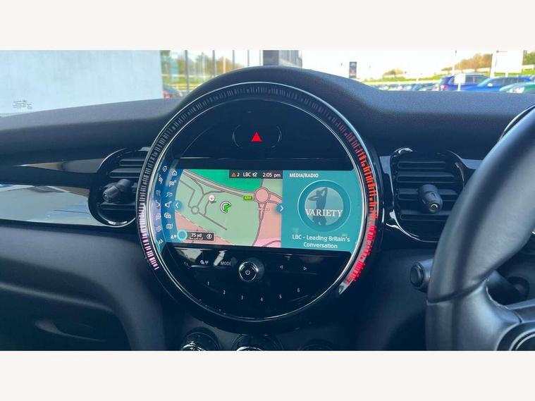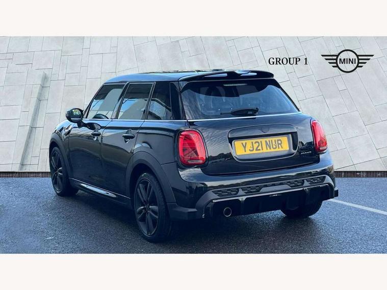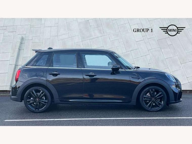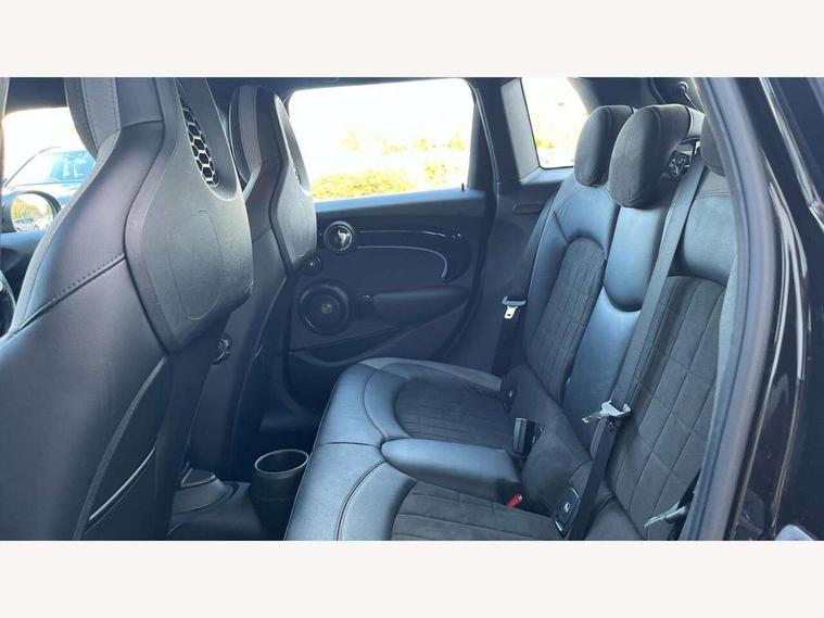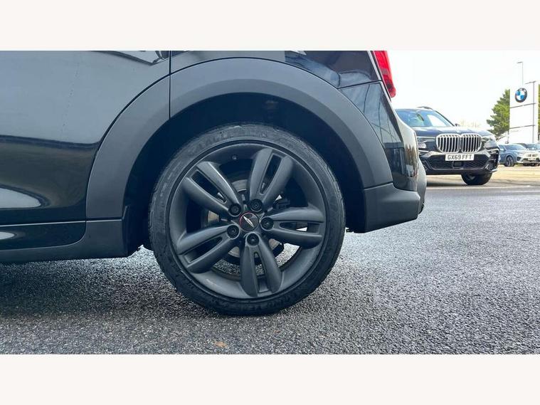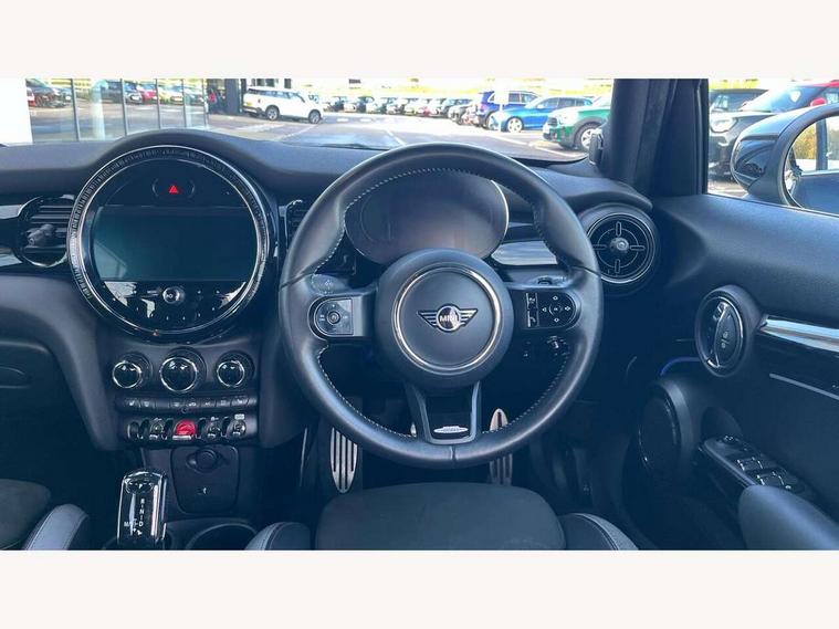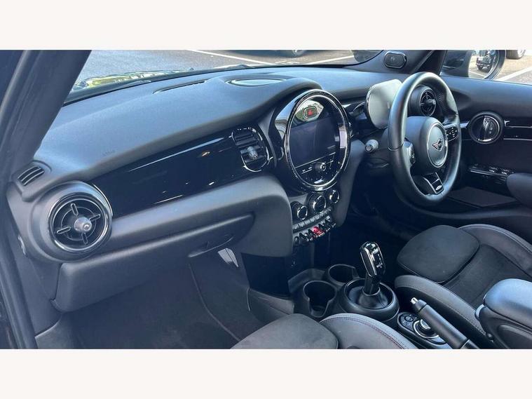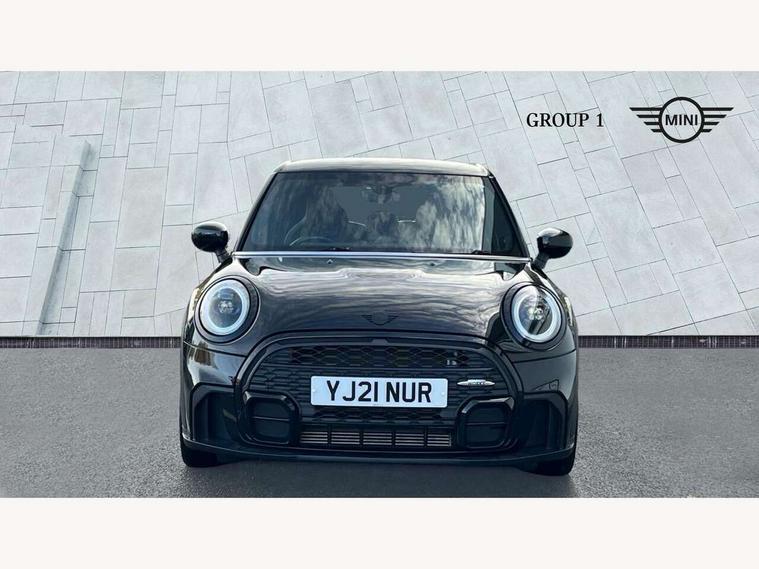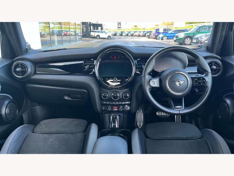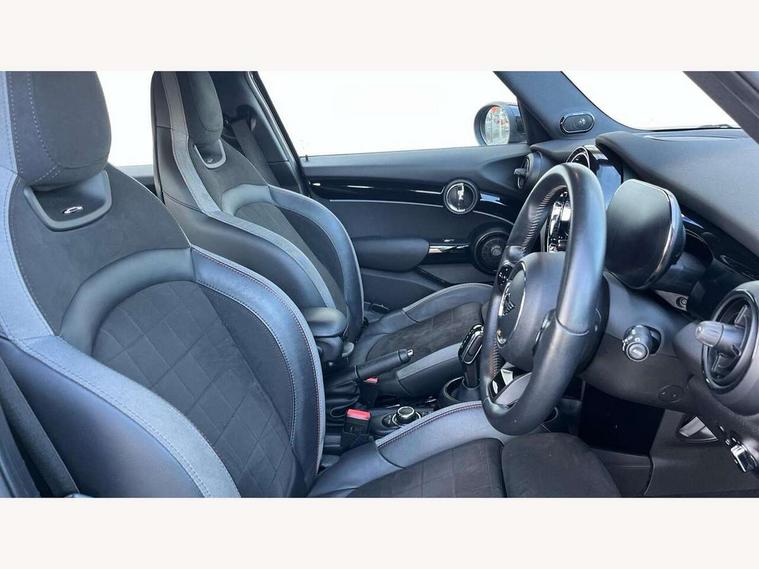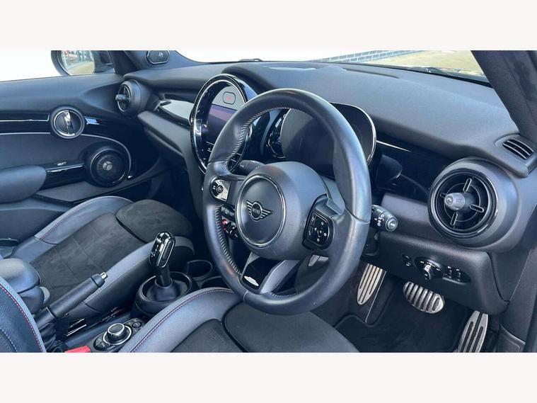 Automatic start/stop function with brake energy recuperation, Compatible mobile phone bluetooth with audio streaming, Cruise control with brake assist, Electro-mechanical speed dependant steering assistance, Flexible car sharing preparation, Instrument cluster, MINI Driving Modes - centre toggle switch to control driving setting (sport, mid and green), Mini E-call, MINI TeleServices, On board computer, Rear park distance control, Service interval indicator, Adaptive suspension, Double Vanos system, Fully variable valve control, Gear change indicator display, High precision injection, Performance Control, Steptronic transmission with double clutch, 6 speakers in front door trims and underneath front seats, 8.8" touchscreen with LED ring, FM tuner and DAB digital radio, Automatic headlight activation switch, Body colour fuel filler cap, Chrome border high gloss black slats radiator grille, Dynamic brake lights, Electric front+rear windows, Exhaust tailpipe on left with chrome finisher, Heated rear window, Heated windscreen washer jets, JCW Aerodynamic kit - Front and rear bumpers with sporty JCW styling and part-painted side sills with MINI John Cooper Works door sill finishers, John Cooper Works rear spoiler, LED headlight with closed ring and daytime driving lights, Metal door sill strips with MINI imprint, Model logo Cooper on right of tailgate, Rain sensor window wipers, Rear fog lights, Rear LED lights with union jack design, Rear window wiper, Side scuttle panel with integrated indicator, Sun/heat protection glass, White indicator lenses, 12V Accessory socket in centre console, 4 lashing eyes in luggage compartment, 60/40 split folding rear seat, Anthracite headliner including grab handles and clothes hooks, Carbon black colour line - Knee roll and door armrest, Chrome interior highlights, Cupholders, Front and rear isofix with front passenger airbag deactivation, Glove compartment, Height and length steering column adjustment, Interior lighting with 12 different colours across the dashboard, underneath door bezel with illuminated laser-engraved design on central display, JCW Sport seats with integrated headrests, adjustable thigh support and John Cooper Works logo, Leatherette gearshift lever and handbrake gaiters, LED reading lights, vanity mirror lights, front foot well light and spotlight on front seats, Manual air conditioning, Mechanical seat adjustment - forward/back & backrest for front seats and driver seat height adjust, Multifunction steering wheel, Storage compartments in doors, Sunvisors with vanity mirrors, Velour floor mats, Walknappa leather steering wheel with grey seam and John Cooper Works badge on Piano Black lower steering wheel spoke, Piano black exterior pack - Mini Hatchback Cooper, 3 point seatbelts on all five seats, 6 Airbags - front, side, head and seat belt tensioners, Anti-lock braking system (ABS), DSC - Dynamic Stability Control, Front and rear disc brakes, Hill start assist, Single tone fanfare horn, Tyre pressure monitoring system, Alarm system with tilt sensor, monitoring doors, bonnet interior and tailgate, Electronic vehicle immobiliser, Start/stop toggle with keyless go, Piano black interior trim, Tool kit,