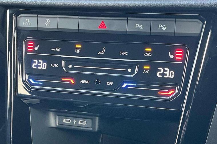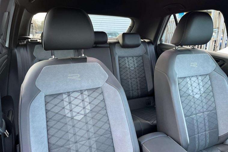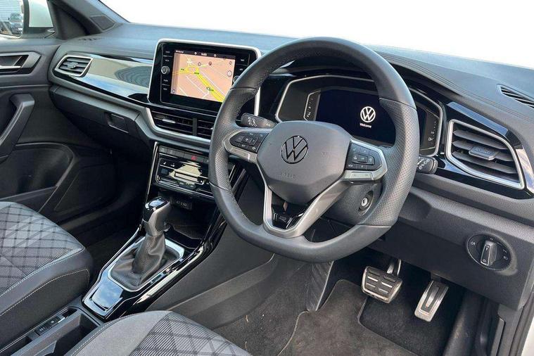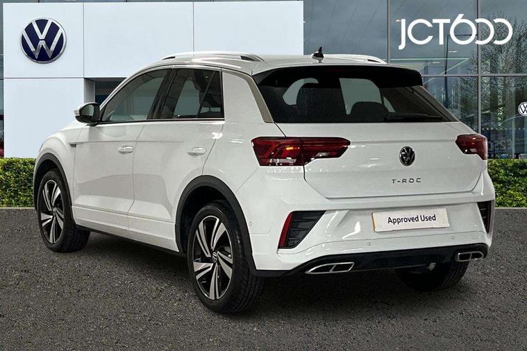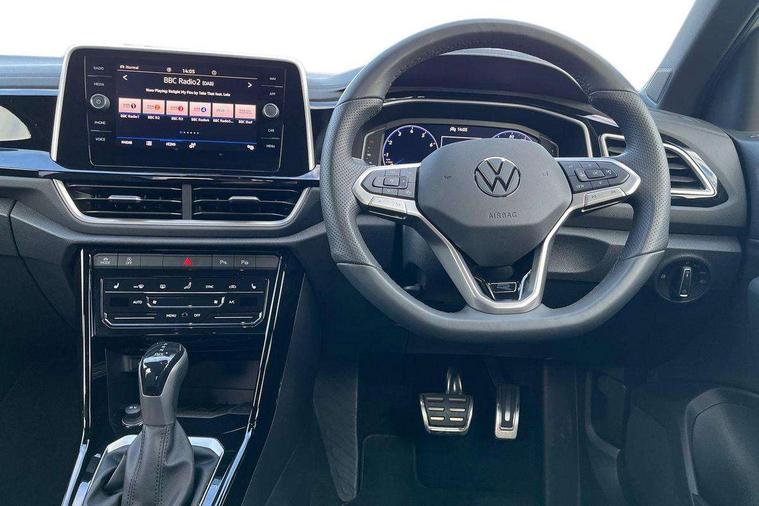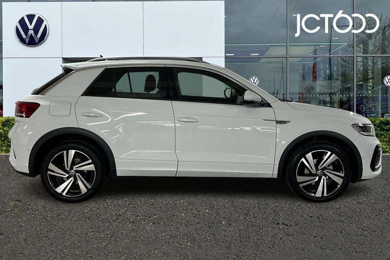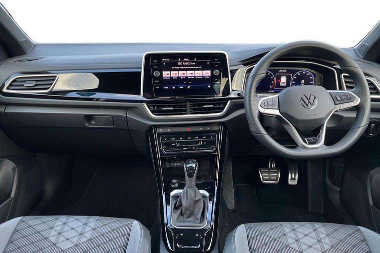 10.25" Digital cockpit pro, Advanced driver attention and drowsiness monitor, Emergency call service, Lane keeping system Lane Assist, Mobile phone interface, Modified key software - reduce switch off time for key status change to Long no motion, Online services, Park assist including front and rear parking sensors, Service interval indicator, Tailgate/trunk lid release from outside, Think blue trainer driver tips and journey analysis, Warning sound and light for front seatbelts unfastened, Wireless app connect, Battery regeneration during braking, Start/stop function with battery regeneration, DAB Digital radio, Diversity antenna for FM reception, Front and rear 6 speakers, Music playback - MP3, WMA and AAC files, Premium USB cable in choice of either Apple or Android smartphone compatibility, SD card slot, Simultaneous pairing of 2 compatible mobile devices, Title and cover art display, We Connect and We Connect Plus functionality, Auto dimming interior rear view mirror, Automatic hazard lights activation under emergency braking, Automatic headlight control with LED separate daytime running lights with coming/leaving home function, Body coloured exterior mirror housings and door handles, Electrically adjustable and heated door mirrors, Extended roof spoiler, Exterior mirrors aspherical on driver side, convex on front passenger side, External USB type C socket and charging sockets, Front windscreen wiper with intermittent wipe and 4 position delay, Heated rear window, LED 3rd brake light, LED rear combination lamps, LED rear number plate lights, Power windows with comfort operation and circuit breaker, Privacy glass for rear side windows and rear window, R-Line design body coloured bumpers, Rain sensor, Rear exhaust tailpipe, Rear fog light on one side and reversing lights on both sides, Rear side wing doors, Rear wash/wipe with intermittent wipe setting, Remote electrically foldable door mirrors, puddle lights and reverse activated passenger's door mirror, 12V power socket in centre console, 3 rear head restraints, 3 seat bench in 2nd row, 4 load lashing points in luggage compartment, Air care climatronic air conditoning system with active combination filter and 2-zone temperature control, Black roof lining, Chrome plated decorative trims, Chrome plated radiator grille inserts, air vent surrounds and light switch surrounds, Door and side trim panel with leatherette insert, Front + rear carpet mats, Front centre armrest, Front cupholders x 2, Front footwell illumination, Front reading light, Front scuff plates with R Line logo, Front seat back storage pockets, Glove compartment door with light, Instrument lighting, white adjustable panel illumination, Interior ambient lighting and surround lighting, Interior light delay, Isofix child seat preparation, Leather gearshift handle, Load-through provision with cup holder when folded down ('Unsplit rear seat bench, split folding backrest, with centre armrest), Luggage compartment lighting, Single front passenger seat, Stainless steel pedals, Storage compartment in left and right luggage area, Storage compartment in rear doors, Storage compartments in driver and front passenger doors, Sunvisors with illuminated vanity mirrors, Variable boot floor, height adjustable and removable, Driver assistance pack without proactive passenger protection - T-Roc, 3 point height adj front seatbelts + pretensioners, 3 point seatbelts in outer rear with ECE label, ABS, Child locks on rear doors, City emergency braking and pedestrian monitoring, Driver and front passenger airbag with front passenger airbag deactivation, Driver and front passenger safety-optimised head restraints, Drivers seatbelt reminder, Electronic parking brake, Electronic Stability Control (ESC) inc EDL (Electronic Differential Lock) and ASR (Traction Control), Front and rear passengers curtain airbag system including front side airbags, Hill start assist, Predictive pedestrian protection, Rear disc brakes, Two tone horn, Tyre pressure loss indicator, Volkswagen roadside assistance, Piano black decorative inserts in dashboard and front door trim panels, Trims for alloy wheels,