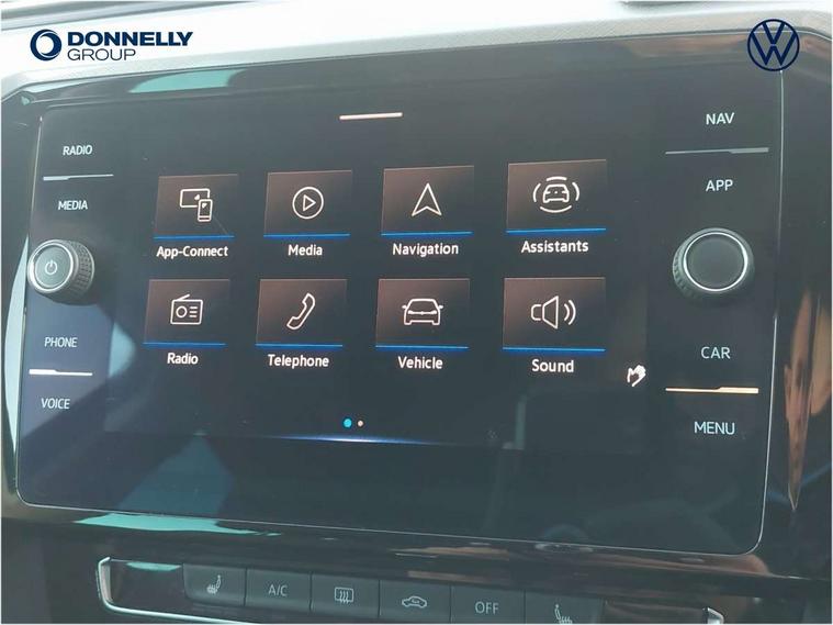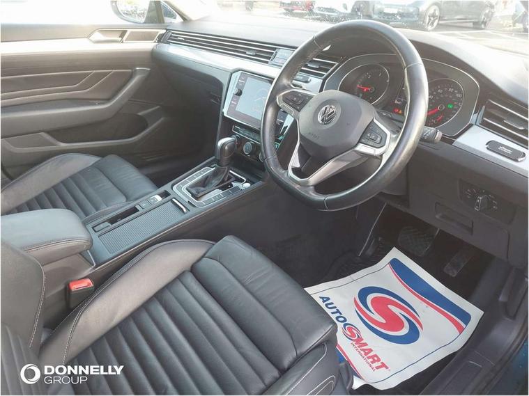 Adaptive cruise control including Front Assist, radar sensor controlled distance monitoring system, City emergency braking system, Driver alert system, Driver profile selection, Exterior temperature gauge with frost alarm, Lane assist, Low washer fluid warning light, Multifunction computer includes visual gear, One touch indicator turn signal, Proactive occupant protection, Security and service including e-call, Speed sensitive power steering, Speedo and rev counter, electronic odometer, trip, service interval display and fuel gauge, Start/Stop function, Traffic jam assist, Warning buzzer and light for front seatbelts unfastened, Wireless app connect, Battery regeneration during braking, Diesel particulate filter, Misfuel prevention device, Aerial for radio integrated into rear windscreen, DAB Digital radio receiver, Auto dimming interior rear view mirror, Automatic headlights with dusk sensor, Automatic leaving home and manual coming home lighting functions, Black radiator grille with chrome louvres, Body colour bumpers, Body colour door handles, Body coloured door mirrors with intergrated indicators, Chrome side window surrounds, Front and rear electric windows, Fully galvanised body, Gloss black finish on B pillar, Heated rear window, High level 3rd brake light, LED rear lights, LED rear number plate lights, Plastic load sill protection, Rain sensor, Rear tinted glass from B pillar backwards, approx 65% tinted, Rear window wash/wipe, Remote electrically adjustable and foldable heated door mirrors including automatic dimming function on drivers side door mirror puddle lights, Silver anodised roof rails, Volkswagen roundel, Warning lights for open tailgate and doors, White instrument lighting, 12V socket in front centre console, 12V socket in luggage compartment, 40:20:40 split folding rear seat backrests, Driver's door storage compartment for 1.0 litre bottle, Extending luggage compartment cover with convenience opening, stowable, Front + rear carpet mats, Front and rear interior lighting with delay and dimming function, Front centre armrest with storage compartment and two rear air vents, Front cupholders x2 with covers, Front passenger storage compartment for 1.5 litre bottle, Height adjustable and removable variable boot floor, Height adjustable rear seat head restraints (x3), Height/reach adjust steering wheel, Illuminated vanity mirrors, Isofix child seat preparation, outer rear seats, Load lashing points x 4 in luggage compartment, Load through provision, Lockable, illuminated, cooled glovebox, Luggage compartment lighting, Rear seat centre armrest with storage compartment, Storage compartment in rear doors, Storage compartment in roof console with cover, Vienna leather upholstery + heated front seats + heated windscreen washer jets, 3x3 point rear seatbelts, ABS (Anti locking brake system) includes BAS (Brake assist) and EBD (Electronic brake pressure distribution), Automatic post collision braking, Disc brakes front and rear, Door open warning reflectors, Driver/Front Passenger airbags, Drivers and front passengers safety optimised head restraints, longitudinal and height adjustable, Drivers knee airbag, Electronic parking brake with auto hold, First aid kit, Front airbags with deactivation switch, Front and rear passenger curtain airbags, Front side impact airbag, Height adjustable front 3 point seatbelts + pretensioners, Hill hold function, Pre crash preventive occupant protection, Rear seat side impact airbags, Rigid safety cell with front and rear crumple zones, Tyre pressure loss indicator, Volkswagen roadside assistance, Warning light for rear seat belts if unfastened, Alarm with interior protection and deactivation via infotainment system, Electronic engine immobiliser, Chrome air vent and instrument surround, Cross hatch decorative inserts in dash and door panels,