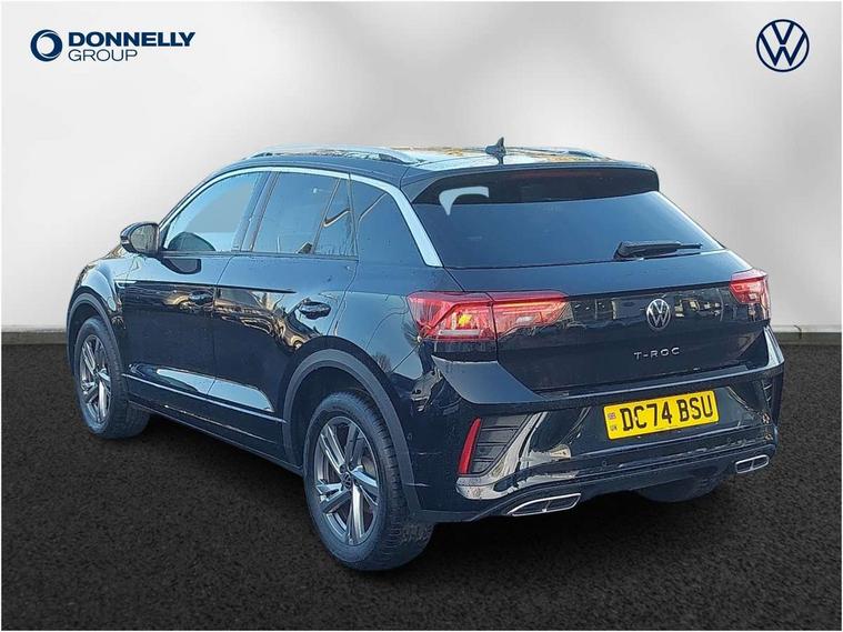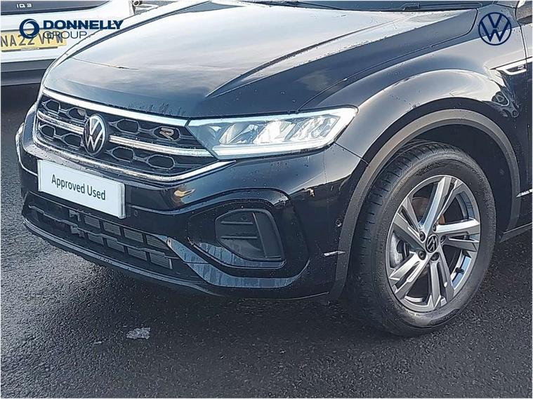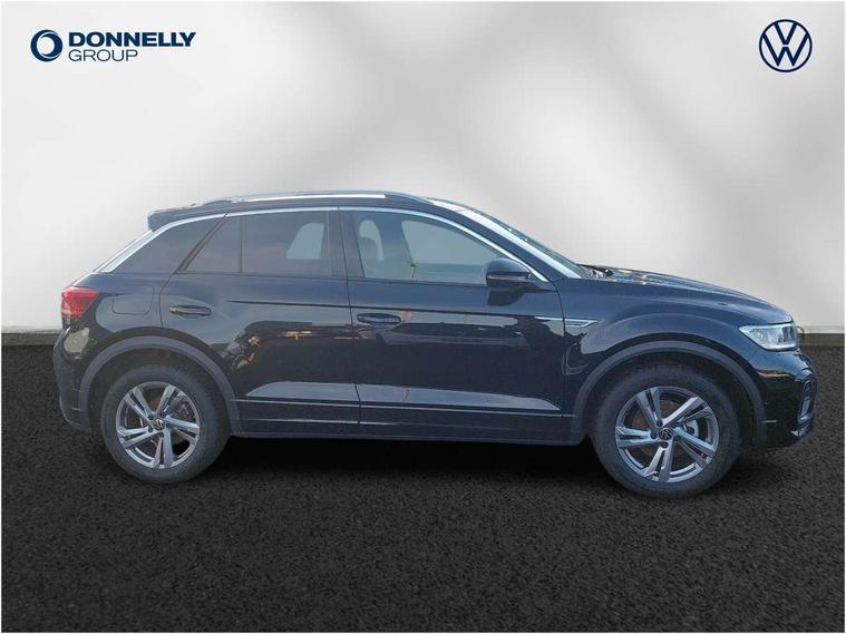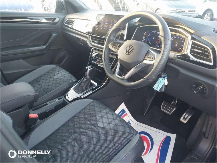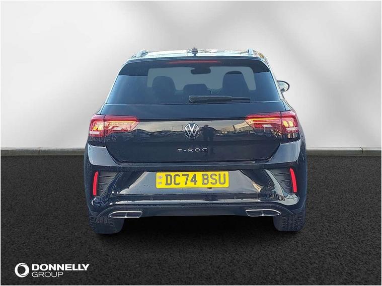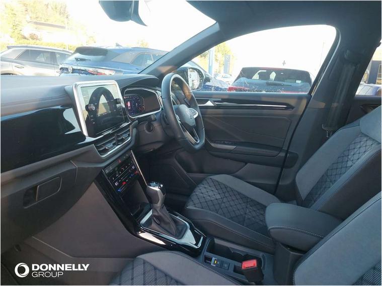 10.25" Digital cockpit pro, Advanced driver attention and drowsiness monitor, Emergency call service, Lane keeping system Lane Assist, Mobile phone interface, Modified key software - reduce switch off time for key status change to Long no motion, Online services, Park assist including front and rear parking sensors, Service interval indicator, Tailgate/trunk lid release from outside, Think blue trainer driver tips and journey analysis, Warning sound and light for front seatbelts unfastened, Wireless app connect, Battery regeneration during braking, Start/stop function with battery regeneration, DAB Digital radio, Diversity antenna for FM reception, Front and rear 6 speakers, Music playback - MP3, WMA and AAC files, Premium USB cable in choice of either Apple or Android smartphone compatibility, SD card slot, Simultaneous pairing of 2 compatible mobile devices, Title and cover art display, We Connect and We Connect Plus functionality, Auto dimming interior rear view mirror, Automatic hazard lights activation under emergency braking, Automatic headlight control with LED separate daytime running lights with coming/leaving home function, Body coloured exterior mirror housings and door handles, Electrically adjustable and heated door mirrors, Extended roof spoiler, Exterior mirrors aspherical on driver side, convex on front passenger side, External USB type C socket and charging sockets, Front windscreen wiper with intermittent wipe and 4 position delay, Heated rear window, LED 3rd brake light, LED rear combination lamps, LED rear number plate lights, Power windows with comfort operation and circuit breaker, Privacy glass for rear side windows and rear window, R-Line design body coloured bumpers, Rain sensor, Rear exhaust tailpipe, Rear fog light on one side and reversing lights on both sides, Rear side wing doors, Rear wash/wipe with intermittent wipe setting, Remote electrically foldable door mirrors, puddle lights and reverse activated passenger's door mirror, 12V power socket in centre console, 3 rear head restraints, 3 seat bench in 2nd row, 4 load lashing points in luggage compartment, Air care climatronic air conditoning system with active combination filter and 2-zone temperature control, Black roof lining, Chrome plated decorative trims, Chrome plated radiator grille inserts, air vent surrounds and light switch surrounds, Door and side trim panel with leatherette insert, Front + rear carpet mats, Front centre armrest, Front cupholders x 2, Front footwell illumination, Front reading light, Front scuff plates with R Line logo, Front seat back storage pockets, Glove compartment door with light, Instrument lighting, white adjustable panel illumination, Interior ambient lighting and surround lighting, Interior light delay, Isofix child seat preparation, Leather gearshift handle, Load-through provision with cup holder when folded down ('Unsplit rear seat bench, split folding backrest, with centre armrest), Luggage compartment lighting, Single front passenger seat, Stainless steel pedals, Storage compartment in left and right luggage area, Storage compartment in rear doors, Storage compartments in driver and front passenger doors, Sunvisors with illuminated vanity mirrors, Variable boot floor, height adjustable and removable, Driver assistance pack without proactive passenger protection - T-Roc, 3 point height adj front seatbelts + pretensioners, 3 point seatbelts in outer rear with ECE label, ABS, Child locks on rear doors, City emergency braking and pedestrian monitoring, Driver and front passenger airbag with front passenger airbag deactivation, Driver and front passenger safety-optimised head restraints, Drivers seatbelt reminder, Electronic parking brake, Electronic Stability Control (ESC) inc EDL (Electronic Differential Lock) and ASR (Traction Control), Front and rear passengers curtain airbag system including front side airbags, Hill start assist, Predictive pedestrian protection, Rear disc brakes, Two tone horn, Tyre pressure loss indicator, Volkswagen roadside assistance, Piano black decorative inserts in dashboard and front door trim panels, Trims for alloy wheels,