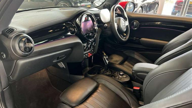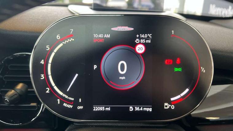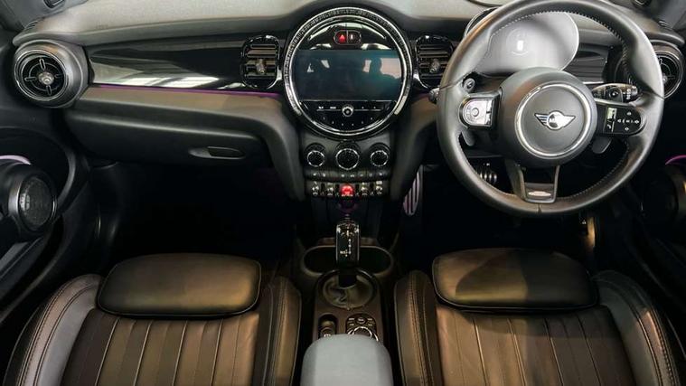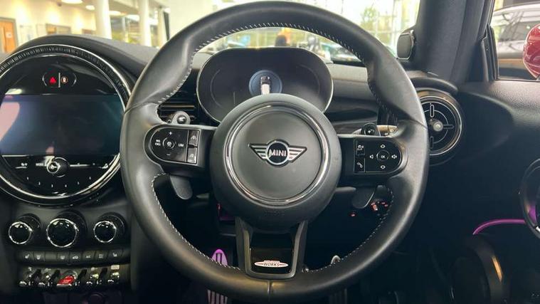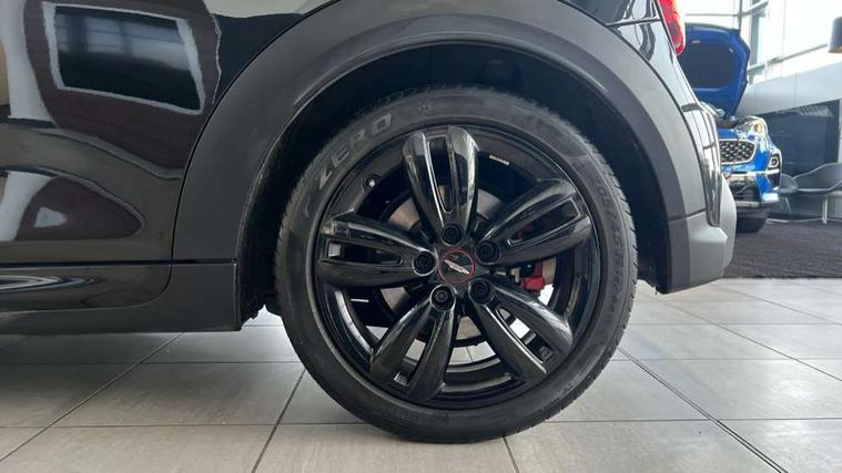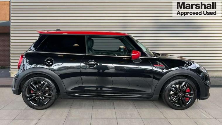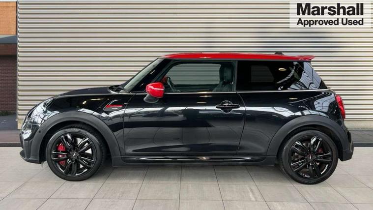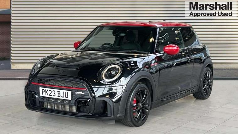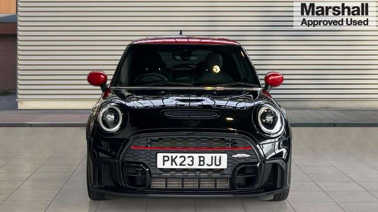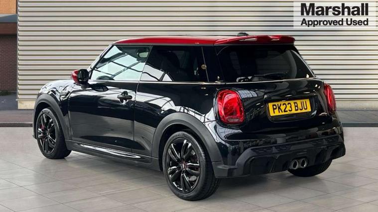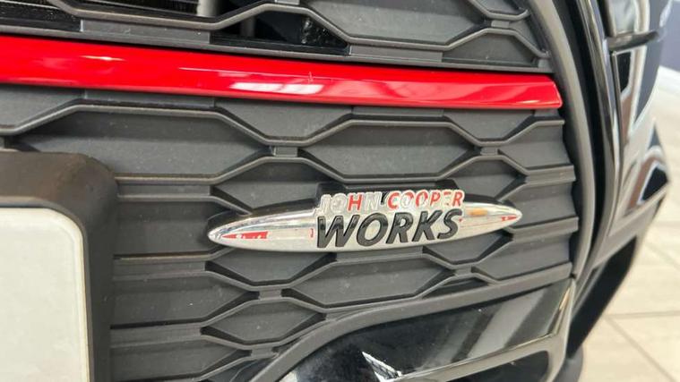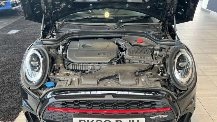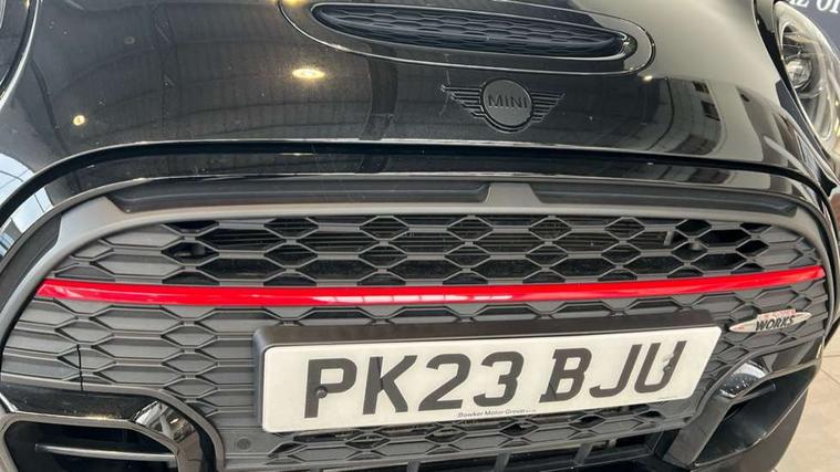 Apple CarPlay, Automatic start/stop function with brake energy recuperation, Compatible mobile phone bluetooth with audio streaming, Cruise control with brake assist, Electro-mechanical speed dependant steering assistance, Flexible car sharing preparation, Instrument cluster, MINI Driving Modes - centre toggle switch to control driving setting (sport, mid and green), Mini E-call, MINI TeleServices, On board computer, Rear park distance control, Service interval indicator, Double Vanos system, Eight speed steptronic sport transmission, with gearshift paddles, Fully variable valve control, High precision injection, Performance Control, 8.8" touchscreen with LED ring, FM tuner and DAB digital radio, 3rd brake light, Automatic headlight activation switch, Bonnet scoop, Dynamic brake lights, Electric front windows, Heated rear window, Heated windscreen washer jets, JCW Aerodynamic kit - Front and rear bumpers with sporty JCW styling and part-painted side sills with MINI John Cooper Works door sill finishers, John Cooper Works logo above an individual grille strut in Chilli Red, John Cooper Works rear spoiler, LED headlight with closed ring and daytime driving lights, Radiator grille piano black border with honeycomb structure in black matt, Rain sensor window wipers, Rear fog lights, Rear LED lights with union jack design, Rear window wiper, Side scuttle panel with integrated indicator, Side scuttle with MINI John Cooper Works logo in black high-gloss with red border, Sun/heat protection glass, Two central exhaust tailpipes with chrome finisher, White indicator lenses, 12V Accessory socket in centre console, 2 seat bench in 2nd row, 4 lashing eyes in luggage compartment, 60/40 split folding rear seat, Anthracite headliner including grab handles and clothes hooks, Carbon black colour line - Knee roll and door armrest, Chrome interior highlights, Cupholders, Front and rear isofix with front passenger airbag deactivation, Front floor mats in velour, Glove compartment, Height and length steering column adjustment, Interior lighting with 12 different colours across the dashboard, underneath door bezel with illuminated laser-engraved design on central display, JCW Sport seats with integrated headrests, adjustable thigh support and John Cooper Works logo, Leatherette gearshift lever and handbrake gaiters, LED reading lights, vanity mirror lights, front foot well light and spotlight on front seats, Manual air conditioning, Mechanical seat adjustment - forward/back & backrest for front seats and driver seat height adjust, Multifunction steering wheel, Passenger seat height adjuster, Rubberised stainless steel pedals, Single front passenger seat, Storage compartments in doors, Storage pocket on back of front seats, Sunvisors with vanity mirrors, Walknappa leather steering wheel with grey seam and John Cooper Works badge on Piano Black lower steering wheel spoke, Navigation pack without Apple Carplay - Mini Hatchback, Piano black exterior pack - JCW, 3 point seatbelts on all four seats, 4-piston fixed-calliper brakes front, 6 Airbags - front, side, head and seat belt tensioners, Anti-lock braking system (ABS), DSC - Dynamic Stability Control, Front and rear disc brakes, Red brake callipers with John Cooper Works logo, Single tone fanfare horn, Tyre pressure monitoring system, Alarm system with tilt sensor, monitoring doors, bonnet interior and tailgate, Electronic vehicle immobiliser, Start/stop toggle with keyless go, Tool kit,