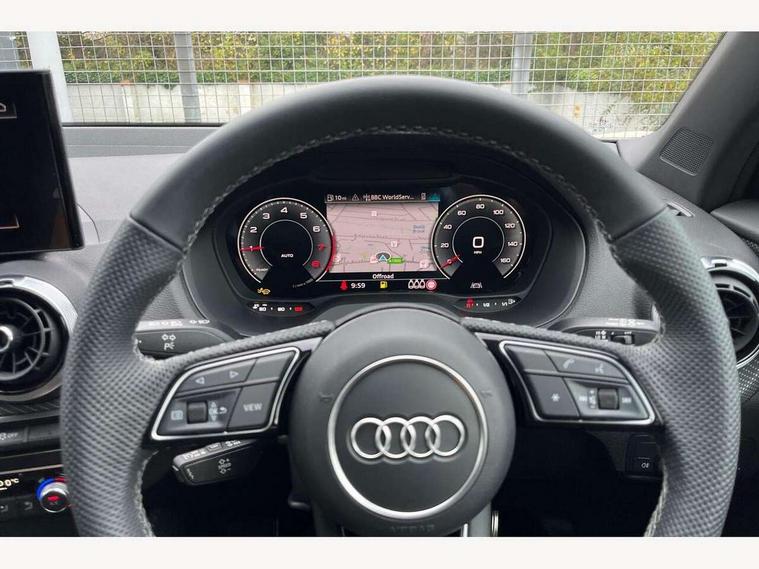 3D map display, Audi connect navigation and infotainment includes innovative services, Audi connect remote and control connects your vehicle to your smartphone, Audi drive select: power steering assistance + engine (modes: comfort, auto, dynamic, individual), Audi smartphone interface - Apple carplay/Android Auto, USB connect, 2xSDXC card readers, voice control for navi, telephone, music and 3rd party apps, Audi virtual cockpit, Automatic start/stop system with recuperation, Bluetooth interface includes bluetooth audio streaming, Camera based traffic sign recognition, Cruise control, Distraction and Fatigue warning, E-call, Jukebox hard drive memory for music (10GB), Lane departure warning, MMI navigation plus with 8.8" touchscreen, Natural voice recognition, Power operated tailgate, Progressive steering, Rear parking sensors, Sport suspension, 6 passive loudspeakers, DAB Digital radio, USB type C port, Audi beam, Auto dimming rear view mirror, Black window trims, Bumper in full body colour paint finish, Electrically adjustable, folding, auto dimming and heated door mirrors with integrated LED side indicators, Front windscreen with grey tinted sunband, LED daytime running lights, LED headlights with dipped beam, high beam, position lights, indicators, LED rear lights, LED third brake light, Privacy glass - dark tinted rear and rear side windows from B-pillar backwards, Rear side wing doors, Rear wiper, Variable front intermittent wipers, Wheel arch trims in manhattan grey, 12V socket in front, 3 seat bench in 2nd row, 3 spoke flat bottomed multi-function leather sport steering wheel, 4-way electric lumbar support for front seats including manual seat height adjustment for both front seats, 60/40 split folding rear seat bench, Black carpets, Black cloth headlining, Front and rear head restraints, Front centre armrest, Front sport seats, Front/rear floor mats, Height/reach adjust steering wheel, Illuminated door sill trims with S logo, ISOFIX child seat mounting in front passenger and rear outer seats, Manual air conditioning, Single front passenger seat, Stainless steel pedals, Black styling pack - Q2, 3x3 point rear seatbelts, 6 airbags - Front, curtain and front side airbags, Electromechanical parking brake, Electronic stabilisation control including ABS, ASR and EDL, Front passenger airbag deactivation, Hill hold assist, Pre-sense front with pedestrian recognition, Seatbelt monitoring, Tyre pressure warning light with visual and acoustic warning, Warning triangle and first aid kit, Anti theft alarm, Anti theft wheel bolts, Electronically operated child locks, Remote central door locking, Aluminium interior element, Black dashboard, Gloss black centre console, Matt brushed aluminium trim inlays, Tool kit,