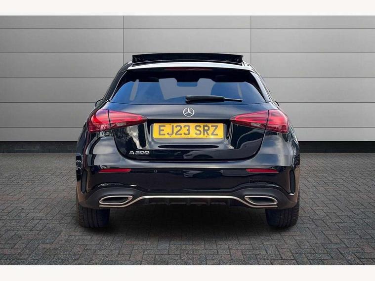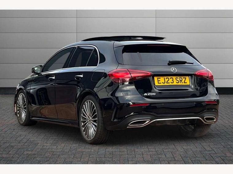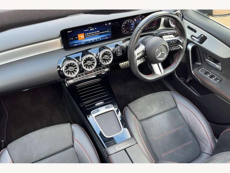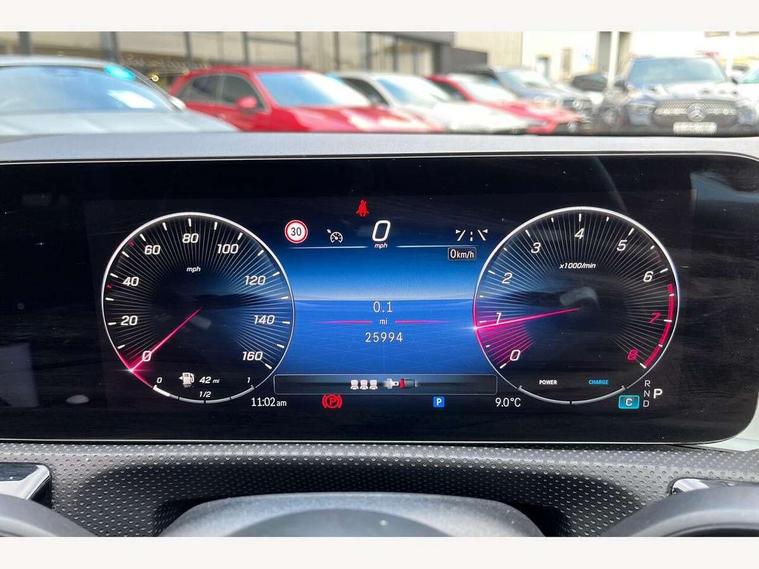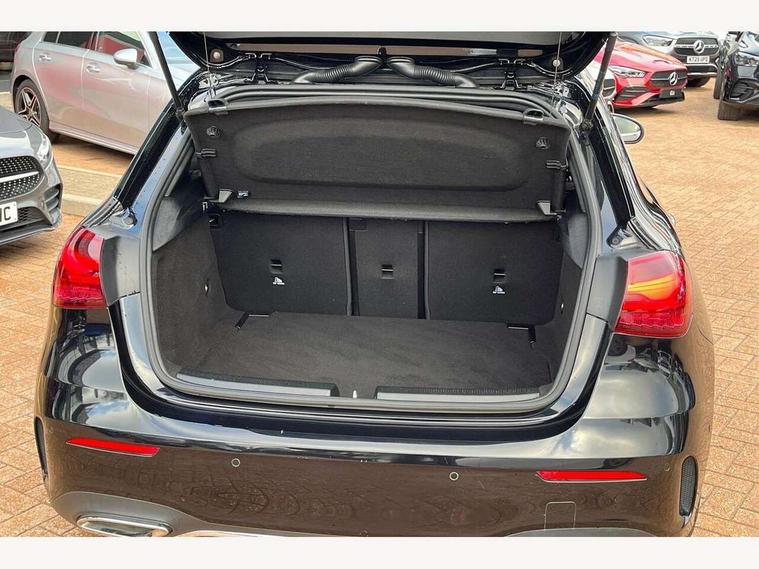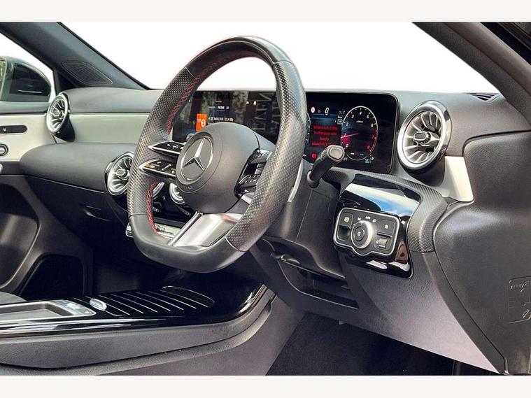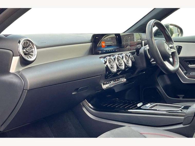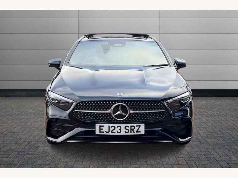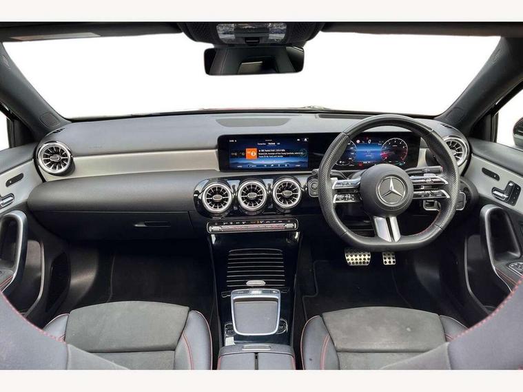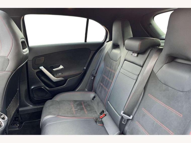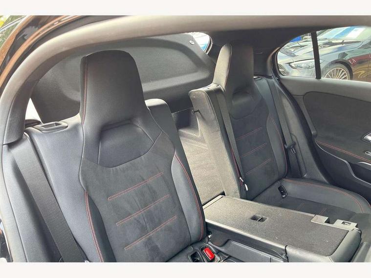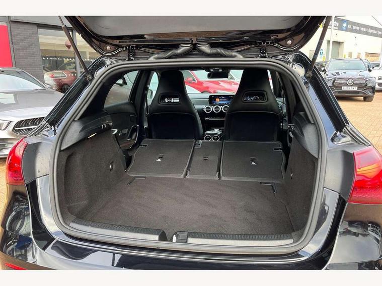 10.25 inch touchscreen central media display, 10.25" Digital instrument cluster display screen, Attention assist, Brake pad wear indicator warning light, Car wash mode, Cruise control + speed limiter, Direct steering, Direction indicators with lane change function, Dual bluetooth interfaces, DYNAMIC SELECT with a choice of driving modes (ECO, Comfort, Sport and Individual), Easy pack tailgate hands-free access, ECO start/stop function, Engine start/stop button, Fluid level warning indicator for fuel, oil, coolant and washer fluid, Hard-disk navigation, Head up Display, Hey Mercedes Voice activation, Lamp failure indicator, MBUX augmented reality for navigation, MBUX Interior assistant, Mercedes me connect including emergency call system, accident recovery, breakdown and maintenance management, Mercedes me remote services, Outside temperature gauge, Owners manual in English, Pre-installation of private car share, Preinstallation for Mercedes Benz link, Remote boot closing, Service indicator (ASSYST), Smartphone integration with Apple CarPlay and Android auto, Speed sensitive power steering, Trip computer in multifunction display with current consumption indicator, Wireless charging, Lowered comfort suspension, DAB Digital radio, MBUX multimedia system, Mercedes Benz advanced sound system (225 W) with 10 speakers, 1 central speaker, speakers on doors, a tweeter on door, one sub woofer + boost amplifier, 4 Electric Front and Rear windows, Adaptive brake lights, AMG body styling - AMG front apron with front splitter and AMG rear apron and visible exhaust tailpipe trim elements, Body colour bumpers, Body colour door handles with chrome inserts, Body colour side skirt, Body coloured door mirrors, Chrome beltline strips, Diamond radiator grille with pins in fine star pattern, Electric adjustable and heated door mirrors with integrated LED side indicators, Exhaust system with 2 visible tailpipe trim elements and rear apron, Headlamp assist automatic headlamp activation, Heat insulating dark tinted rear and rear side windows, Heated glass rear windscreen + timer control, LED daytime running lights, LED High level third brake light, LED tail lamp, Multibeam LED headlamps with adaptive highbeam assist and cornering function, Panoramic sliding sunroof, Privacy glass, Radio aerial, Rain sensing windscreen wipers with two sensitivity settings, Rear fog lights, Rear side wing doors, Rear windscreen wiper, Window line trim strip in chrome, 3 seat bench in 2nd row, 3 Spoke flat bottom leather multi function steering wheel with perforated leather in grip area, 40:20:40 split folding rear seats, AMG floor mats, Automatic child seat recognition sensor, Black air vents with surround in silver chrome, Black roof lining, Brushed stainless steel sports pedals with rubber studs, Electrically adjustable front memory seats including lumbar support and backrest inclination, Front centre armrest with stowage, Front seat backs luggage nets, Galvanished gear shift paddles on steering wheel, Heated front seats, Height/reach adjustable steering column, Illuminated Mercedes Benz lettering front door sills with changeable cover, Interior lighting - 64 colour Ambient lighting, Interior mirror with reading lamps in black and frameless, Rear armrest with 2 cupholders, Seat occupancy sensor for front passenger seat, Single front passenger seat, Sports seats with integrated headrests, Stowage compartment in centre console with retractable cover, Sunvisors with illuminated vanity mirrors, Twin front cupholders, Two zone thermotronic luxury automatic climate control, Light and sight pack - A Class, Mirror package - A Class, Parking pack with 360 degree camera - A Class, Seat comfort pack - A Class, USB pack plus - A Class, 3 rear 3 point seatbelts, ABS with Brake Assist, Active bonnet, Adaptive brake assist with hold function and hill start assist, Black seatbelts, Bonnet with power domes, Childproof locks manually operated for rear doors and electrically operated for rear power windows, Crash responsive emergency lighting, Driver and passenger head and side airbags, Drivers knee airbag, Dual stage driver/passenger airbags, Electronic parking brake, ESP curve dynamic assist, ESP with ASR, Exit warning, Front and rear seatbelt reminder, ISOFIX and top tether child seat fixing points in two outer rear seats, Tyre pressure monitoring system, Warning triangle and first aid kit, Window airbags, Alarm system/interior protection/immobiliser, Guard 360 degree vehicle protection, Keyless entry lock/unlock, Keyless Go, Remote central locking and crash sensor with emergency opening function, Light longitudinal grain aluminium trim, 19" AMG multi-spoke light alloy wheels, aerodynamically optimised, painted in titanium grey with high sheen finish, Summer tyres, Tirefit sealant kit,