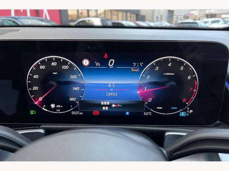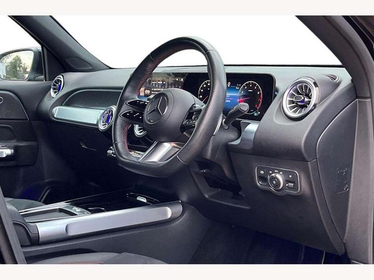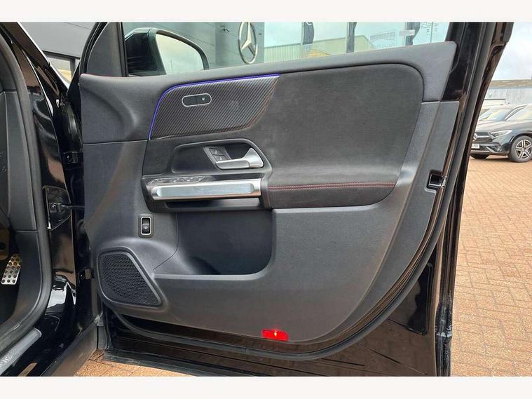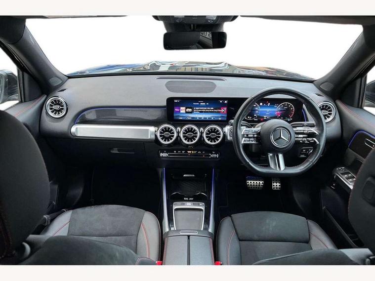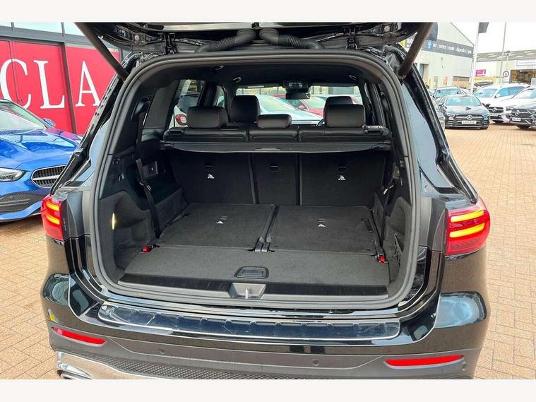 10.25 inch touchscreen central media display, 10.25" Digital instrument cluster display screen, 12 ultrasonic sensors in front and rear bumpers, 180 degree reversing camera with parking guidelines, Assisted parking: reversing backwards into perpendicular and parallel parking spaces, Attention assist - Monitors steering behaviour and long journey fatigue, Bluetooth connection, Brake pad wear indicator warning light, Car wash mode, Convenience opening and closing, Direct steering, DYNAMIC SELECT with a choice of driving modes (ECO, Comfort, Sport and Individual), ECO start/stop function, Engine start/stop button, Fluid level warning indicator for fuel, oil, coolant and washer fluid, Hard disk navigation, Hey Mercedes Voice activation, Lamp failure indicator, Lane keep assist, MBUX navigation premium, Mercedes me connect including emergency call system, accident recovery, breakdown and maintenance management, Mercedes me remote services, Outside temperature gauge, Owners manual and service booklet in English, Pre-installation of private car share, Preinstallation for parking damage notification, Radio aerial integrated into front and rear windshields, Remote boot closing, Service indicator (ASSYST), Smartphone integration with Apple CarPlay and Android auto, Speed limit assist, Tailgate, Trip computer in multifunction display with current consumption indicator, Ultrasound sensors - positioned in the handle of the tailgate, Wireless charging, Comfort suspension with ride height lowering, Rear axle multi-link, 1 USB-C port in the oddments compartment (Charge + Data transfer), 2 USB-C ports for the rear on the centre armrest (Charge only), 2 USB-C ports under the front centre armrest (Charge + Data transfer), DAB digital radio tuner, MBUX multimedia system, Mercedes Benz sound system (100 W) with 6 speakers, Pre installation for Mercedes Benz Link, Adaptive brake lights, Adaptive high beam assist, AMG front apron with front splitter in the colour of the vehicle with chrome trim element, AMG rear apron with visible tailpipe trim and chrome trim element, AMG specific/dual flow exhaust pipes in chrome (non-functional), Auto dimming rear view mirror, Beltline trim and window line trim strip in high gloss aluminium, Black grained side sill trim with chrome inlay, Body coloured door handles, Electric adjustable and heated door mirrors with integrated LED side indicators, Electric folding door mirrors, Front and rear electric windows, Headlamp assist automatic headlamp activation, Heat insulating dark-tinted glass starting from B-pillar, Heated glass rear windscreen + timer control, High level LED third brake light, Interior mirror with black reading lamps and frameless, LED high performance headlamps with integrated LED daytime running lights, LED tail lamp, Polished aluminium roof rails, Radiator grille as a diamond grille with chrome pins and central Mercedes star, Rain sensor windscreen wipers, Rear fog lamp, Rear side wing doors, Rear wiper, Single louvre in matt grey with chrome inserts and black highlights, Two visible tailpipe trim elements exhaust, Ultrasonic sensors - positioned in the front and rear bumpers, Wheel arch liners in the colour of the vehicle, 12V socket in the oddments compartment, 3 seat bench in 2nd row, 3 twin spoke flattened multifunction steering wheel in nappa leather - horizontal twin spoke in high gloss black, vertical twin spoke in silver chrome, 4 way adjustable lumbar support, 40:20:40 split folding rear seats, Air vents with silver chrome surrounds, AMG floor mats, AMG sports pedals with brushed stainless steel surfaces and black rubber studs, Automatic child seat recognition sensor, Black roof lining, Door handles with chrome inserts, Fluorescent jacket, Front and rear headrests, Front centre armrest with stowage, Galvanised steering wheel gearshift paddles in silver chrome, Handle recess lighting, Heated front seats, Height adjustable head restraints, Height/reach adjustable steering column, Interior lighting - 64 colour Ambient lighting, Luggage net on driver/front passenger seat backrest, Single front passenger seat, Sports seats, Stowage compartment with retractable cover, Sun visors with illuminated vanity mirrors, THERMATIC automatic climate control, Third row of seats for two people on rear seat, Twin front cup holders, Two outer rear seat isofix and top tether child seat fixing points, Easy pack tailgate, Interior lighting with light and sight pack - GLB, Seat comfort package - GLB, 3 rear 3 point seatbelts, Active bonnet pedestrain safety measure which detects an impact and raises bonnet by 65mm, Active brake assist includes forward collision warning system with autonomous braking, Adaptive brake assist with hold function and hill start assist, Airbags - kneebag for driver, Anti-lock braking system (ABS) with brake assist, Black seatbelts, Bonnet with power domes, Childproof locks manually operated for rear doors and electrically operated for rear power windows, Crash responsive emergency lighting, Curve dynamic assist, Driver and front passenger head and sidebags, Driver and front passenger windowbags, Dual stage driver and front passenger airbags, Electric parking brake, Electronic stability programme with acceleration skid control, Front and rear seatbelt reminder, Front brake callipers with Mercedes Benz lettering, Front passenger seat occupancy sensor, Perforated front brake discs, Tyre pressure monitoring system, Warning triangle and first aid kit, Guard 360 degree vehicle protection - Anti theft alarm system, tow away protection with visual, acoustic warning and alarm, Interior monitoring system, Keyless Go Access and drive authorisation system, KEYLESS-GO starting function, Remote central locking and crash sensor with emergency opening function, Thatcham category 1 alarm system with immobiliser and interior protection, Vehicle key with KEYLESS GO functionality, Carbon structure trim, 19" AMG 5 twin spoke light alloy wheels aerodynamically optimise