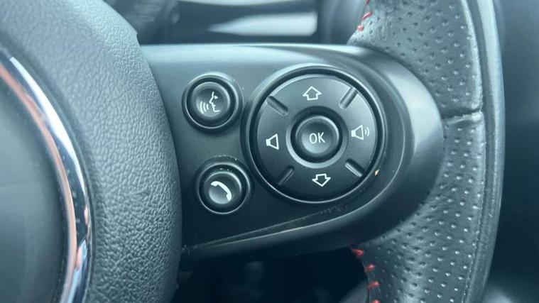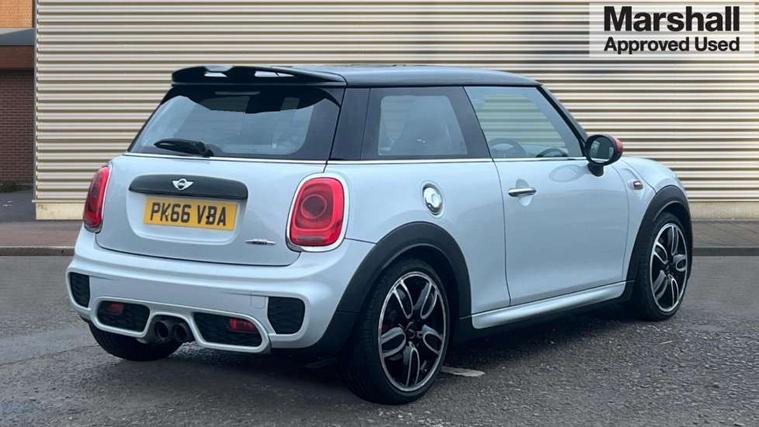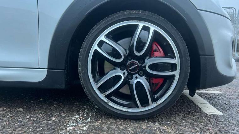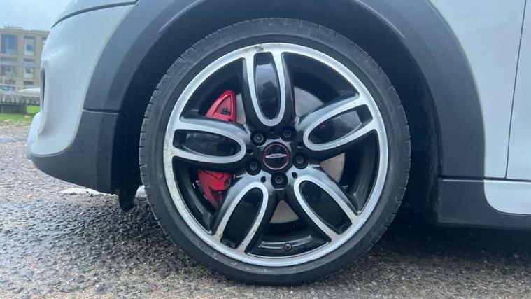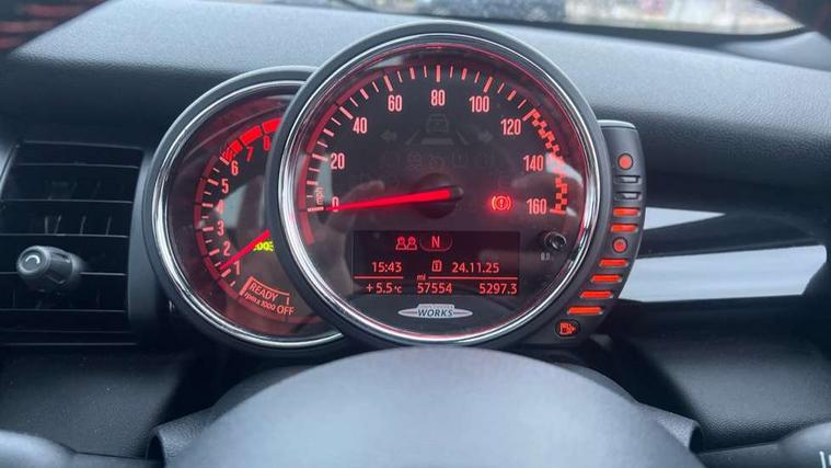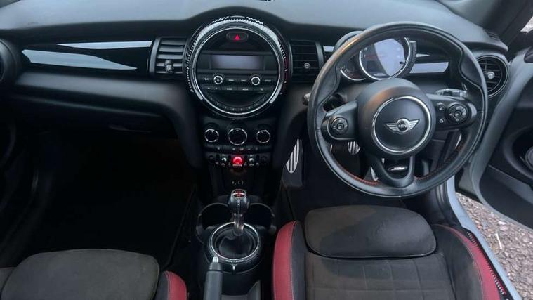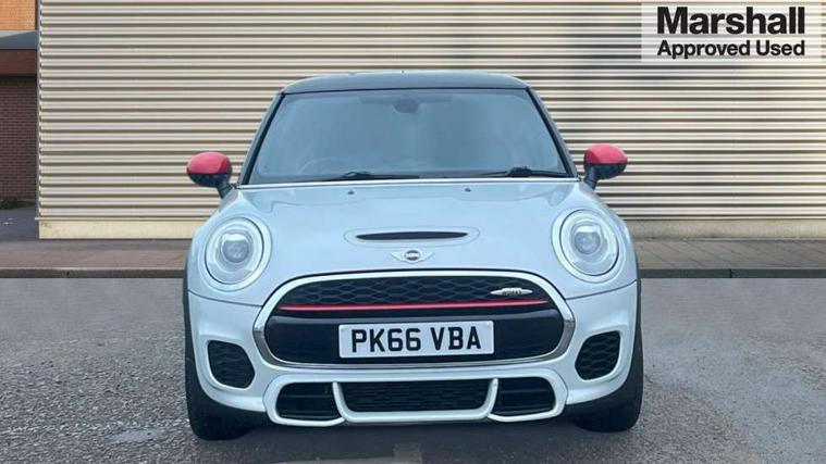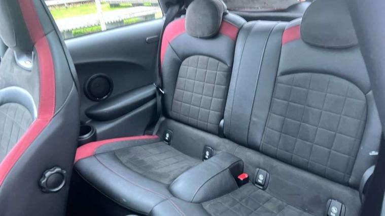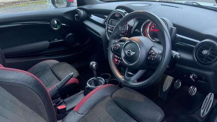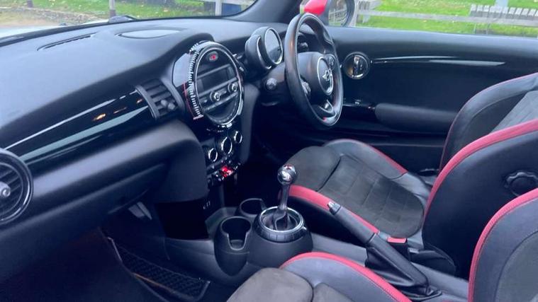 Acoustic seat-belt warning, Brake fluid level warning light, Brake pad wear indicator warning light, DTC - Dynamic traction control, Exterior temperature gauge, Intelligent emergency call, MINI Driving Modes - centre toggle switch to control driving setting (sport, mid and green), MINI TeleServices, Oil level indicator, On board computer, Push button starter, Service interval indicator, Servotronic PAS, Electronic differential lock, Performance Control, Auxiliary input socket, DAB digital radio module, 2 speed wipers+intermittent wipe, Anti dazzle mirror, Anti trapping/one touch open close front windows, Body colour scoop integrated into engine- compartment lid, Body coloured bumpers, Chili red grille bar, Chrome bezels around rear lights and headlights, Chrome door handles, Chrome plated fuel cap, Chrome plated trim on bottom edge of window, Chrome strip on lower grille, Electric front windows, Electrically adjustable door mirrors, Extended wheel arches, Follow me home headlights, Green tinted heat insulating glass, Heated door mirrors/heated windscreen washers, Heated rear window with auto timer, High gloss black tailgate, Honeycomb radiator grille, John Cooper Works roof spoiler, Metal look door sill finishers, Rear apron, Rear wiper, Side scuttles, Twin chromed exhaust pipes, White indicator lights, 2 rear head restraints, 4 boot load lashing points, 6 way manually adjustable passenger seat, 6-way manually adjustable driver's seat, Active carbon filter, Air recirculation system, Anthracite headlining, Auxiliary socket in centre console storage compartment, Centre console storage, Driver's seat height adjuster, Driver/passenger sunvisors, Easy entry seats, Front and rear cupholders, Front head restraints, Front interior light, Front passenger grab handle, Front seat backrest storage nets, Front sports seats, Gear/selector and handbrake in artificial leather, Internal chrome door handles, Isofix child seat preparation, Luggage compartment lighting, Multifunction steering wheel, Passenger seat height adjuster, Reach + rake adjustable steering column, Rear grab handles, Rear storage trays, Split folding rear seats, Storage compartments in doors, Toolkit in luggage compartment, Vanity mirrors, 3 point seatbelts, ABS/EBD, ASC+T, Brake calipers in red, Cornering brake control (CBC), Crash Sensor - activates hazard/interior lighting + unlocks doors, Driver and passenger airbags, Driver/front passenger side airbags, DSC - Dynamic Stability Control, Fuel cut off safety device, Head airbags, Hill start assist, Passenger airbag deactivation system, Seatbelt pretensioners, Tyre pressure warning, Ventilated front disc brakes, Drive away door locking, Locking wheel bolts, Remote central locking/doors+fuel cap+tailgate, Second remote key, Thatcham category 1 alarm + immobiliser,