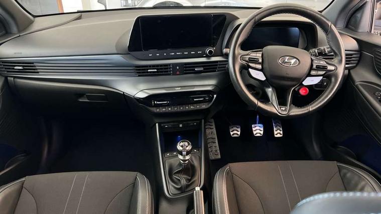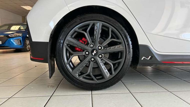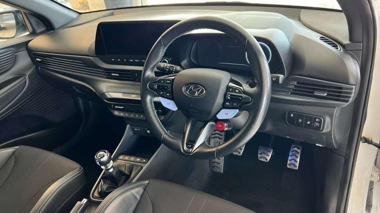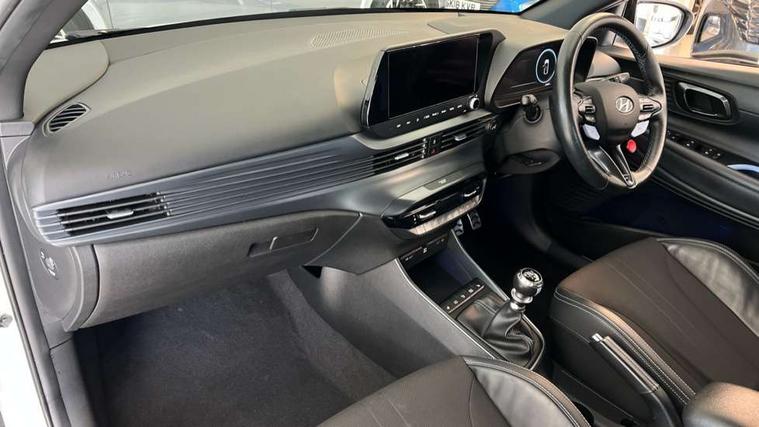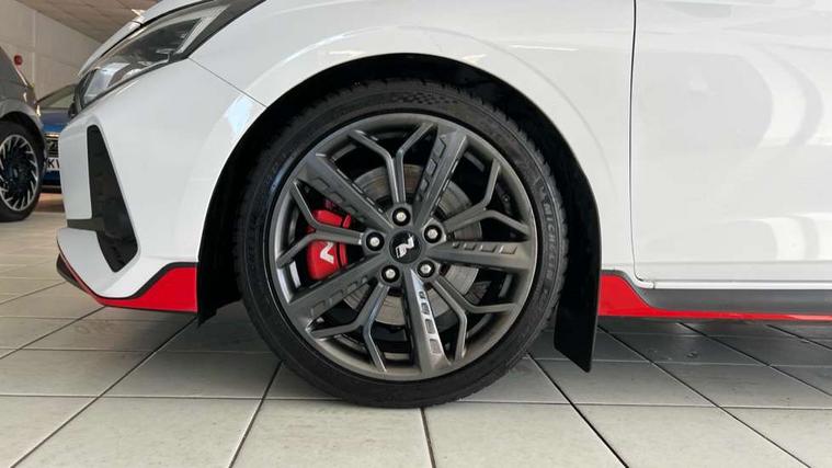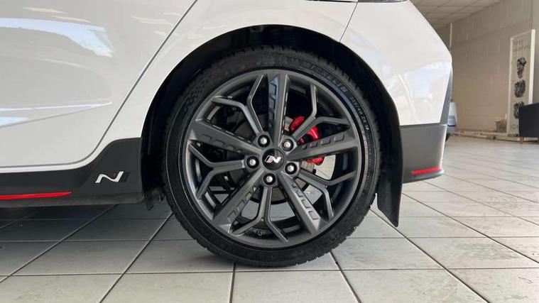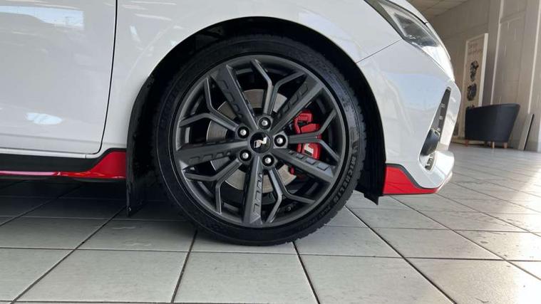 10.25" digital supervision cluster, 10.25" touchscreen centre console display satellite navigation including traffic messaging channel, map care and live services, Apple car play/Android Auto, Bluetooth connectivity with voice recognition, Cruise control + speed limiter, Drive mode selector, Driver alert system, eCall emergency call system, Electric power steering, Emergency stop signalling system, Forward collision assist with pedestrian monitoring and cycle detection, Haptic steering, Intelligent speed limit warning, ISG - automatic start/stop, Lane departure warning system, Lane keep assist, N corner carving differential - mechanical limited slip differential, N custom mode, N grin control system, N Rev matching system, Rear parking sensor, Rear view camera with dynamic limitation singnalling, Trip computer, Wireless charging pad, Launch control, Vehicle Stability Control (VSC), Auxiliary input socket, DAB Digital radio, Steering wheel mounted audio/telephone controls, USB connection, Adjustable intermittent front windscreen wipers with aero wiper blade, Auto dimming rear view mirror, Automatic defog system for front windscreen, Automatic headlights with dusk sensor, Automatic windscreen wipers with rain sensor, Black radiator grille with integrated N logo, Black window surrounds, Body colour exterior door handles, Drivers one touch up/down with anti-trap, Electric adjustable heated door mirrors, Electric folding door mirrors, Electric front windows, Electric rear windows, Front fog lights, Gloss black door mirrors with integrated indicators, High beam assist, LED rear combination lights, MFR - LED headlights, Privacy glass - Rear windows and tailgate, Rear apron with integrated diffuser and red accents, Rear fog lights with N exclusive triangular lamp, Rear roof spoiler with integrated LED brake light, Rear side wing doors, Rear Windscreen Wiper - Intermittent Function, Shark fin antenna, Side skirts with red accents, Signature LED daytime running lights integrated into headlamp, Static Cornering lights, Tinted windows, 12v power outlet - front, 3 seat bench in 2nd row, 60/40 split folding rear seat, Adjustable head restraints, Aluminium sports pedals, Black roof liner, Blue interior mood lighting, Climate control, Driver/passenger sunvisors and illuminated vanity mirrors, Front armrest with storage box, Front map reading lights, Heated front seats, Heated steering wheel, Height adjustable driver's seat, Height/reach adjustable steering column, Isofix rear child seat preparation, Leather wrapped gear knob with N logo, Leather wrapped steering wheel with N logo, Luggage board, Luggage compartment lighting, Map pocket in rear seats, N sport seats in fabric/leather upholstery with performance blue stich detail, Parcel shelf, Satin chrome interior door handles, Single front passenger seat, Sound generator with variable silencer control, 3x3 point rear seatbelts, Anti-lock brake system (ABS), Autonomous emergency braking, Childproof rear door locks, Curtain airbags, Driver/Front Passenger airbags, ESP, Fasten seatbelt reminder, Front seatbelt pretensioners, Front side airbags, Height adjustable front seatbelts, Hill start assist control (HAC), Impact sensing auto door unlocking, Manual handbrake, N performance braking system with red calipers and N logo, Passenger airbag deactivate switch, Tyre pressure monitoring system, Deadlocks, Immobiliser, Locking wheel nuts, Perimeter alarm, Rear occupant alert, Remote central locking, Smart key with keyless entry and engine start/stop button, Speed sensitive auto door locking, Black N exclusive interior trim, 18" Matt grey light alloy wheels, Pirelli P-Zero tyres, Tyre repair kit,