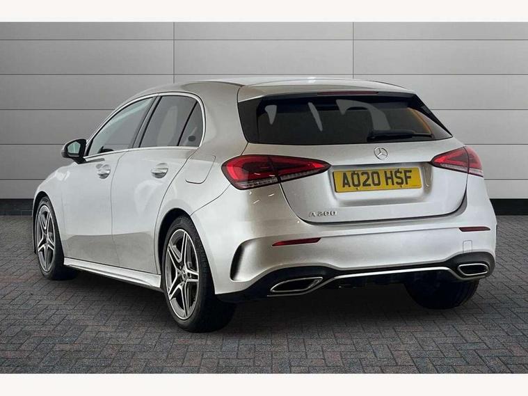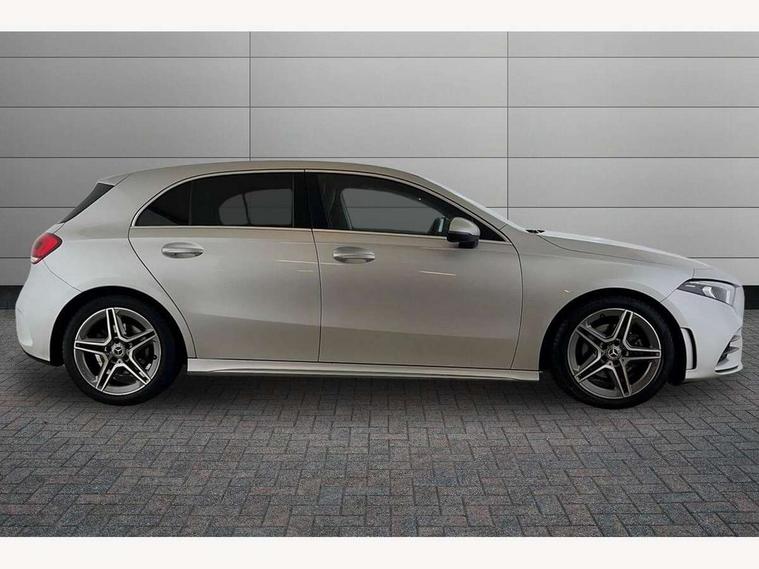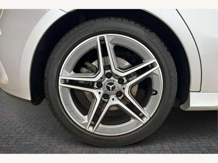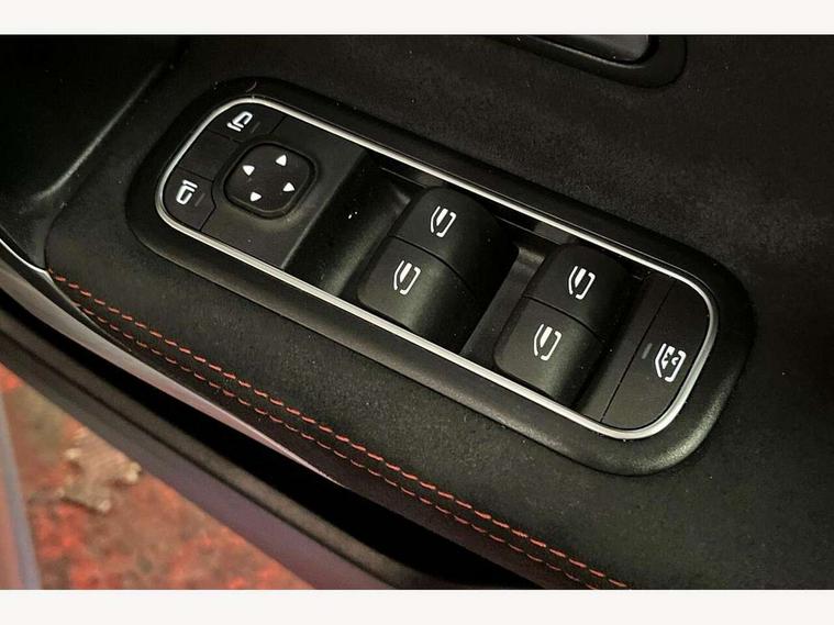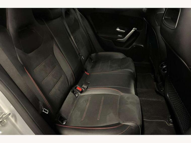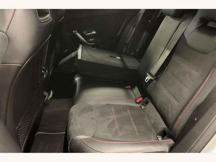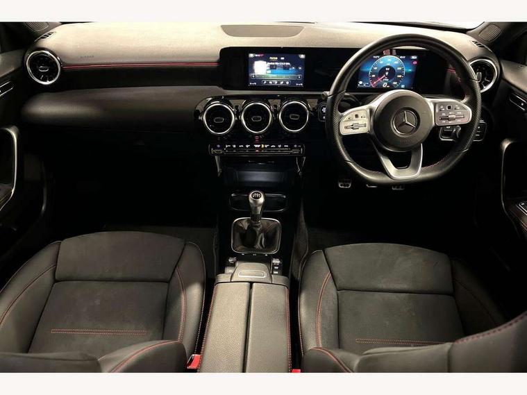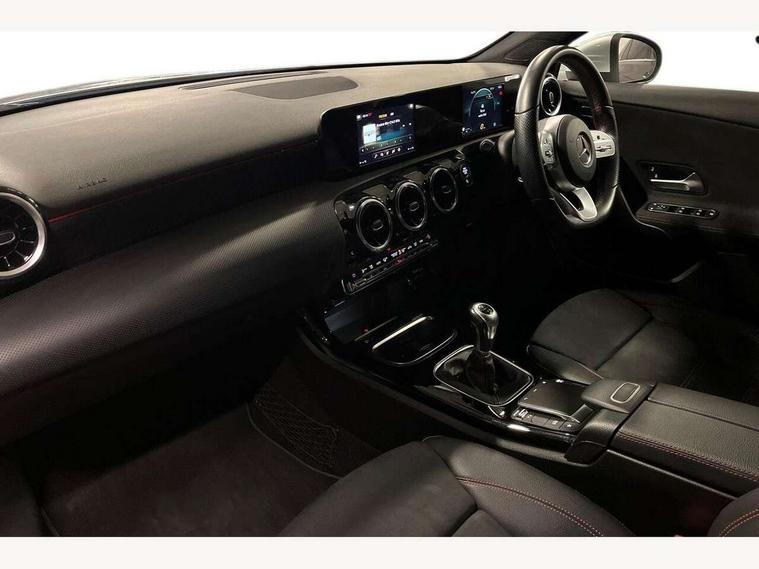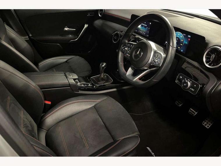180 degree rear view camera with parking guidelines, 7" colour screen in instrument panel, 7" touchscreen media display, Active lane keep assist, Attention assist, Brake pad wear indicator warning light, Cruise control + speed limiter, Direct steering, Dual bluetooth interfaces, DYNAMIC SELECT with a choice of driving modes (ECO, Comfort, Sport and Individual), ECO start/stop function, Fluid level warning indicator for fuel, oil, coolant and washer fluid, Hard-disk navigation, Hey Mercedes Voice activation, Lamp failure indicator, Mercedes me connect including emergency call system, accident recovery, breakdown and maintenance management, Outside temperature gauge, Owners manual in English, Pre-installation for private car sharing, Pre-installation for Vehicle Monitoring, Pre-installation for Vehicle Setup, Preinstallation for Mercedes Benz link, Service indicator (ASSYST), Speed sensitive power steering, Trip computer, Lowered comfort suspension, Rear axle multi-link, 2 USB ports (type C) in rear stowage compartment and one in front of center console, 6 speakers, DAB Digital radio, MBUX multimedia system with DAB digital radio and touchpad including satellite navigation, Mercedes-Benz sound system - 100W, 4 Electric Front and Rear windows, Adaptive brake lights, AMG bodystyling - Front apron with splitter in chrome, rear apron with chrome trim and chrome visible trim elements in tailpipe, Black weather strip, Body colour bumpers, Body colour door handles, Body colour side skirt, Body coloured door mirrors, Chrome beltline trim, Diamond radiator grille with chrome pins and silver louvre + chrome insert, Electric adjustable and heated door mirrors with integrated LED side indicators, Exhaust system - Twin visible tailpipes in polished stainless steel, Headlamp assist automatic headlamp activation, Heated glass rear windscreen + timer control, LED high performance headlamps with integrated LED daytime running lights, LED tail lamp, LED third brake light, Privacy glass, Radio aerial, Rain sensing windscreen wipers with two sensitivity settings, Rear fog lights, Rear wiper, Window line trim strip in chrome, 3 Spoke flat bottom leather multi function steering wheel with perforated leather in grip area, 40:20:40 split folding rear seats, Artico man-made leather/Microfibre Dinamica upholstery with red contrast stitching, Auto Mercedes-Benz child seat recognition sensor, Black air vents with surround in silver chrome, Black roof lining, Brushed stainless steel sports pedals with rubber studs, Controller on centre console with chrome surround, Floor mats with stitched edging and AMG lettering, Front centre armrest with storage compartment, Front door sills with Mercedes Benz lettering, Front seat backs luggage nets, Front seat cushion length adjustment, Heated front seats, Height/reach adjustable steering column, Manual height adjustable front seats, Rear head restraints, Seat occupancy sensor for front passenger seat, Spectacles compartment for driver, Sports seats with integrated headrests, Sunvisors with illuminated vanity mirrors, Touchpad on center console, Twin front cupholders, Two zone thermotronic luxury automatic climate control, Light and sight pack - A Class, Seat comfort pack - A Class, 3 rear 3 point seatbelts, ABS with Brake Assist, Active bonnet, Active brake assist includes forward collision warning system with autonomous braking, Adaptive brake assist with hold function and hill start assist, Black seatbelts, Childproof locks manually operated for rear doors and electrically operated for rear power windows, Crash responsive emergency lighting, Driver and passenger head and side airbags, Drivers knee airbag, Dual stage driver/passenger airbags, Electronic parking brake, ESP curve dynamic assist, ESP with ASR, Front and rear seatbelt reminder, Front brake callipers with Mercedes Benz lettering, ISOFIX and top tether child seat fixing points in two outer rear seats, Tyre pressure monitoring system, Warning triangle and first aid kit, Window airbags, Alarm system/interior protection/immobiliser, Keyless Go, Remote central locking and crash sensor with emergency opening function, Dinamica microfibre trim in black, 18" AMG 5 twin spoke light alloy wheels in titanium grey with highsheen finish, Summer tyres, Tirefit sealant kit,