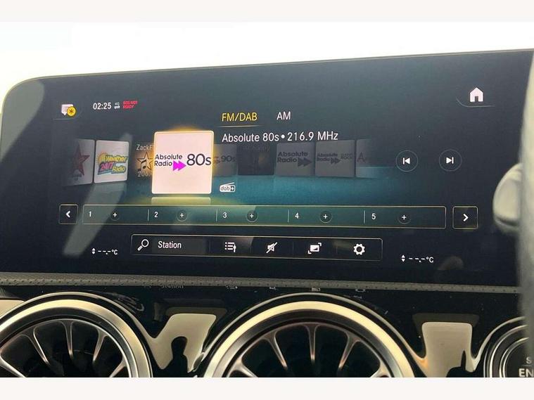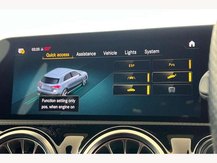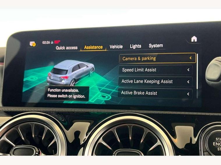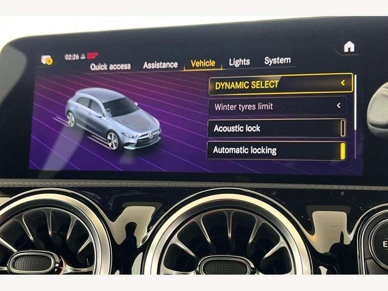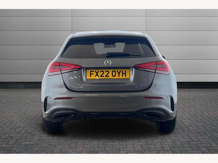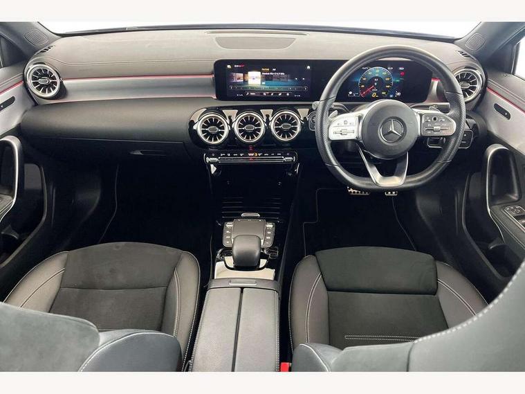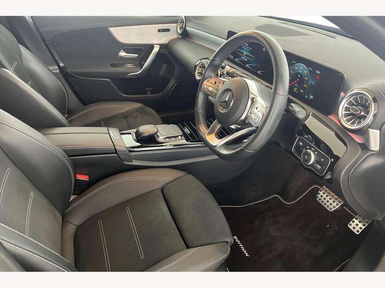10.25" media display, 180 degree rear view camera with parking guidelines, 7" colour screen in instrument panel, Active parking assist with visual and audible warning of detected obstacles, Attention assist, Brake pad wear indicator warning light, Car wash mode, Cruise control + speed limiter, Direct steering, Dual bluetooth interfaces, DYNAMIC SELECT with a choice of driving modes (ECO, Comfort, Sport and Individual), ECO start/stop function, Fluid level warning indicator for fuel, oil, coolant and washer fluid, Hard-disk navigation, Hey Mercedes Voice activation, Lamp failure indicator, Lane keeping system, Mercedes me connect including emergency call system, accident recovery, breakdown management and maintenance, Mercedes me remote services, Outside temperature gauge, Owners manual in English, Pre-installation for car sharing, Preinstallation for Mercedes Benz link, Service indicator (ASSYST), Smartphone integration with Apple CarPlay and Android auto, Speed sensitive power steering, Trip computer, Ultrasonic sensors positioned in the front and rear bumpers, Lowered comfort suspension, Rear axle torsion beam, 2 USB ports (type C) in rear stowage compartment and one in front of center console, 6 speakers, DAB Digital radio, MBUX multimedia system with DAB digital radio and touchpad including satellite navigation, Mercedes-Benz sound system - 100W, 4 Electric Front and Rear windows, Adaptive brake lights, AMG bodystyling - Front apron with splitter in chrome, rear apron with chrome trim and chrome visible trim elements in tailpipe, Automatic headlights, Black weather strip, Body colour bumpers, Body colour door handles, Body colour side skirt, Body coloured door mirrors, Electric adjustable and heated door mirrors with integrated LED side indicators, Exclusive diamond radiator grille, Exhaust system - Twin visible tailpipes in polished stainless steel, Headlamp assist automatic headlamp activation, Heated glass rear windscreen + timer control, High gloss black beltline, LED High level third brake light, LED high performance headlamps with integrated LED daytime running lights, LED tail lamp, Privacy glass, Radio aerial, Rain sensing windscreen wipers with two sensitivity settings, Rear fog lights, Rear side wing doors, Rear wiper, Window line trim strip in high gloss black, 3 seat bench in 2nd row, 3 Spoke flat bottom leather multi function steering wheel with perforated leather in grip area, 40:20:40 split folding rear seats, Artico man-made leather/Microfibre Dinamica upholstery with contrast stitching in light grey, Auto Mercedes-Benz child seat recognition sensor, Black air vents with surround in silver chrome, Black roof lining, Brushed stainless steel sports pedals with rubber studs, Controller on centre console with chrome surround, Floor mats with black top stitching and embroidered edition logo and piping in light grey, Front centre armrest with storage compartment, Front door sills with Mercedes Benz lettering, Front seat backs luggage nets, Front seat cushion length adjustment, Galvanished gear shift paddles on steering wheel, Heated front seats, Height/reach adjustable steering column, Interior lighting - 64 colour Ambient lighting, Interior mirror with reading lamps in black and frameless, ISOFIX and top tether child seat fixing points in two outer rear seats, Manual height adjustable front seats, Rear head restraints, Seat occupancy sensor for front passenger seat, Single front passenger seat, Sports seats with integrated headrests, Stowage compartment in centre console with retractable cover, Sunvisors with illuminated vanity mirrors, Touchpad on center console, Twin front cupholders, Two zone thermotronic luxury automatic climate control, Light and sight pack - A Class, Mirror package - A Class, Night pack - A Class Saloon/Hatchback, Seat comfort pack - A Class, 3 rear 3 point seatbelts, ABS with Brake Assist, Active bonnet, Active brake assist includes forward collision warning system with autonomous braking, Adaptive brake assist with hold function and hill start assist, Black seatbelts, Childproof locks manually operated for rear doors and electrically operated for rear power windows, Crash responsive emergency lighting, Driver and passenger head and side airbags, Drivers knee airbag, Dual stage driver/passenger airbags, Electronic parking brake, ESP curve dynamic assist, ESP with ASR, Front and rear seatbelt reminder, Front brake callipers with Mercedes Benz lettering, Tyre pressure monitoring system, Warning triangle and first aid kit, Window airbags, Alarm system/interior protection/immobiliser, Keyless Go, Remote central locking and crash sensor with emergency opening function, Urban guard vehicle protection system with immobiliser and interior protection, Matrix look light longitudinal grain aluminium trim element, 18" AMG 5 twin spoke light alloy wheels aerodynamically optimised painted in black with highsheen finish, Summer tyres, Tirefit sealant kit,