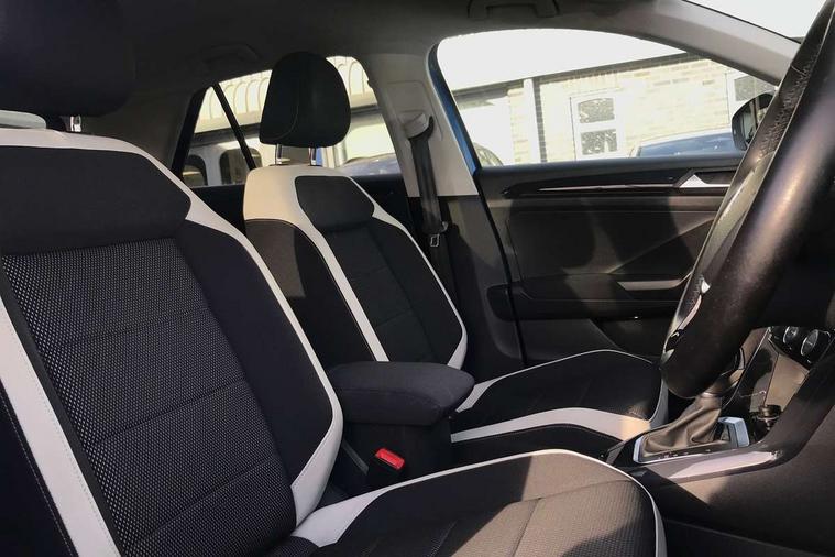 App-Connect, 2 USB connection charging sockets, Active Info Display, 10.3" high resolution TFT dash display screen with customised information, Adaptive cruise control, Automatic start/stop system, Bluetooth telephone and audio connection for compatible devices, Car information display, Car-Net Security and Service, Discover navigation, 8" touch screen navigation/infotainment system with Car-Net, European map, CD/radio, 2D/3D map and speed limiter, Driver alert system with audible and visual fatigue detection system, Driver profile selection, Dusk sensor, Front assist, radar sensor controlled distance monitor, city emergency braking + predictive pedestrian protection, Lane assist, Multifunction computer with visual gear change recommendation for fuel consumption, Power assisted speed sensitive steering, Service interval indicator, Think blue trainer driver tips and journey analysis, Voice activation, Warning sound and light for doors and tailgate open, Warning sound and light for front seatbelts unfastened, Battery regeneration during braking, Bluetooth - Simultaneous pairing of 2 compatible mobile devices, DAB Digital radio, Dynamic navigation based on TMC+, Multi device interface (MDI) with USB connection, Music playback - MP3, WMA and AAC files, Premium USB cable in choice of either Apple or Android smartphone compatibility, SD card slot, SMS functionality - read, compose and send SMS messages using touch-screen display, Three route options - Fast, Short, Eco, Title and cover art display, Auto dimming interior rear view mirror, Automatic hazard lights activation under emergency braking, Black grained lower door protectors, Black grained wheel arches, Body colour bumpers with silver metallic underbody fascia, Body colour door handles, Chrome effect left and right trapezoid exhaust tailpipe fascia surround, Chrome trim on upper and lower radiator grille, Door mirror integrated indicators, Electrically foldable, adjustable and heated door mirrors with puddle lights and reverse activated kerb-view adjustment on passenger's door mirror, Front and rear electric windows, Front fog lights with static cornering function, Front windscreen wiper with intermittent wipe and 4 position delay, Fully galvanised body, Heated rear window, High level 3rd brake light, LED darkened rear light clusters, LED rear number plate lights, Manual coming/automatic leaving home lighting function, Rain sensor, Rear tinted glass from B-pillar backwards approx 65% tinted, Rear windscreen washer and wiper with interval delay, 12V socket in centre console storage area, 2 LED front and rear reading lights, 3 rear head restraints, 4 load lashing points in luggage compartment, Ambient lighting in front footwell and light strips below trim in front doors, Climate control - 2 zone electronic air conditioning with automatic air recirculation and allergy filter, Drawer under drivers seat, Front centre armrest with storage compartment, longitudinal and height adjustable and two rear air vents, Front cupholders x 2, Front footwell illumination, Front seat back storage pockets, Glovebox, Height adjustable front seats, Height/reach adjust steering wheel, Illuminated vanity mirrors, Instrument lighting, white adjustable panel illumination, Interior light delay, Isofix easy fit child seat preparation for 2 outer rear seats, Load through provision with single cup holder when folded down, Luggage compartment cover, removable, Luggage compartment lighting, Split folding rear seat backrests with centre armrest, Storage compartment in left and right luggage area, Storage compartment in rear doors, Storage compartments in driver and front passenger doors, 3 rear three point seatbelts, ABS, Driver and front passenger safety-optimised head restraints, Electronic parking brake with auto hold, ESC with EDL, ASR, EDTC and trailer stabilisation function, Front and rear curtain airbags, driver and front passenger airbags with passenger deactivation switch and front side impact airbags, Rigid safety cell with front and rear crumple zones, Three point height adjust front seatbelts + pretensioners, Tyre pressure loss indicator, Ventilated front and rear disc brakes, Volkswagen roadside assistance, Alarm with remote central locking and interior protection, Electronic engine immobiliser, Remote central locking with 2 remote folding keys, Caribou grey decorative inserts in dash and door panel, Steel space saver spare wheel,
