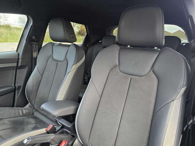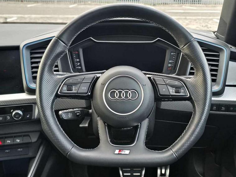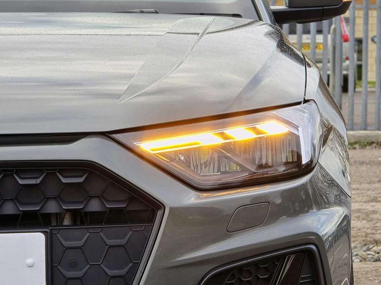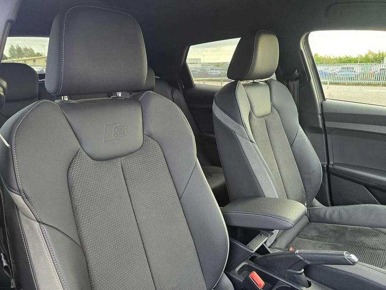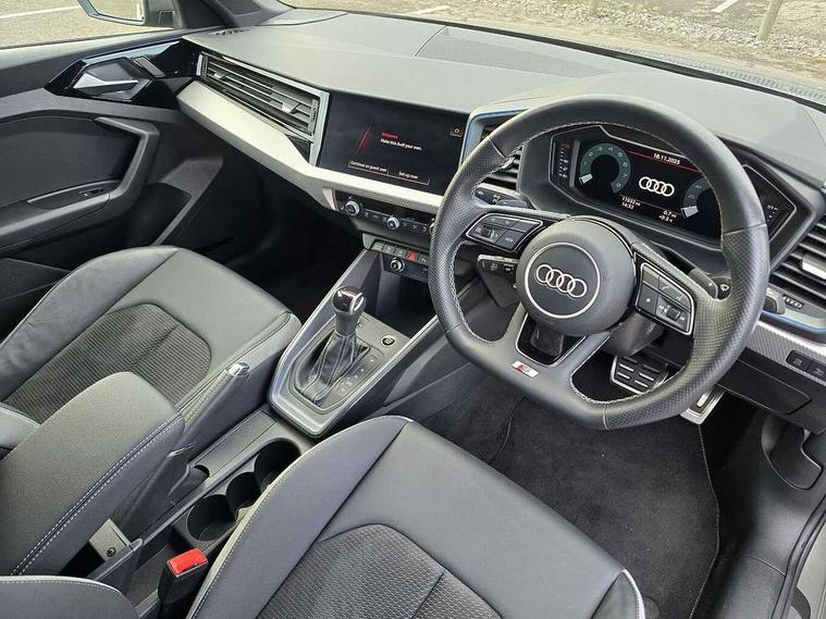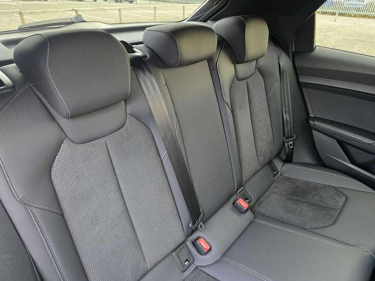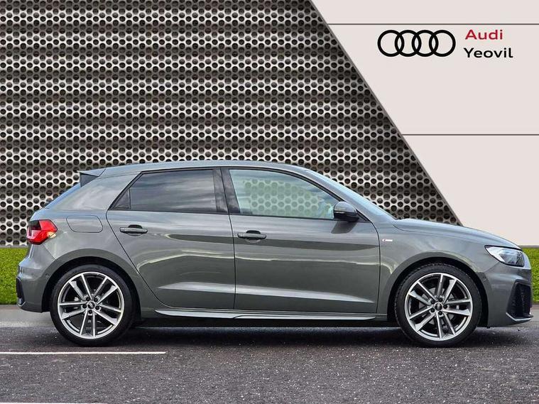 Adaptive speed assist, Audi connect safety emergency and service including E-call, Audi drive select - power steering assistance + engine + gear shift 3 preset modes (auto, dynamic, efficiency and an Individual mode), Automatic start/stop system, Bluetooth interface, Cruise control, Driver's information system, Electromechanical power steering, Emergency services call system, Lane departure warning system, Service interval indicator, Speed limiter, Voice control system, Washer fluid level indicator, Sports suspension, 1 x SDXC card reader, 2 x USB type C connection points, DAB Digital radio, Auto dimming rear view mirror, Black Audi rings and black badging (with model name in black, no engine badging), Body coloured door mirrors, Door sill trims with aluminium inlays and logo, Electric front and rear windows, Electrically adjustable, heated, folding door mirrors with integrated LED side indicator, Front side air inlets in grained matt black and C frame in titanium black, Front wing badges, Heat insulating glass windscreen and side windows, Heated rear windscreen, High level LED brake light, LED headlights with LED rear lights + dynamic rear indicators + headlight adjustment and high beam, turning light + LED daytime running lights, Radiator grille and rear diffuser in matt titanium black, Radiator protective grille frame in matt aluminium silver, Rain and light sensors, Rear fog lights, Rear side wing doors, Rear wing door, Rear wiper, Side front spoiler lips in grained matt black, 12V socket in centre console with two cup holders, 3 rear seats with headrests, 3 seat bench in 2nd row, 3 spoke flat bottomed multi-function plus leather steering wheel with S badging, grips in preforated leather, contrast stitching and paddle shift, 40:60 Split folding rear seat or folded fully, Black cloth headlining, Driver and passenger seat with manual height adjust with forward and backwards adjustment, Frequency alcantara/leatherette upholstery and S embossed logo + front sports seats, Front and rear black floor mats with contrast stitching in fine silver, Front head restraints, Front passenger seat, Height and reach adjustable steering wheel, ISOFIX child seat mounting for front passenger and outer rear seats including top tether attachment point of outer rear seats, Leather gear knob with aluminium trim, Luggage compartment light with front and rear reading lights, Manually adjustable lumbar support in front seats, Stainless steel pedals, Black exterior styling pack - A1 Sportback Vorsprung, Comfort and sound pack - A1 Sportback, Luggage compartment pack - A1, Multicoloured LED Ambient lighting pack - A1 Sportback, Plus pack - A1 Sportback, Technology pack - A1 Sportback, 3x3 point rear seatbelts, Audi pre-sense front with pedestrain and cyclist recognition, Brake assist function, Driver and front passenger airbag with front side and head airbags, Electronic Stability Control including ABS, EBD, ASR and EDL, Front passenger airbag deactivation switch, Hill hold assist, Manual rear child locks, Seatbelt height adjustment for front seats, Seatbelt monitoring, Tyre pressure warning light, Warning triangle and first aid kit, Advanced key, Anti theft alarm, Anti theft wheel bolts and loose wheel warning, Immobiliser, Remote central locking with 2 foldaway keys, Aluminium trim for control switches, air vents and digital instrument cluster, Silver grey inlays polygon structure in diamond paint finish, Structured grey accent areas including air vents, door handle recesses and centre console in quartz paint finish, 18" 5 double arm design alloy wheels in matt titanium look with diamond cut finish,