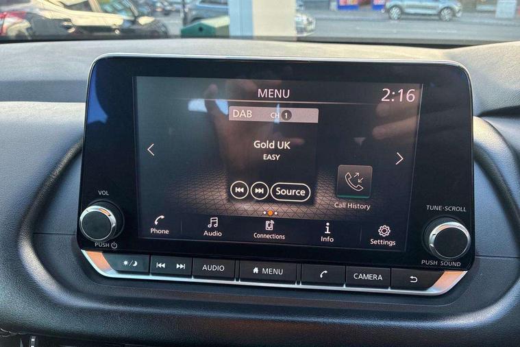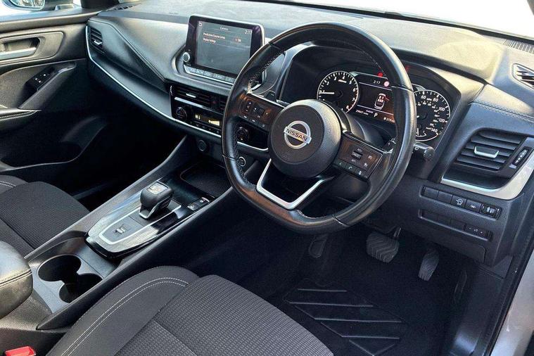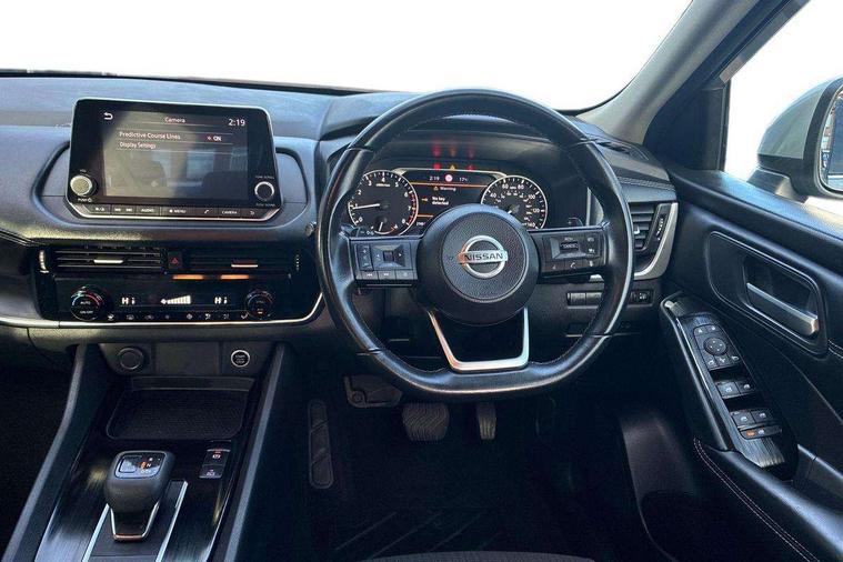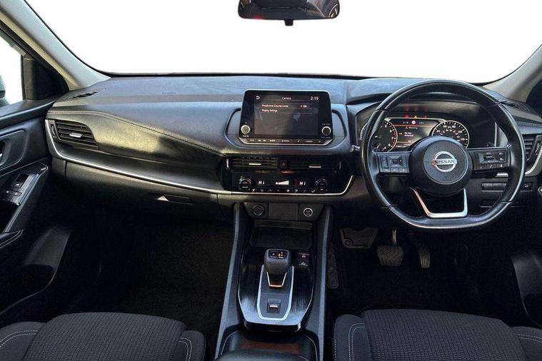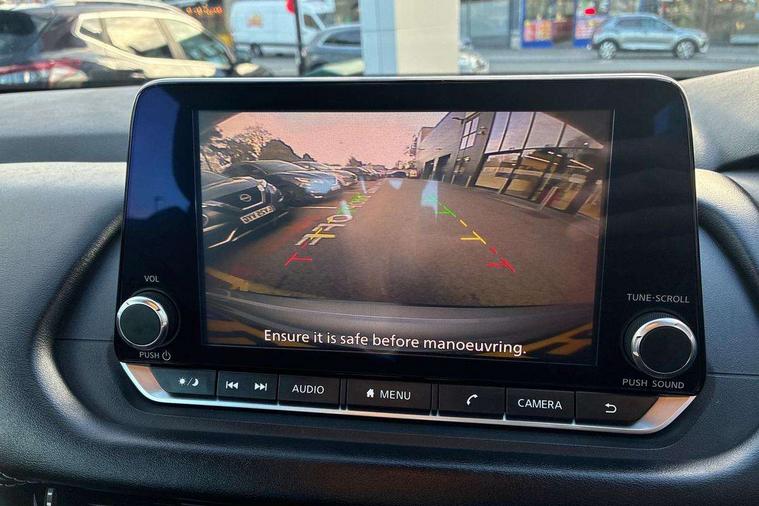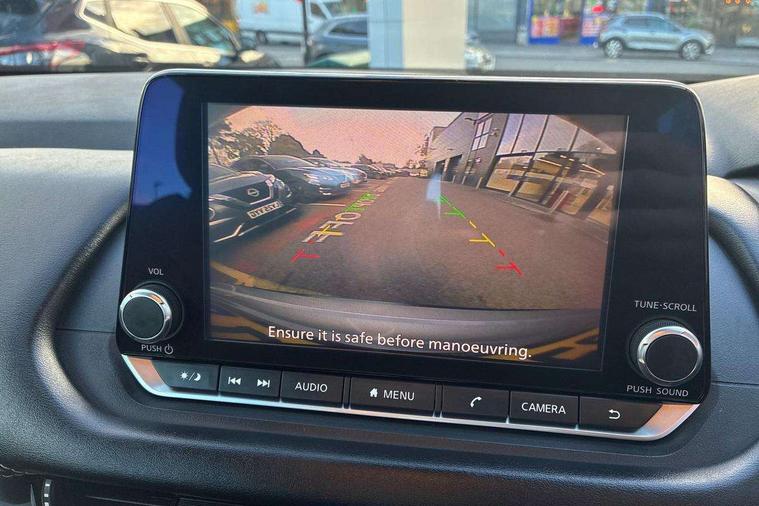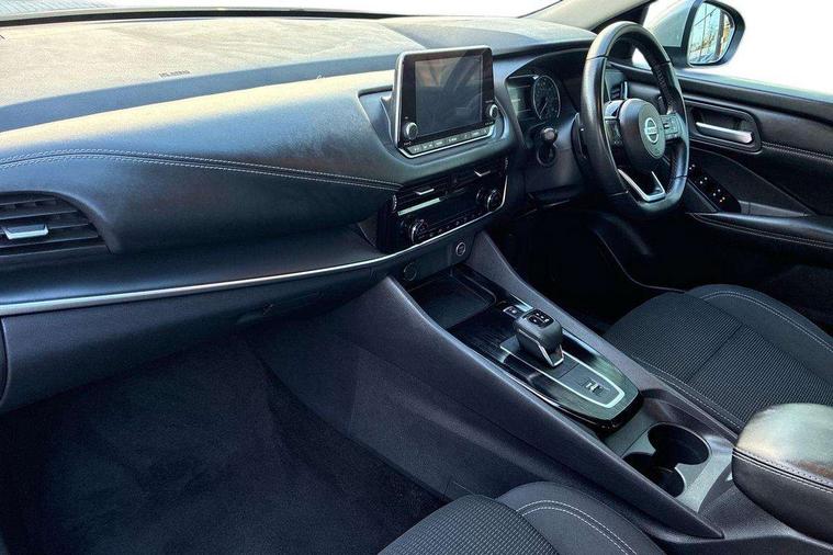 7" High definition full colour TFT screen combimeter, Blind spot warning, Drive modes (sport, normal, eco), Electric speed sensitive power steering, Emergency and breakdown call, Idle stop/start system, Intelligent Cruise control (ICC), Intelligent driver alert system, Intelligent forward collision warning, Intelligent lane intervention, Lane departure prevention, Lane departure warning system, Maximum speed limiter, Push button starter, Rear cross traffic alert, Rear parking sensors, Traffic sign recognition with legal speed adjustment, Trip computer, 6 speakers, AM/FM audio system with DAB, Bluetooth audio streaming, Front USB connections (Type-A and Type-C), 3rd brake light, Auto dimming rear view mirror, Auto rear wiper when reversing, Body colour mirror caps, Body coloured door handles, Bodyside mouldings, Chrome side window finisher, Electric auto folding door mirrors, Electrically adjustable and heated door mirrors with LED turn indicator, Follow me home headlights, High beam assist, Intelligent auto headlights, LED daytime running lights, LED Headlights, LED rear lights, One touch front and rear electric windows with remote opening and closing, Partially body coloured bumpers, Rear reversing light (bulb lighting), Rear roof spoiler, Shark fin antenna, Splash free rain sensing wipers, Three blink turn signal, 12v power socket in dashboard and luggage, 2 way electrical driver lumbar adjustment, 2x Rear coat hooks, 3 rear headrests, 4 grab handles, 6 Luggage hooks - 4 on floor, 2 on side, 60/40 split folding rear seat, Centre console storage tray, Chrome interior door handles, Cloth monoform upholstery, Driver and front passenger sunvisors with illuminated vanity mirrors, Driver seat back pocket, Dual zone automatic climate control with pollen filter, Front centre console and armrest, Front cupholder, Front door with bottle holders, Glovebox with light, Hard trunk cover, Height adjustable driver's seat, Height adjustable front headrests, Leather steering wheel, Luggage space lighting, Manually adjustable passenger (slide recline + lifter), Multifunction steering wheel, Passenger seat back pocket, Rear armrest with 2 cupholders, Rear door bottle holders, Steering wheel gearshift paddles, Steering wheel switches, Sunglasses holder, Tilt/telescopic adjustable steering wheel, Two rear isofix child seat anchorage points with top tether, 3x3 point rear seatbelt pretensioners + load limiters, ABS, ESP, EBD and brake assist, Active brake limited slip, Auto hold function, Child locks on rear doors, Curtain and front side, far side airbags, Driver and passenger airbags, Driver, passenger and 2nd row rear seat belt reminder, Electronic parking brake, Front seatbelt pretensioners + load limiters, Height adjustable front seatbelts, Hill start assist, Intelligent blind spot intervention, Intelligent front emergency braking with pedestrian, cyclist recognition and junction assist, Intelligent rear automatic braking, Tyre pressure monitoring system, Vehicle dynamic control, Capless fuel filler, Engine immobiliser, Nissan i-key, Remote central door locking with deadlocking, Thatcham Cat.1 alarm, 17" alloy wheels,