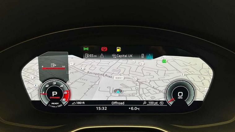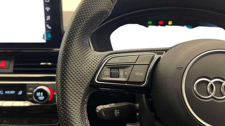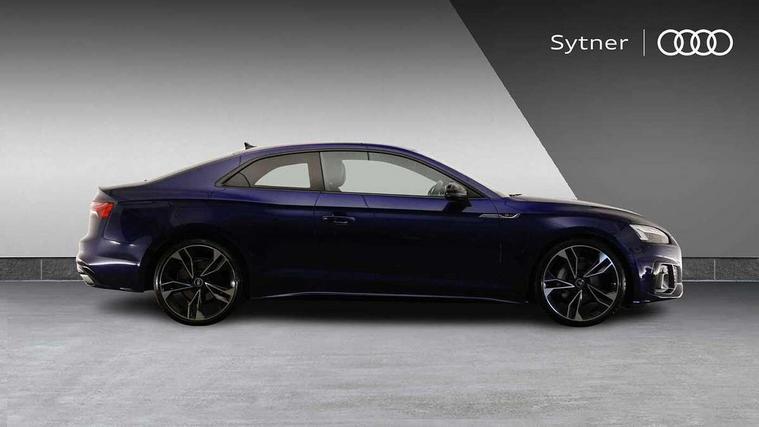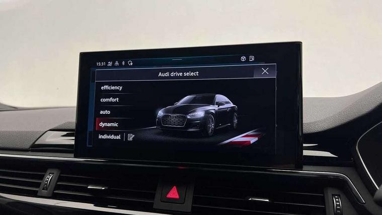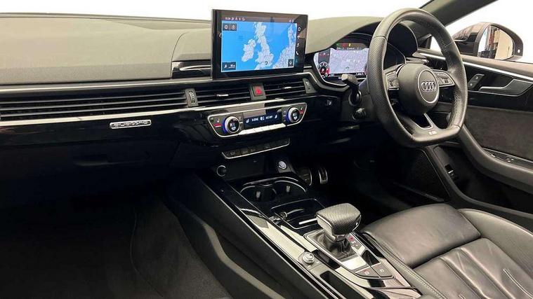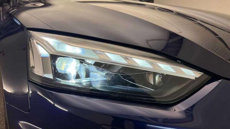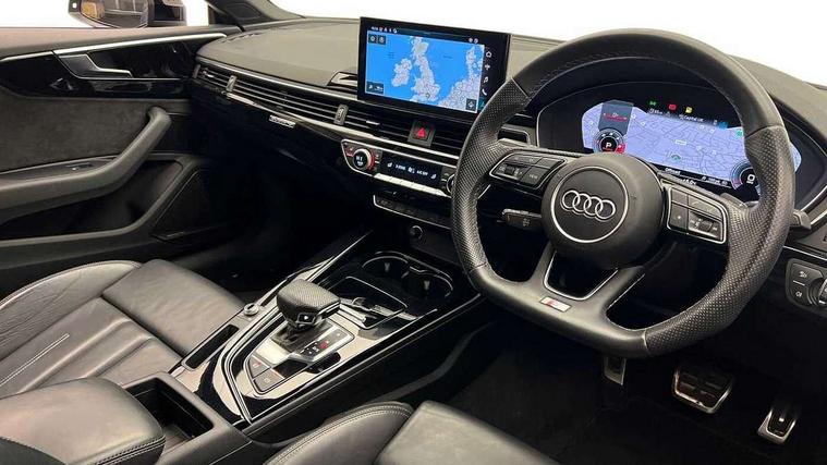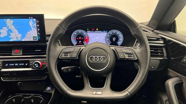 Audi connect safety and service (e-call), Audi drive select (Auto, Comfort, Dynamic, Efficiency and Individual), Audi parking system plus with front and rear sensors, Audi phone box with wireless charging, Audi smartphone interface, Audi virtual cockpit - 12.3" full colour digital instrument cluster, vehicle/engine speed, Radio/media information+Driver assistance systems, Automatic start-stop system with coasting functionality and efficiency programme, Bluetooth interface, Electric boot lid release, Electro-mechanical power steering, Email, calendar and text messages displayed via MMI, MMI nav+ with MMI touch - 10.1" high resolution MMI display, touch sensitive, 3D map, route/country info, dynamic route guide, personal route assist, Rear view camera, Service interval indicator, Voice control system, Diesel particulate filter, Sports suspension lowered by 23mm, 8 passive loudspeakers, CD player, DAB digital radio reception, Two additional USB ports for rear passenger in rear centre console, Two SDXC card slots, Auto dimming rear view mirror, Black door mirror housings, Body colour bumpers, Body colour door handles, Body colour front spoiler lip, Body colour side sill trim, Electric adjustable heated door mirrors, Electric folding door mirrors, Electric front windows, Front fog lights, Honeycomb structure radiator grille in grained matt black, Matrix LED headlights with Audi laser light, dynamic light sequencing and dynamic indicator, Matt aluminium silver tailpipe trim, Privacy glass, Rain and light sensors, Rear diffuser in matt titanium black with trim strip in matt aluminium silver, Side air inlets in grained matt black with matt aluminium silver inlay, Sport front and rear bumpers with side skirts, Towbar preparation, Windscreen with acoustic glazing, 4 way electric lumbar support for driver and front passenger, 40/20/40 split folding 2 seater rear seat bench with rear centre armrest, Adjustable steering column, Black cloth headlining, Black perforated leather gearknob, Contrast stitching on seats, steering wheel and gear lever gaiter, Deluxe 3 zone electronic climate control, Electrically adjustable front seats, Fine Nappa leather upholstery with front sports seats S embossed logo, Front centre armrest, Front head restraints, Front/rear floor mats, Heated front seats, Illuminated door sill trim with S logo, ISOFIX child seat mounting and top tether, Luggage compartment mat, Rear headrests, Stainless steel pedals, Sunvisors with vanity mirrors, Tool kit, Black styling pack - A5 Coupe/Sportback, LED interior light pack - A5/RS5, 2 x 3-point rear seat belts, 6 airbags - Driver, front passenger, curtain and side airbags, Electromechanical parking brake, Electronic Stabilisation Control (ESC) including ABS, ASR and EDL, Front passenger airbag deactivation, Height adjustable front seatbelts, Hill hold assist, Multi collision brake assist, Pop-up bonnet for pedestrian protection, Seatbelt monitoring, Tyre pressure warning, Variable restraint system, Warning triangle and first aid kit, Anti theft alarm system, Anti theft wheel bolts, Immobiliser, Keyless Go, Remote central locking, Piano black finish inlay, 20" 5 twin spoke polygon design alloy wheels in gloss anthracite black and gloss turned finish, Tyre repair kit,