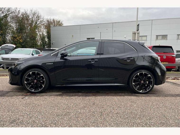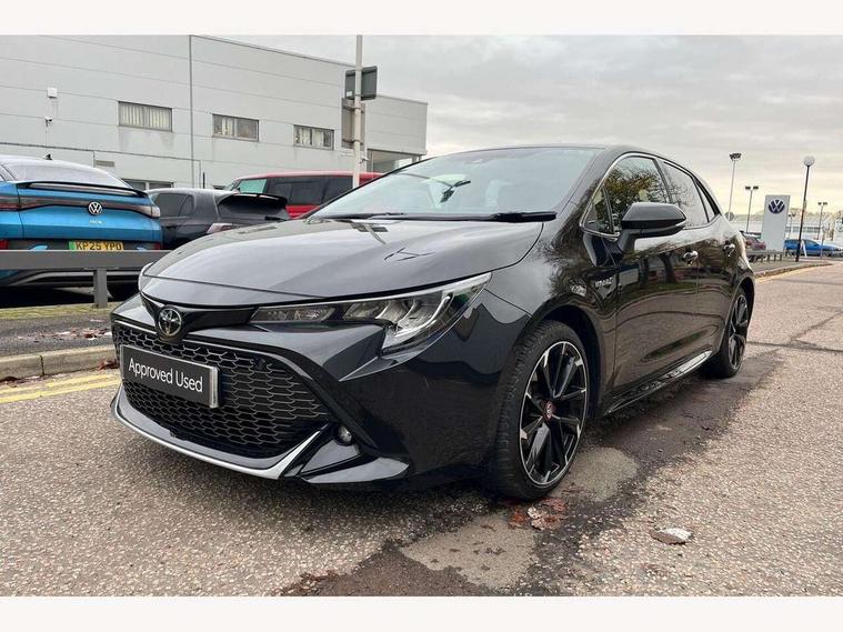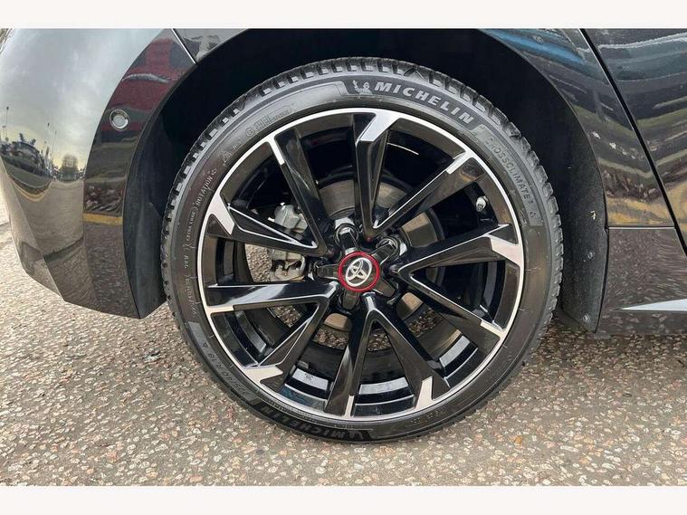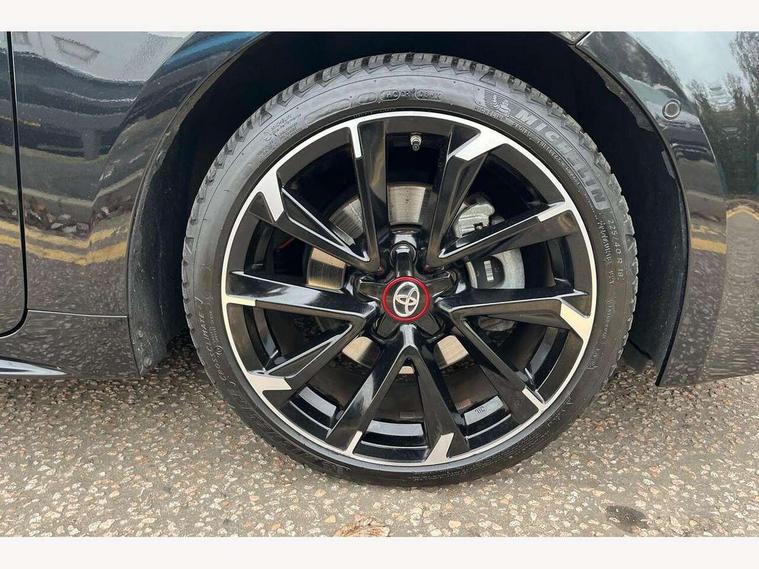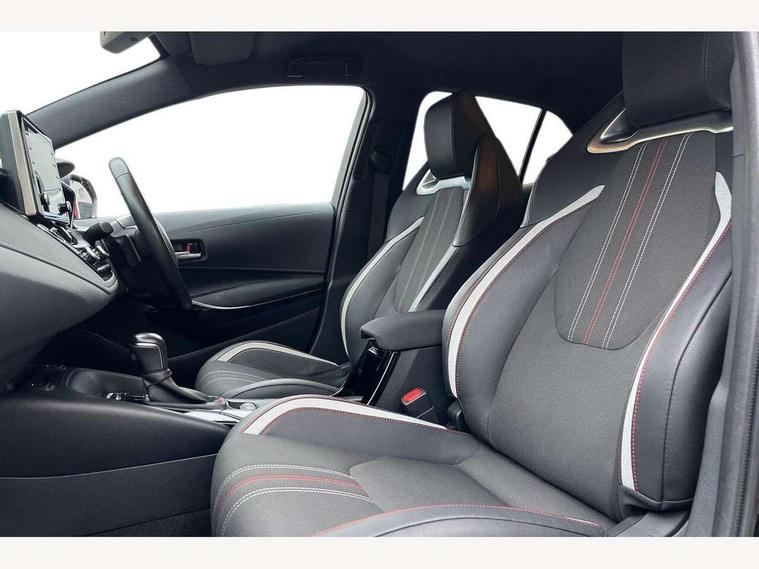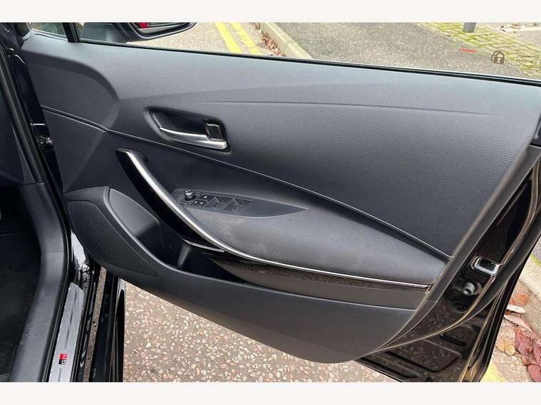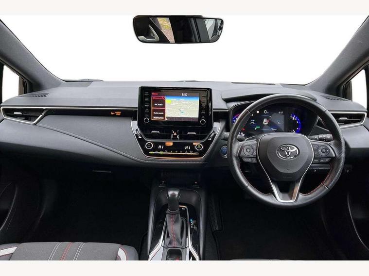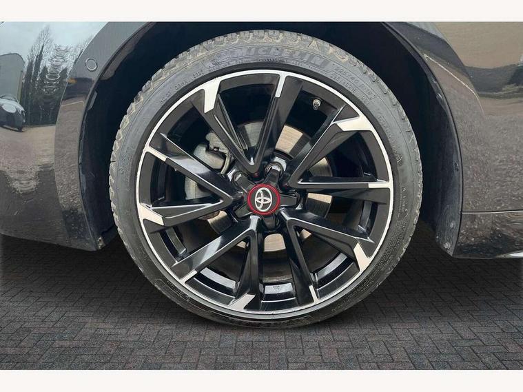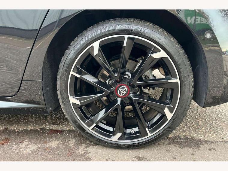 3D Colour multi information display, Bluetooth telephone connectivity, Connected car functionality upgrade, tracker, remote status and e-care, E-call, Electrically assisted power steering, EV drive indicator, Head up Display, Intelligent park assist, Push button start, Reversing camera, Smartphone integration with Apple CarPlay and Android auto, Speed limiter, Gasoline particulate filter, Vehicle Stability Control (VSC), 2 ring combimeters with 7" colour TFT screen, 6 speakers, 8" Touchscreen with MM19 Multimedia system and voice recognition, AM/FM radio, DAB Digital radio, Toyota touch 2 with go navigation system, USB and Aux in connectors + 12V front outlet, Anti-jam protection on power windows, Auto dimming inside rear view mirror, Auto up and down function on all power windows, Automatic folding mirrors, Automatic headlights with high beam assist, Black toyota logo in front, Body coloured bumpers, Body coloured outside door handles, LED daytime running lights, LED front fog lights, LED Headlights, LED rear combi lights with LED lightguide, Power adjustable heated door mirrors, Power front windows, Power rear windows, Privacy glass, Rain sensing wipers, Rear window wiper, Reverse tilting door mirrors, Shark fin antenna, Unique lower skirt, Unique piano black surround and hot stamping grille finish, Unique side rocker with black insert, 3 rear headrests, 3 spoke leather steering wheel + gear knob, Alcantara/partial leather upholstery, Clean air filter, Dual zone automatic air conditioning with ECO mode switch, Front head restraints, Heated seats, ISOFIX seat fixing (2 fixings on rear outer seats), Pollen filter, Power lumbar support, Steering wheel switches, Tilt/telescopic steering column, WIL - Whiplash Injury Lessening seats, Parking pack - Corolla, Toyota safety sense 2 pack - Corolla, 3x3 point rear seatbelts, Adjustable front driver seat belt extender, Anti lock braking system + Electronic brake force distribution, Brake assist function, Electronic parking brake, Front passenger airbag on/off switch, Front seatbelt reminder, HAC-Hill-start Assist Control, Rear seat belt reminder, Seatbelt pretensioners and force limiters, Supplemental restraint system (SRS) 7 airbags - dual driver, dual side curtain, side impact and driver knee airbags, Traction control, Tyre pressure warning system, Acoustic vehicle alert system (AVAS), Alarm with motion sensor and immobilizer, Remote central locking + deadlocks, Space saver spare wheel, Unique wheel finish with red wheel cap,