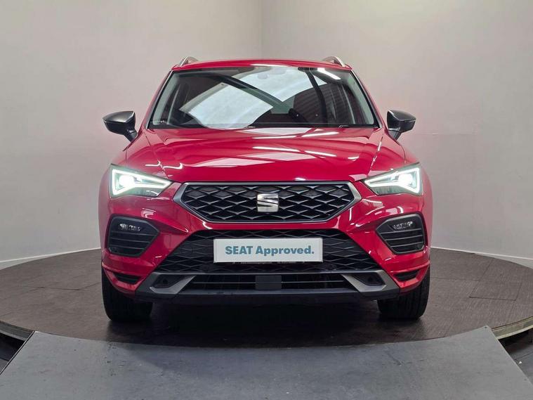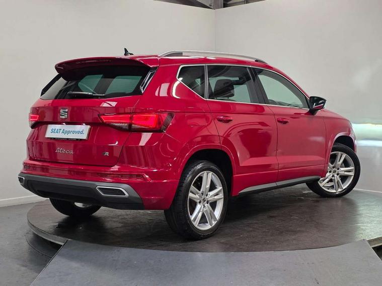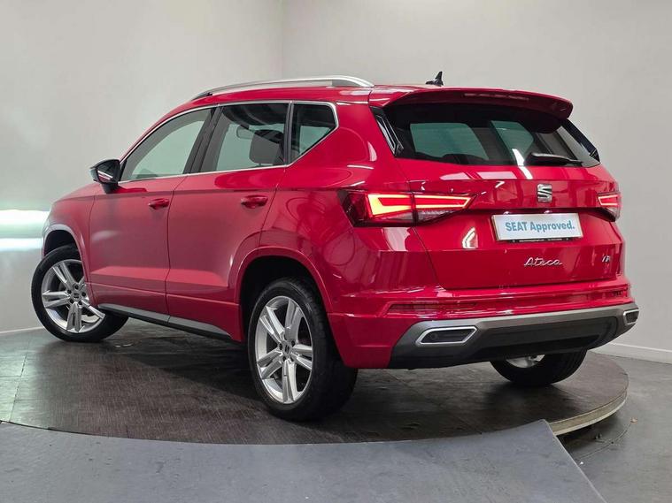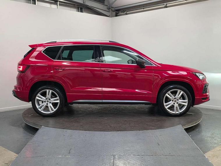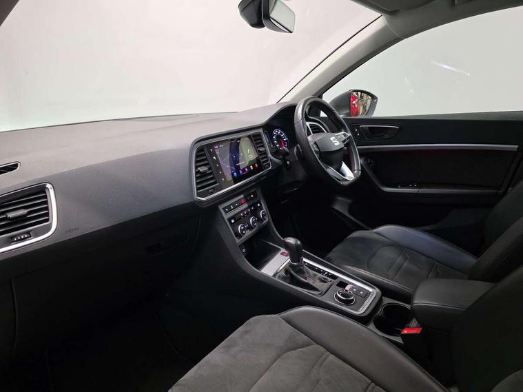 Cruise control system with speed limiter, Outside temperature gauge, Progressive power assisted steering, SEAT drive profile with driving experience button - Normal, Sport, Eco and Individual mode, gearshift, steering and throttle response, Self parking functionality (includes front and rear parking sensors), Trip computer, Wireless full link smartphone integration, Wireless phone charger, Steering wheel mounted audio/phone controls, Body colour bumpers, Body coloured wheel arch surrounds, Chrome roof rails, Chrome side window trim, Cosmo grey front grille frame, Dark tinted rear windows, Daytime running lights, Door mirrors with welcome light silhouette, Dynamic headlight range control with self adjusting whilst driving, Electric adjustable/heated/folding door mirrors, Front and rear electric windows, Full LED headlamps with lens and LED front fog lamps with cornering function, Illuminated aluminium front door sill, LED rear tail lights with dynamic indicators, Rear fog lights, Rear spoiler, Rear wash/wipe, Simulated exhaust pipes in chrome frame, 12V socket in front, 60/40 split folding rear seat, Aluminium pedals, Dual zone climate control, Front and rear head restraints, Front centre armrest, Front seat back storage pockets, Height adjustable driver and passenger seat with lumbar adjustment, ISOFIX points in outer rear seats with top tether anchorage points, Leather steering wheel and gear knob, Microsuede upholstery with front sports seats, Rear armrest and easy back seat release mechanism from boot, Steering wheel mounted gearshift paddles, Storage compartment under driver's seat, Convenience pack - Ateca, Interior lighting pack - Ateca, Navigation system pack with DAB - Ateca, 3x3 point rear seatbelts, ABS, Traction control system (TCS), Electronic stability control (ESC) and Electronic differential lock system (XDS), Airbags - Driver and front passenger airbag with deactivation, front side, two curtain and driver's knee airbags, Electric parking brake with auto hold function, Front and rear seatbelt reminder, Front assist with autonomous emergency braking, Hill hold control, Tiredness recognition system, Traction control, Tyre pressure monitoring system, Alarm, Keyless entry, Locking wheel bolts, Chrome interior detailing, 18" Brillaint silver alloy wheels,