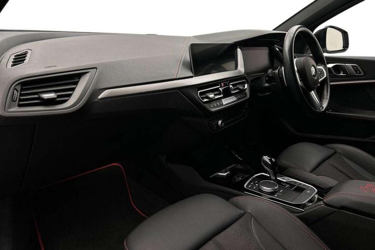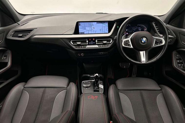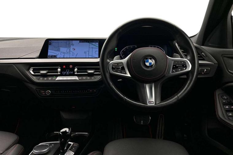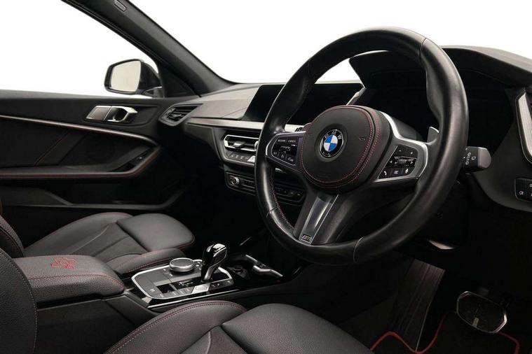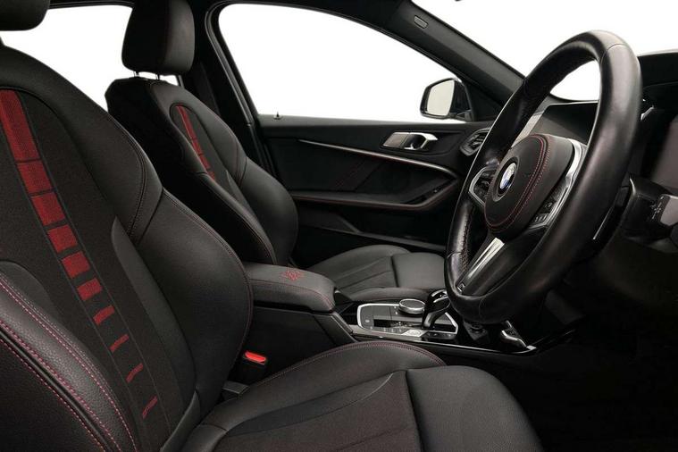 Active guard plus, Attentiveness assist, BMW ConnectedDrive online services, BMW Teleservices, Check Control warning system for monitoring of lights and door/luggage compartment open warning, Cruise control with brake assist, Eco pro mode, Electric power steering with Servotronic steering optimised at all speed ranges, Front axle single joint with specific axle kinematics to minimise drive influences on steering + provide increased rigidity agile driving behaviour, Integrated owners handbook, Lane departure warning system, Oil sensor for level and grade, On board computer, Optimum shift indicator, Personal Profile, Pull away assistant, Rigidly mounted rear subframe - Multi link construction with separate spring / damper configuration and excellent driving characteristics, Speed limit Info including no-overtaking indicator, Speed limiter, Aluminium lightweight construction, Anti roll bar front and rear, Balancer shaft, Double VANOS twin scroll turbocharging system, Drive Performance Control, Eight speed sport automatic transmission with gearshift paddle switches, Electronic differential lock, High precision injection, Larger fuel tank capacity (50 litres), M sport suspension with M128i xDrive specific settings, Petrol Particulate Filter, Twin tube gas filled shock absorbers with degressive characteristic curve, VALVETRONIC engine management, DAB Digital radio, Auto dimming rear view mirror, Automatic headlight beam throw control, Automatic windscreen wipers and automatic headlight, Black chrome tailpipe finishers, BMW individual high gloss shadow line with extended content, Body colour door handles, Body colour mirror caps, Body colour roof trims, Chrome 'M' logo side designation, Chrome kidney grille frame with Satin Aluminium struts, Direction indicator side lights in exterior mirrors, Fading support, Folding side mirrors with auto dimming/folding wing mirrors with auto dimming, Follow me home headlights, Front and rear bumper system with replaceable deformation elements, Front and rear electric windows with open and close fingertip control, anti trap facility and comfort closing, Front door sill finishers in black plastic with M designation in metallic look, Green tinted heat protection glazing, Heated, electrically adjustable exterior mirror aspheric on driver side, convex on passenger side, High gloss shadowline window frame, Recess cover mirror frames and B/C pillar embelisher trim, High level third brake light, Integrated front windscreen with washer jets, Kidney frame and struts in high gloss black extended, LED daytime running lights, LED eyebrow turn indicators, LED front fog lights, Lightweight engineering, Matt black air guide grilles, Matt black wheel arch trim, Model designation on electric bootlid, Nearside reverse light in rear light cluster, Preparation for high beam assistant, Rear fog lights, Rear side wing doors, Rear window wiper, Shark fin antenna, Trailer stabilisation logic, Visible VIN plate, Welcome lighting, 12V power socket in front centre console with blanking plug, 3 rear seat head restraints, 3 seat bench in 2nd row, Anthracite headlining, Black boot net with lashing eyes, Cargo function on 2nd seat row, Centre armrest in black/red highlight including embroidered 'ti' designation in red, Child seat ISOFIX attachment for two outer rear seats and front passenger seat with anchorage points, Conditioned based service, Driver and front passenger seat heating, Floor mats with red binding, Folding rear clothes hook, Four grab handles integrated in roof lining, Front and rear door pockets with bottle holders, Front and rear side armrest integrated into door trim, Front armrest, Front sports seats, Glove compartment, Height adjustable front head restraints, Instrument panel top section , door armrests and door panels in black/red highlight, Luggage compartment for bag hooks on left and right, foldable luggage compartment liner and four lashing eyelets, Manual adjust steering wheel, Multi-function controls for steering wheel, Single front passenger seat, Storage compartment in centre console, Sun visors with vanity mirrors and insert tab, Three spoke M sport design multi function leather steering wheel in unique red stitching, Two front centre console cupholders, Two zone automatic air conditioning, Additional interior lighting pack - 1 Series, BMW live cockpit professional pack- 1 Series, Connected pack professional - 1 Series, Interior lights pack - 1 Series, M Sport exterior styling aerodynamics pack - 1 Series, 2 tone horn, 3 point seatbelts on all seats, front pyrotechnic belt tensioners, stopper and belt force limiters, rear coded belt buckles, Airbags - Front driver/passenger, front and rear curtain head protection, front side, manual deactivation of front passenger airbag, Anti lock braking system (ABS) with brake assist, BMW emergency call, Brake drying, Braking readiness, Child proof locking system in rear door, City braking function, Comfort modes, Cornering brake control, Crash sensor activating central locking release, hazard warning lights, fuel cut off, interior lighting + activation of safety battery terminal clamp, Driver and front passenger seat belt security check, Dynamic stability control + (DSC+), Dynamic Traction Control - DTC, Electrically operated hand brake including automatic hold function, Front and rear disc brakes, M Sport brakes with red calipers, M Sport seatbelts, Seatbelt warning, Side impact protection, Tyre pressure monitoring system, Warning triangle and first aid kit, Central locking switch for all doors, fuel filler cap and luggage compartment, Deadlocking function system to all doors, Drive away locking system on all doors and luggage compartment with de-activated in iDrive settings, Locking wheel bolts, Remote control with integrated key with High-gloss Black inlay and M designation and 1 button for open/ close lock, window, open luggage compartment, Start/stop button illuminated in centre console with keyless engine start and 