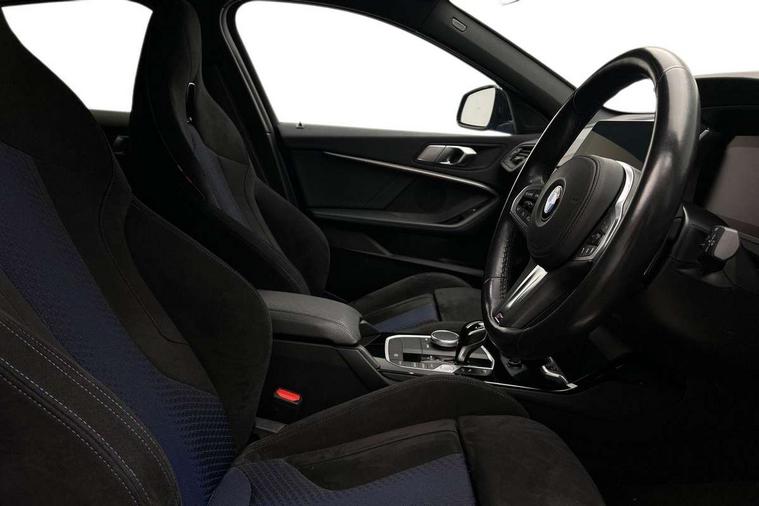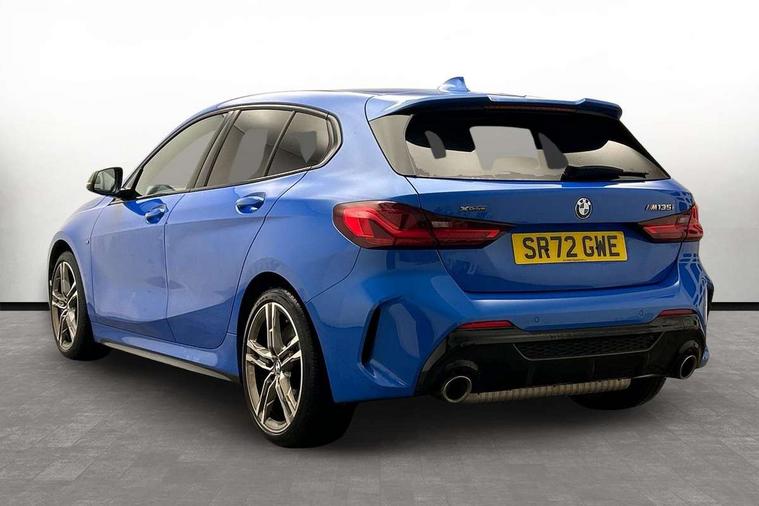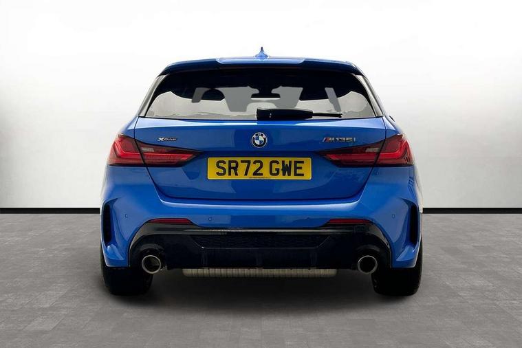 Active guard plus, Attentiveness assist, BMW ConnectedDrive online services, BMW Teleservices, Check Control warning system for monitoring of lights and door/luggage compartment open warning, Cruise control with speed limiter, Eco pro mode, Electric power steering, Electro hydraulically controlled multi-plate clutch transfers drive to rear axle and with power take-off device located on the front differential., Energy efficient operating strategy, Front axle single joint with specific axle kinematics to minimise drive influences on steering + provide increased rigidity agile driving behaviour, Gearshift time display in manual mode, Integrated owners handbook, Lane departure warning system, M Sports steering with M135i xDrive specific settings, Oil sensor for level and grade, On board computer, Optimum shift indicator, Personal Profile, Pull away assistant, Rigidly mounted rear subframe - Multi link construction with separate spring / damper configuration and excellent driving characteristics, Speed limit Info including no-overtaking indicator, Sporty fast gear shifting in sport mode, Aluminium lightweight construction, Anti roll bar front and rear, Balancer shaft, Double VANOS, Drive Performance Control, Eight speed sport automatic transmission with gearshift paddle switches, Electronic differential lock, Electronic selector lever, Engine cover with M performance designation, High precision injection, Larger fuel tank capacity (50 litres), Launch control, M135i specific heavily de-throttled engine intake air guide, M135i specific high-performance cooling package, M135i specific larger turbocharger with integrated divert-air valve, Petrol Particulate Filter, Twin tube gas filled shock absorbers with degressive characteristic curve, VALVETRONIC engine management, Variable, stepless and infinitely adjustable distribution of drive torque between the front and rear axles, xDrive intelligent all wheel drive with M135i specific reinforced components, DAB Digital radio, Auto dimming rear view mirror, Automatic headlight beam throw control, Automatic windscreen wipers and automatic headlight, Body colour door handles, Body colour roof trims, Cerium grey exterior mirror caps, Direction indicator side lights in exterior mirrors, Electrically adjustable exterior mirror with mirror adjustment switch on drivers armrest and aspheric on driver side, convex on passenger side, Exhaust tailpipe, Cerium Grey with bevelled finish - twin, round 100mm, left and right split, Fading support, Folding side mirrors with auto dimming/folding wing mirrors with auto dimming, Follow me home headlights, Front and rear bumper system with replaceable deformation elements, Front and rear electric windows with open and close fingertip control, anti trap facility and comfort closing, Front door sill finishers with M135i designation, Green tinted heat protection glazing, High gloss shadowline window frame, Recess cover mirror frames and B/C pillar embelisher trim, High level third brake light, Integrated front windscreen with washer jets, Kidney grille frame in Cerium Grey with Mesh design, LED daytime running lights, LED eyebrow turn indicators, LED front fog lights, Lightweight engineering, M logo designation side in cerium grey, M Performance exhaust system with valve control and minimised exhaust back pressure, M Performance specific setup, M Sport spoiler, Matt black air guide grilles, Matt black wheel arch trim, Model designation on electric bootlid includes xDrive designation for M135i xDrive, Nearside reverse light in rear light cluster, Preparation for high beam assistant, Rear fog lights, Rear side wing doors, Rear window wiper, Reinforced crank drive, new pistons and adapted con rods, Shark fin antenna, Trailer stabilisation logic, Visible VIN plate, Welcome lighting, 12V power socket in front centre console with blanking plug, 3 rear seat head restraints, 3 seat bench in 2nd row, 3 spoke sports leather steering wheel with black leather and stitching, pearl chrome decorative finish, specific M Badge, Anthracite headlining, Black boot net with lashing eyes, Cargo function on 2nd seat row, Child seat ISOFIX attachment for two outer rear seats and front passenger seat with anchorage points, Conditioned based service, Driver and front passenger backrest net on rear, Driver and front passenger seat heating, Driver side folding compartment in instrument panel, Folding rear clothes hook, Four grab handles integrated in roof lining, Front and rear door pockets with bottle holders, Front and rear side armrest integrated into door trim, Front armrest, Front M sports seats, Glove compartment, Height adjustable front head restraints, Luggage compartment for bag hooks on left and right, foldable luggage compartment liner and four lashing eyelets, Manual adjust steering wheel, Multi-function controls for steering wheel, Single front passenger seat, Storage compartment in centre console, Storage compartment in luggage compartment, Stowage of the parcel shelf in luggage compartment trim, Sun visors with vanity mirrors and insert tab, Two front centre console cupholders, Two zone automatic air conditioning, Type C two USB ports in rear centre console, Velour floor mats, Additional interior lighting pack - 1 Series M135i, BMW live cockpit professional pack- 1 Series, Connected pack professional - 1 Series, Interior lights pack - 1 Series, M Sport exterior styling aerodynamics pack - 1 Series 135i, 2 tone horn, 3 point seatbelts on all seats, front pyrotechnic belt tensioners, stopper and belt force limiters, rear coded belt buckles, Airbags - Front driver/passenger, front and rear curtain head protection, front side, manual deactivation of front passenger airbag, Anti lock braking system (ABS) with brake assist, BMW emergency call, Brake drying, Braking readiness, Child proof locking system in rear door, City braking function, Comfort modes, Cornering brake control, Crash sensor activating of airbags, Unlocking doors, hazard warning 