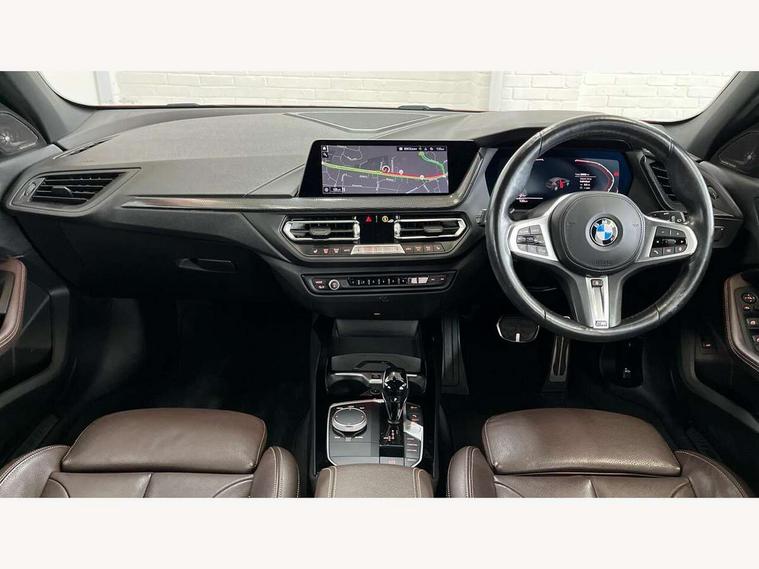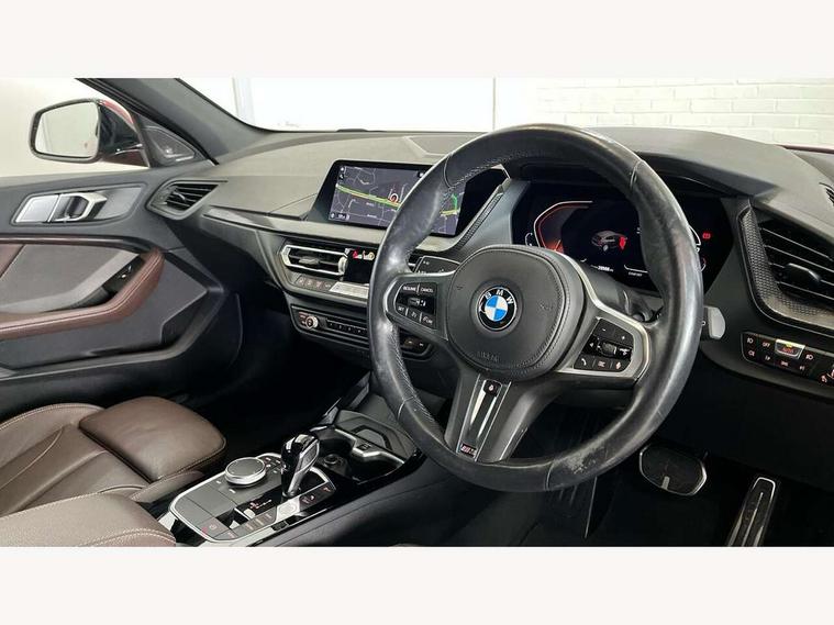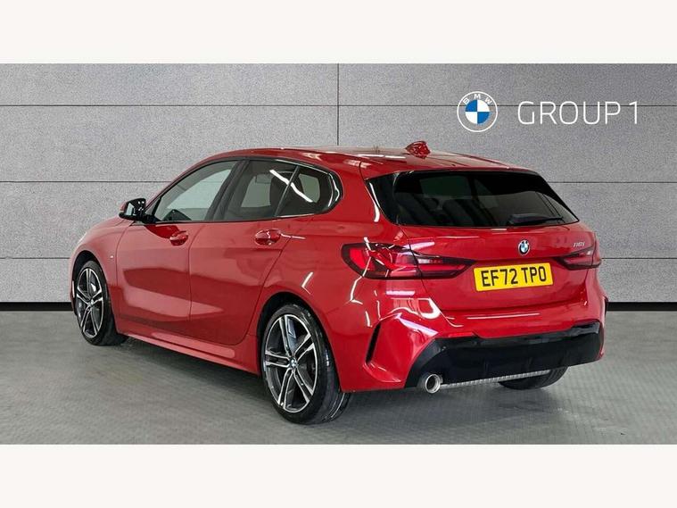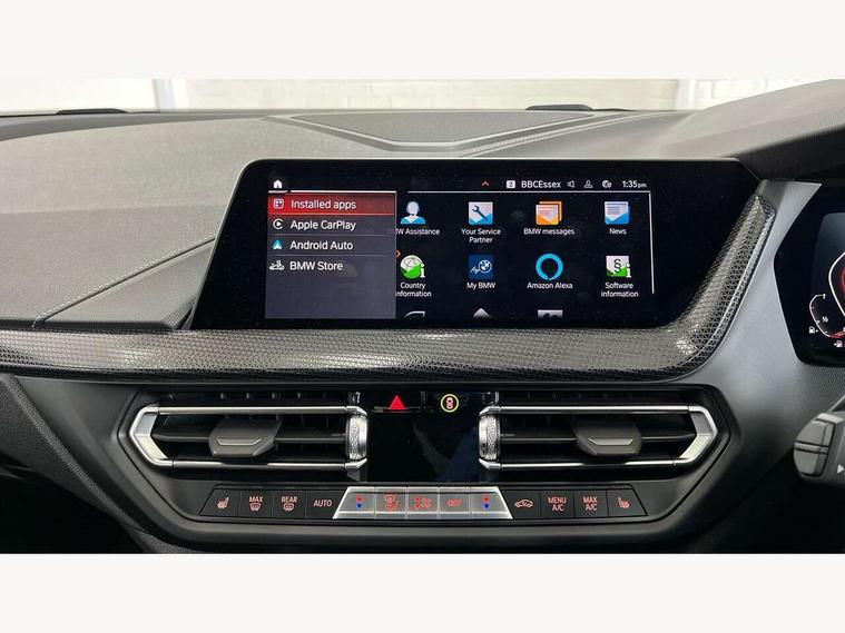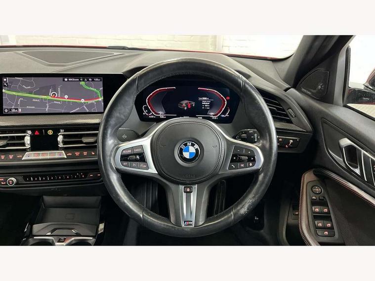 Active guard plus, Attentiveness assist, BMW ConnectedDrive online services, BMW Teleservices, Check Control warning system for monitoring of lights and door/luggage compartment open warning, Cruise control with brake assist, Eco pro mode, Front axle single joint with specific axle kinematics to minimise drive influences on steering + provide increased rigidity agile driving behaviour, Integrated owners handbook, Lane departure warning system, Oil sensor for level and grade, On board computer, Optimum shift indicator, Personal Profile, Pull away assistant, Rigidly mounted rear subframe - Multi link construction with separate spring / damper configuration and excellent driving characteristics, Speed limit Info including no-overtaking indicator, Speed limiter, Aluminium lightweight construction, Anti roll bar front and rear, Balancer shaft, Double VANOS twin scroll turbocharging system, Drive Performance Control, Electronic differential lock, High precision injection, M sport suspension, Petrol Particulate Filter, Twin tube gas filled shock absorbers with degressive characteristic curve, VALVETRONIC engine management, DAB Digital radio, Auto dimming rear view mirror, Automatic headlight beam throw control, Automatic windscreen wipers and automatic headlight, Body colour door handles, Body colour mirror caps, Body colour roof trims, Chrome 'M' logo side designation, Chrome exhaust twin tailpipes round 90mm in left, Chrome kidney grille frame with Satin Aluminium struts, Direction indicator side lights in exterior mirrors, Fading support, Folding side mirrors with auto dimming/folding wing mirrors with auto dimming, Follow me home headlights, Front and rear bumper system with replaceable deformation elements, Front and rear electric windows with open and close fingertip control, anti trap facility and comfort closing, Front door sill finishers in black plastic with M designation in metallic look, Green tinted heat protection glazing, Heated, electrically adjustable exterior mirror aspheric on driver side, convex on passenger side, High gloss shadowline window frame, Recess cover mirror frames and B/C pillar embelisher trim, High level third brake light, Integrated front windscreen with washer jets, LED daytime running lights, LED eyebrow turn indicators, LED front fog lights, LED Headlights, Lightweight engineering, Matt black air guide grilles, Matt black wheel arch trim, Model designation on electric bootlid, Nearside reverse light in rear light cluster, Preparation for high beam assistant, Rear fog lights, Rear side wing doors, Rear window wiper, Shark fin antenna, Trailer stabilisation logic, Visible VIN plate, Welcome lighting, 12V power socket in front centre console with blanking plug, 3 rear seat head restraints, 3 seat bench in 2nd row, 3 spoke sports leather steering wheel with black leather and stitching, pearl chrome decorative finish, specific M Badge, Anthracite headlining, Black boot net with lashing eyes, Cargo function on 2nd seat row, Child seat ISOFIX attachment for two outer rear seats and front passenger seat with anchorage points, Conditioned based service, Driver and front passenger seat heating, Folding rear clothes hook, Four grab handles integrated in roof lining, Front and rear door pockets with bottle holders, Front and rear side armrest integrated into door trim, Front armrest, Front sports seats, Glove compartment, Height adjustable front head restraints, Luggage compartment for bag hooks on left and right, foldable luggage compartment liner and four lashing eyelets, Manual adjust steering wheel, Multi-function controls for steering wheel, Single front passenger seat, Storage compartment in centre console, Sun visors with vanity mirrors and insert tab, Two front centre console cupholders, Two zone automatic air conditioning, Velour floor mats, Additional interior lighting pack - 1 Series, BMW live cockpit professional pack- 1 Series, Connected pack professional - 1 Series, Interior lights pack - 1 Series, M Sport exterior styling aerodynamics pack - 1 Series, 2 tone horn, 3 point seatbelts on all seats, front pyrotechnic belt tensioners, stopper and belt force limiters, rear coded belt buckles, Airbags - Front driver/passenger, front and rear curtain head protection, front side, manual deactivation of front passenger airbag, Anti lock braking system (ABS) with brake assist, BMW emergency call, Brake drying, Braking readiness, Child proof locking system in rear door, City braking function, Comfort modes, Cornering brake control, Crash sensor activating central locking release, hazard warning lights, fuel cut off, interior lighting + activation of safety battery terminal clamp, Driver and front passenger seat belt security check, Dynamic stability control + (DSC+), Dynamic Traction Control - DTC, Electrically operated hand brake including automatic hold function, Front and rear disc brakes, Seatbelt warning, Side impact protection, Tyre pressure monitoring system, Warning triangle and first aid kit, Central locking switch for all doors, fuel filler cap and luggage compartment, Deadlocking function system to all doors, Drive away locking system on all doors and luggage compartment with de-activated in iDrive settings, Locking wheel bolts, Remote control with integrated key with High-gloss Black inlay and M designation and 1 button for open/ close lock, window, open luggage compartment, Start/stop button illuminated in centre console with keyless engine start and auto start stop deactivation button, Thatcham Cat.1 alarm and immobiliser, Wheel slip limitation close to the actuator (ARB), Contrast stitching on instrument panel, Electrically powered 12V compressor, Reduced rolling resistance tyres,