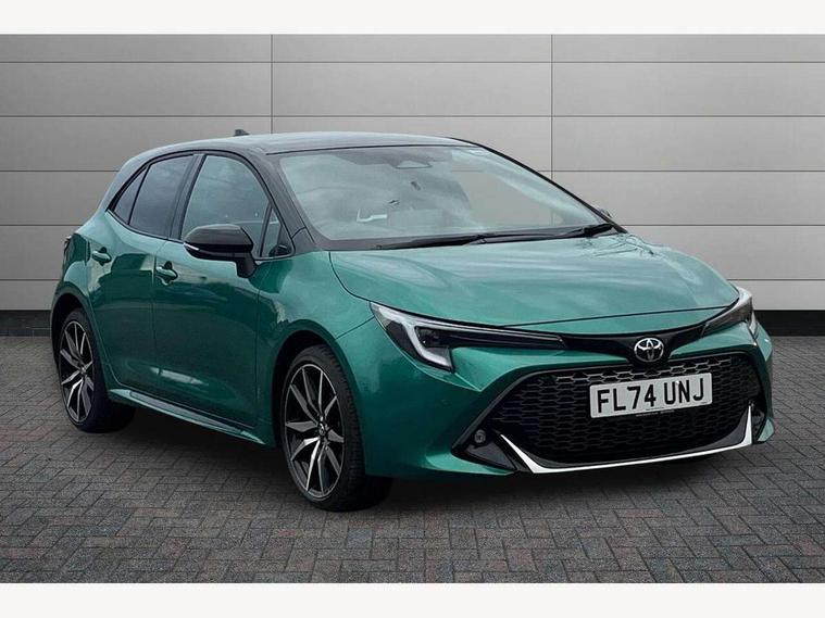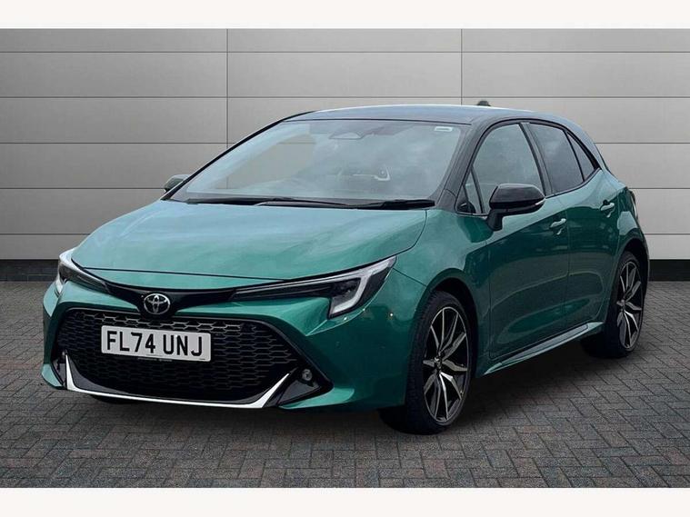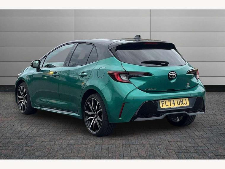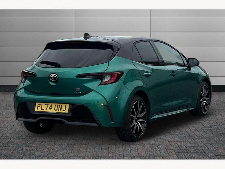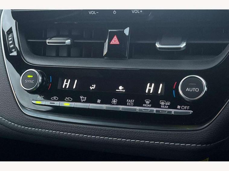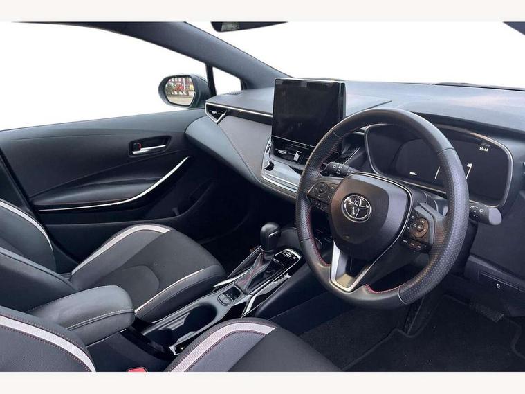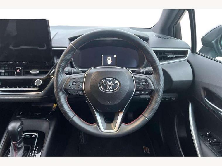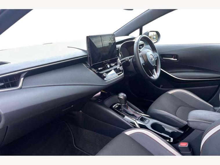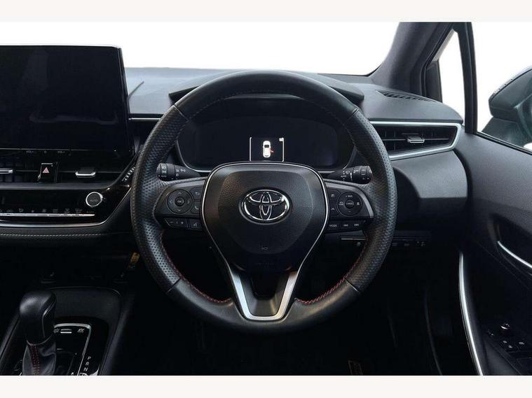 10.5" Multimedia display screen, Bluetooth telephone connectivity, Connected car functionality upgrade, tracker, remote status and e-care, Drive mode select (Eco, Normal), E-call, Electrically assisted power steering, EV drive indicator, Front and rear parking sensors with auto brake, Full Digital 12.3" TFT Digital Combimeter, Key reminder warning, Lane Departure Alert (LDA) switch on steering wheel, Memory on adjustable speed limiter, MyT connected services, Proactive driving assist (PDA), Reversing camera, Smart entry and push button start with GR Logo, Smartphone integration with Apple CarPlay and wired android auto, Tailgate, Toyota remote services, Toyota smart connect navigation, Wireless charger, Gasoline particulate filter, Vehicle Stability Control (VSC), 6 speakers, AM/FM radio, DAB Digital radio, Front USB-C in centre console, Front USB-C in dashboard, Smart voice assist/ Voice recognition, USB and Aux in connectors + 12V front outlet, Anti-jam protection on power windows, Auto up and down function on all power windows, Automatic folding mirrors, Automatic headlights with high beam assist, Black centre and side air vents, Black toyota logo in front, Body coloured bumpers, Body coloured door mirrors, Body coloured outside door handles, Dark chrome lower grille, Electrochromatic mirror, Follow me home headlights, GR Sport dark chrome front mesh grille and black rear grille, GR Sport exclusive under guard, GR sport scuff plates, LED daytime running lights, LED dual beam projector headlights, LED front fog lights, LED High mounted stop light, LED rear combi lights with LED lightguide, Manual headlight levelling system, New grille pattern, Noise reduction layer on windscreen, Piano black diffuser, Power adjustable heated door mirrors, Power front windows, Power rear windows, Privacy glass with UV filter, Rain sensing wipers, Rear side wing doors, Rear window defogger, Rear window wiper, Reverse tilting door mirrors, Rocker and door lower moulding, Roof spoiler, Satin chrome insert on front air vents, Satin chrome insert on front door assist grips, Satin silver front spoiler, Shark fin antenna, Tailgate release with push button, Time adjustment on intermittent wiper, Turning signal integrated indicators in door mirrors, Unique lower skirt, Unique side rocker with black insert, UV-filter on driver and passenger windows, 2 Shopping bag hooks in luggage compartment, 3 rear headrests, 3 seat bench in 2nd row, 3 spoke leather steering wheel with satin insert/red stitching + gear knob, 4 tie down hooks in luggage compartment, 60/40 split folding rear seat, Adaptive cruise control (ACC) switch on steering wheel, Adjustable speed limiter switch on steering wheel, Audio, multimedia and telephone switches on steering wheel, Black armrest on centre console box, Black gear shift console, Boot light, Centre room light, Driver and front passenger personal light, Driver and passenger assist grip, Driver and passenger seatback pockets, Driver and passenger sun visor with mirror and light, Dual zone automatic air conditioning with ECO mode switch, Fabric/synthetic leather upholstery, Front and rear cup and bottle holders, Front door pockets, Front head restraints, Front passenger seat, Front sliding synthetic leather armrest, GR Sports seats with partial leather bolsters, Heated seats, Illuminated entry system in room lamp, ISOFIX seat fixing (2 fixings on rear outer seats), Manual height adjustable for driver and front passenger seat, Manually tilt with sliding driver and front passenger seat, Nanoe-X air purifier, Parcel shelf, Pollen filter, Power window switches with satin chrome inserts, Rear armrest with 2 cupholders, Rear passenger coat hooks (2), Red stitching on gear shift, Remote air conditioning, Satin chrome inside door handles, Satin chrome surround on speedometer, Sliding armrest on centre console box, Slow opening glovebox with lights, Textile floor mats, Tilt/telescopic steering column, Voice recognition switch on steering wheel, Whiplash Injury Lessening (WIL) feature (active headrest) for seats, White ambient lighting on open tray and front cup holder, Toyota safety sense 3 pack - Corolla, 3x3 point rear seatbelts, Adjustable driver and front passenger seat belt extender to top anchor point, Anti lock braking system + Electronic brake force distribution, Brake assist function, Child locks on rear doors, Downhill Assist Control (DAC), Electronic parking brake, Emergency brake light signal (EBS), Front passenger airbag on/off switch, Front seatbelt reminder, HAC - Hill start assist control, Rear seat belt reminder, Seatbelt pretensioners and force limiters, Supplemental restraint system (SRS) 7 airbags - dual driver, dual side curtain, side impact and driver knee airbags, Traction control, Tyre pressure warning system, Acoustic vehicle alert system (AVAS), Alarm with motion sensor and immobilizer, Power passenger window lock, Remote central locking + deadlocks, GR Sport interior styling with accents and exterior styling, Satin chrome dash trim, Soft touch texture on upper dashboard, Stitching on lower dashboard, 18" Black machined face 10 spoke alloy wheels, Tyre repair kit, Unique wheel finish with red wheel cap,