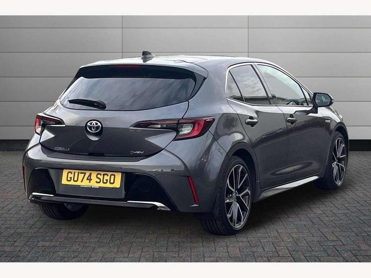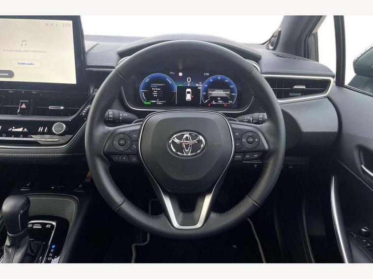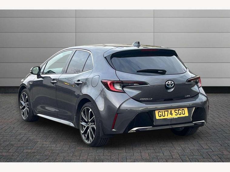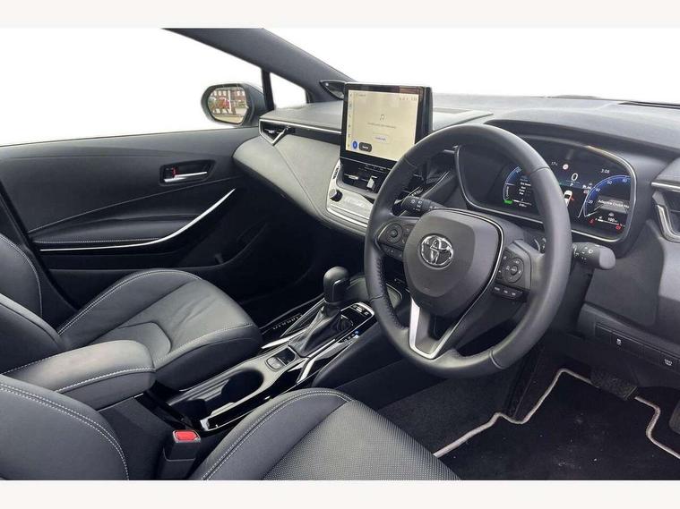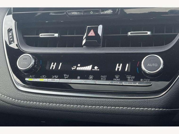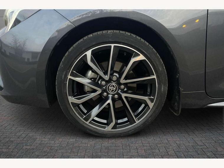 10.5" Multimedia display screen, Blind spot monitor and safe exit assist, Bluetooth telephone connectivity, Connected car functionality upgrade, tracker, remote status and e-care, Drive mode select (Eco, Normal), E-call, Electrically assisted power steering, EV drive indicator, Front and rear parking sensors with auto brake, Full Digital 12.3" TFT Digital Combimeter, Head up Display, Key reminder warning, Lane Departure Alert (LDA) switch on steering wheel, Memory on adjustable speed limiter, MyT connected services, Proactive driving assist (PDA), Rear cross traffic alert, Reversing camera, Smart entry and push button start, Smartphone integration with Apple CarPlay and wired android auto, Tailgate, Toyota remote services, Toyota smart connect navigation, Wireless charger, Gasoline particulate filter, Vehicle Stability Control (VSC), AM/FM radio, DAB Digital radio, Front USB-C in centre console, Front USB-C in dashboard, JBL Premium sound system with 8 speakers, Rear USB-C device charger, Smart voice assist/ Voice recognition, USB and Aux in connectors + 12V front outlet, Adaptive high beam system (AHS), Anti-jam protection on power windows, Auto headlight levelling system, Auto up and down function on all power windows, Automatic folding mirrors, Automatic headlights with high beam assist, Black centre and side air vents, Black metallic meshed front grille, Black toyota logo in front, Body coloured bumpers, Body coloured door mirrors, Body coloured front spoiler, Body coloured outside door handles, COROLLA alloy door scuff plates, Electrochromatic mirror, Follow me home headlights, LED daytime running lights, LED front fog lights, LED High mounted stop light, LED multi beam headlights, LED rear combi lights with LED lightguide, Noise reduction layer on windscreen, Piano black diffuser, Power adjustable heated door mirrors, Power front windows, Power rear windows, Privacy glass with UV filter, Rain sensing wipers, Rear bumper decoration with chrome plated inserts, Rear side wing doors, Rear under guard with chrome ornament, Rear window defogger, Rear window wiper, Reverse tilting door mirrors, Roof spoiler, Satin chrome insert on front air vents, Satin chrome insert on front door assist grips, Satin chrome inserts on rear passenger air vents, Shark fin antenna, Tailgate release with push button, Time adjustment on intermittent wiper, Turning signal integrated indicators in door mirrors, Unique grille pattern, Unique lower skirt, Unique side rocker with black insert, UV-filter on driver and passenger windows, 2 Shopping bag hooks in luggage compartment, 3 rear headrests, 3 seat bench in 2nd row, 3 spoke leather steering wheel with satin insert + gear knob, 4 tie down hooks in luggage compartment, 60/40 split folding rear seat, Adaptive cruise control (ACC) switch on steering wheel, Adjustable speed limiter switch on steering wheel, Audio, multimedia and telephone switches on steering wheel, Black armrest on centre console box, Black gear shift console, Boot light, Boot underfloor storage, Centre room light, Driver and front passenger personal light, Driver and passenger assist grip, Driver and passenger seatback pockets, Driver and passenger sun visor with mirror and light, Dual zone automatic air conditioning with ECO mode switch, Front and rear cup and bottle holders, Front door pockets, Front head restraints, Front passenger seat, Front sliding synthetic leather armrest, Heated seats, Illuminated entry system in room lamp, ISOFIX seat fixing (2 fixings on rear outer seats), Leather gear shift with satin chrome on gear shift console, Manual height adjustable for driver and front passenger seat, Manually tilt with sliding driver and front passenger seat, Nanoe-X air purifier, Paddle shifts, Parcel shelf, Perforated leather upholstery, Pollen filter, Power window switches with satin chrome inserts, Rear air conditioning, Rear armrest with 2 cupholders, Rear passenger coat hooks (2), Remote air conditioning, Satin chrome inside door handles, Satin chrome surround on heater control panel, Satin chrome surround on speedometer, Sliding armrest on centre console box, Slow opening glovebox with lights, Sports seats, Textile floor mats, Tilt/telescopic steering column, Voice recognition switch on steering wheel, Whiplash Injury Lessening (WIL) feature (active headrest) for seats, White ambient lighting on open tray and front cup holder, Toyota safety sense 3 pack - Corolla, 3x3 point rear seatbelts, Adjustable driver and front passenger seat belt extender to top anchor point, Anti lock braking system + Electronic brake force distribution, Brake assist function, Child locks on rear doors, Downhill Assist Control (DAC), Electronic parking brake, Emergency brake light signal (EBS), Front passenger airbag on/off switch, Front seatbelt reminder, HAC - Hill start assist control, Rear seat belt reminder, Seatbelt pretensioners and force limiters, Supplemental restraint system (SRS) 7 airbags - dual driver, dual side curtain, side impact and driver knee airbags, Traction control, Tyre pressure warning system, Acoustic vehicle alert system (AVAS), Alarm with motion sensor and immobilizer, Power passenger window lock, Remote central locking + deadlocks, Satin chrome dash trim, Soft touch texture on upper dashboard, Stitching on lower dashboard, Stitching on upper dashboard, 18" Dark grey machined face 5 double spoke alloy wheels, Tyre repair kit, Unique wheel finish with red wheel cap,