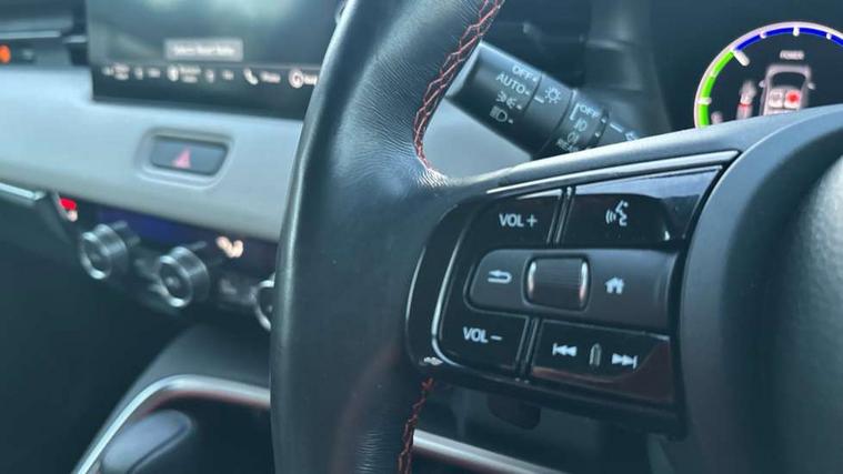 7" TFT instrument cluster, Adjustable speed limiter, Agile handling assist, BLIS (Blind Spot Information System) with Cross Traffic Monitor, Bluetooth hands free telephone connection, Drive modes select (Eco, normal and sport), eCall emergency system, Electric power steering, Emergency stop signalling system, Forward collision warning, Handsfree power tailgate with walkaway close, Honda CONNECT with navigation, 9" touchscreen, AM/FM/DAB/Apple Carplay and android auto, Honda sensing with blind spot information, adaptive cruise control and lane keep assist, Idle stop, Intelligent speed limiter, Low speed following, Rear parking sensors and rear view camera, Tachometer, Traffic sign recognition, WiFi connectivity, Wireless charger, Vehicle stability assist, 'Shark fin' mobile antenna, 2 USB sockets in rear, 2x USB Front socket (1 data & 1 charge), Premium audio system, Steering wheel mounted remote controls, Auto dimming rear view mirror, Auto headlight levelling, Auto high beam, Automatic coming home lighting, Automatic headlights, Automatic rain sensing wipers, Body colour bumpers, Body colour tailgate spoiler, Body coloured door handles, Electric front and rear windows, Electrically adjustable and heated door mirrors, Exterior and interior unique colour scheme (orange, white & blue accents), Front sequential turn, Front wiper de-icer, Headlight washers, Heated front windscreen, Heated rear window, High gloss side window surrounds, High level third brake light, LED cornering lights, LED daytime running lights, LED front fog lights, LED headlamps, Rear side wing doors, Rear wiper, Retractable/reverse auto tilt door mirrors, Roof rails, Smoked tail lights, Two tone roof, Variable front intermittent wipers, Windscreen shadeband, 3 rear headrests, 3 seat bench in 2nd row, 60/40 split folding rear seat, Ambient interior lighting, Cargo net hooks, Courtesy lights, Driver seat back pocket, Driver's seat height adjustment, Driver/passenger sunvisors with illuminated vanity mirrors, Dual automatic air conditioning, Front and rear map reading lights, Front head restraints, Front seat armrests, Heated front seats, Heated steering wheel, Isofix points, Luggage area under floor storage box, Magic seat flexibility system, Manual height/reach adjust steering wheel, Paddle shift controls, Passenger seat back pocket, Rear centre armrest, Rear ventilation, Single front passenger seat, Smooth leather steering wheel, Tonneau cover, Trunk cargo band, Trunk light, 3x3 point rear seatbelts, ABS+EBD+Brake assist, Anti-whiplash front headrests, Collision mitigation braking system, Collision mitigation throttle control, Deflation detection system, Dual front SRS airbags, Electric child locks, Electronic parking brake, Front and rear curtain airbags, Front and rear safety belts with Emergency Locking Retractor, Front side airbags, Hill descent control, Hill start assist, Low speed safety system, Passenger SRS airbag cut-off device, Regenerative braking system, Door deadlocks, Immobiliser, Keyless smart entry with push button start, Mirrors and windows key fob operation, Remote central locking with 2 remote folding keys, Security alarm, 18" Black cut alloy wheels, Tyre repair kit,