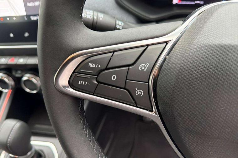 7" digital driver display, Apple car play/Android Auto, Cruise control + speed limiter, Driver attention warning, Easy link 7" touchscreen with built in navigation + Wifi smartphone integration plus, Eco mode driving function, Emergency call system, Front park assist, Front parking sensors, Lane departure warning system, Lane keep assist, Multisense 3 driving modes including ambient lighting, Over speed prevention, PAS, Rear park assist, Rear parking sensors, Rear view camera, Saftey shield [button for personalisation configuration of key ADAS features], Start/stop system, Traffic sign recognition, Wireless phone charger, 2 USB ports, Arkamys speakers - x6 inc. 2 boomer, 2 tweeter and 2 bicone, Bluetooth, 1x jack, 1x aux socket, DAB/FM Radio, Automatic headlights, Automatic windscreen wipers, Black auto folding wing mirrors with defrosting and temperature gauge and LED indicator, Body colour bumpers, Body colour door handles, Body colour F1 blade, Chrome insert on lower side doors, Chrome side window surrounds, Chrome upper grille, Electric rear windows, Electrically adjustable door mirrors, Electrochromatic rear view mirror with light and rain sensor - Black, Exhaust pipe, Exterior rear hidden door handles, Front and rear LED roof light x 2, Front fog lights, Full LED front and rear headlamps integrating daytime running lights at the front and rear, Heated rear windscreen, LED rear signature lighting, LED third brake light, One touch electric front windows, Rear brake light, Rear side wing doors, Rear wiper, Shark fin antenna, Tinted rear windows, 3 rear height adjustable headrests, 3 seat bench in 2nd row, 60/40 split and fixed base rear seat bench, Automatic air conditioning, Black armrests in door panel, Centre console armrest, Fabric upholstery, Floating console with storage, Height adjustable front headrests, Isofix system on outer rear seats, Mechanical height adjustable front seats, Power supply jack, Single front passenger seat, Sun visor without light, Synthetic leather steering wheel, 3 point seatbelts on all rear seats, ABS, Active emergency braking system - Urban and pedestrian/cyclist, Automatic emergency braking system with emergency brake assist, Child locks on rear doors, Curtain airbags, Distance warning alert, Driver and passenger airbags, Electronic brake force distribution, Electronic parking brake with auto hold, ESC (Electronic Stability Control), Front passenger airbag deactivation, Front side airbags, Height adjustable passenger seatbelt, Hill start assist, Seatbelt reminder, Tyre pressure monitor, 2x Black keys, Hands free key card with push button, start and stop function, RAID (Renault Anti-Intruder Device) automatic door locking, Superlocking, Dark interior roof trim, 17" Monastella Diamond Cut Alloy with grey/black Inserts,