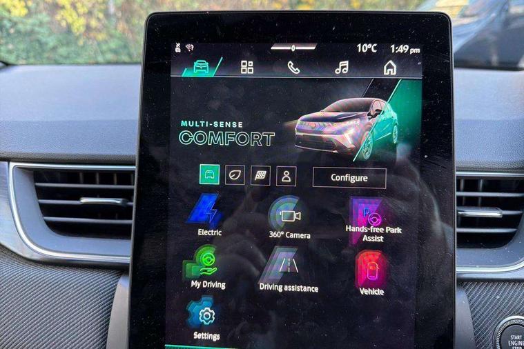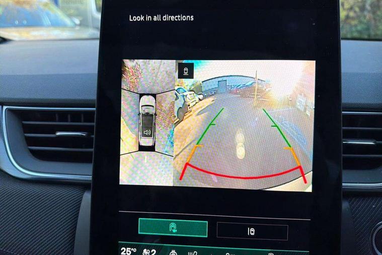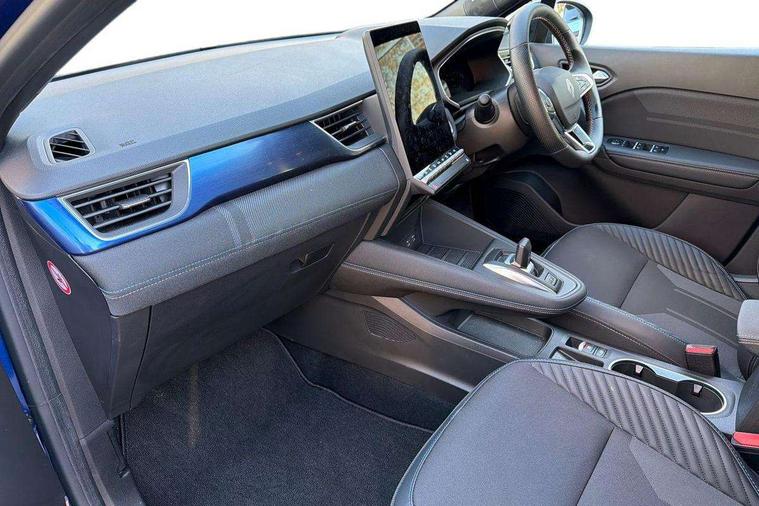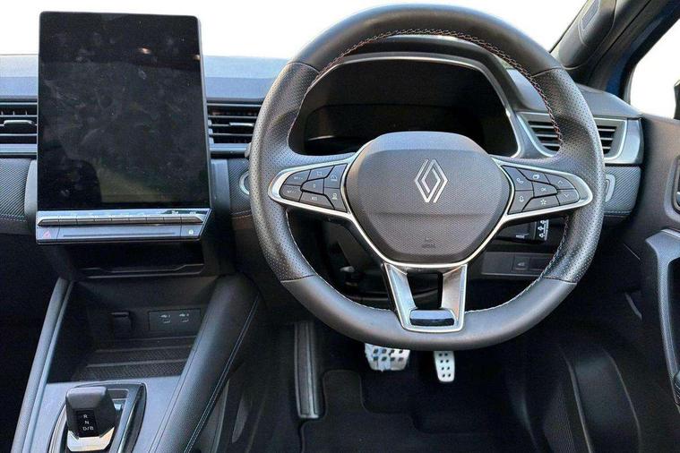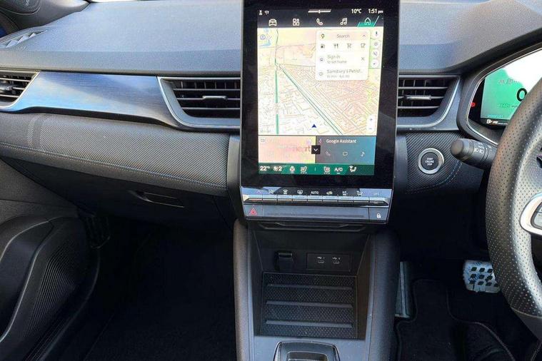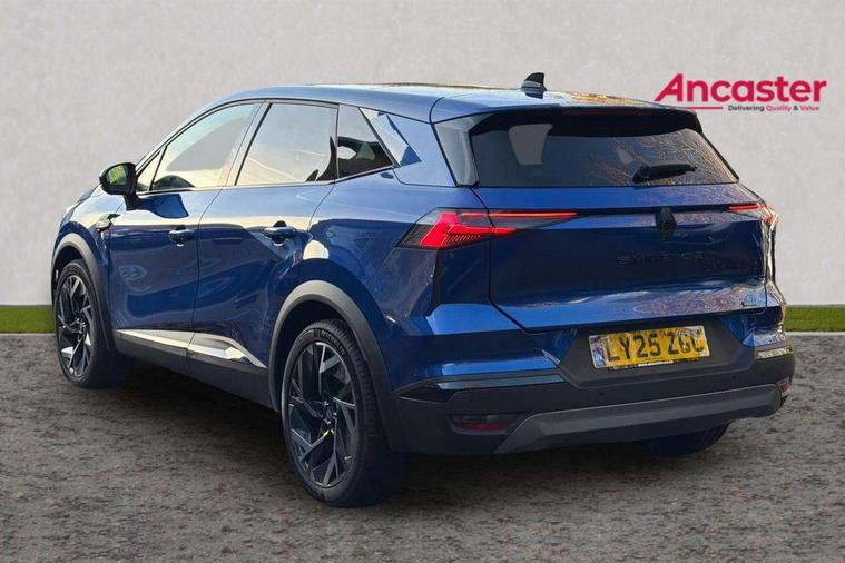 10.25" digital driver display, 10.4" OpenR link touchscreen with with built in Google Automotive Services, 9-speaker premium Harman Kardon audio system and navigation, 360 around view 3D camera, Adaptive cruise control with speed limiter, Blind spot warning and rear detection, Driver attention alert system, Eco mode driving function, Engine start button, Exterior temperature display, Front, rear and side parking sensors, Front/rear detection with emergency lane keep assist incl. solid line, oncoming traffic and road edge detection, Gear change indicator, Hands free parking, Internet access/wi-fi hotspot, Lane centering assist, Lane change warning, Lane departure warning, My safety switch - ability to personalise ADAS features at press of a button, PAS, Performance mode selector - multisense 4 driving modes (sport, comfort, perso and eco), Power hands-free tailgate opening, Qrescue, Rear cross traffic/pedestrian alert with rear braking assitance, Renault automatic emergency assist, Service interval indicator, Traffic sign recognition with overspeed prevention, Trip computer, Voice control for navigation system with built in google assistant, Wifi smartphone integration compatible with Apple CarPlay and Android Auto, Wireless phone charger, 2 front and 2 rear USB-C ports, DAB radio with Bluetooth, Automatic headlights, Automatic high / low beam, Automatic windscreen wipers with rain sensor, Dark tinted rear windows and tailgate, Electric adjustable/heated/auto folding door mirrors, Esprit alpine exterior styling, Frameless auto dimming rear view mirror, Front and rear electric windows with driver window one touch facility and anti pitch function, Front matte grey and rear skid plates, Full LED front and rear lights, Gloss black window surround, Heated rear window, LED daytime running lights, LED rear fog lights, LED third brake light, Matte grey F1 blade, Radiator grille with 3D graphics in black upper part with grey graphics and body tone lower part, Rear side wing doors, Rear wiper, Shark fin antenna, Solarbay opacifying panoramic sunroof, Twin reversing lights, 12v power outlet - front, 2 front roof LED lights and central rear rooflight with 3 reading LED lights, 3 seat bench in 2nd row, 48 ambient lighting colours, Aluminium sports pedals, Automatic air conditioning with one touch quick demist function and air quality regulator, Driver and front passenger seat with electric height adjustment, Esprit alpine interior styling, Flying console with central storage, sliding armrest and 2 rear air vents, Front and rear head restraints, Front seats manual lumbar adjustment, Heated front seats, Heated synthetic leather steering wheel, Height and depth adjustable steering wheel, ISOFIX child seat fixing points on rear outermost seats, Luggage compartment light, Modular boot floor, Multifunctional steering wheel, Rear seats - 1/3:2/3 foldable sliding bench, Recycled jacquard madama fabric upholstery, Single front passenger seat, Sunvisor with mirror and light, 3x3 point rear seatbelts, Abs with emergency brake assist, Active emergency braking system - Urban and pedestrian/cyclist, Adjustable driver and passenger safety seat belts, Approaching vehicle sound for pedestrians, Collision avoidance braking, Distance warning alert, Driver and front passenger and 3 rear passengers seatbelt reminder, Driver and front passenger, side, head and curtain airbags, Electronic parking brake with auto hold function, Electronic Stability Programme, Front passenger airbag deactivation, Front seatbelt pretensioners, Hill start assist, Occupant safe exit, Rear window and door child locking function, Tyre pressure warning light, Alarm/immobiliser, Hands free keycard with Keyless access and start, Locking wheel nuts, Remote central locking, Super locking system, Brushed blue decorative upper strip, Lower textile strip on dashboard with red, white and blue flag, 19" Esprit alpine elixir alloys wheels,