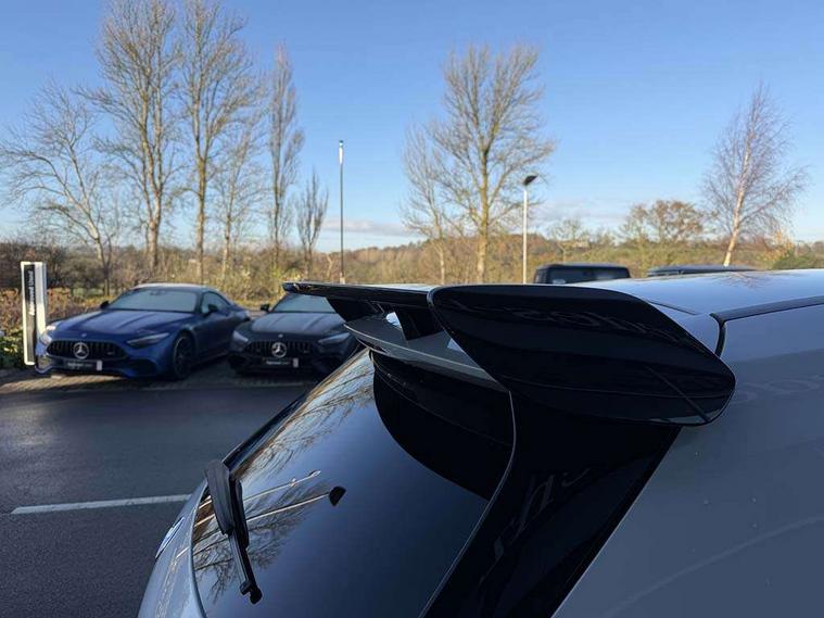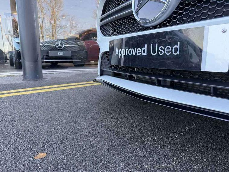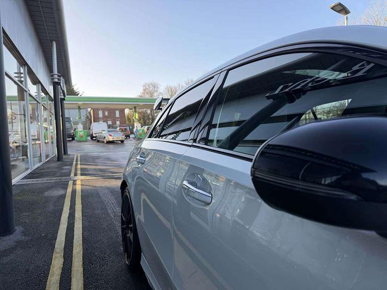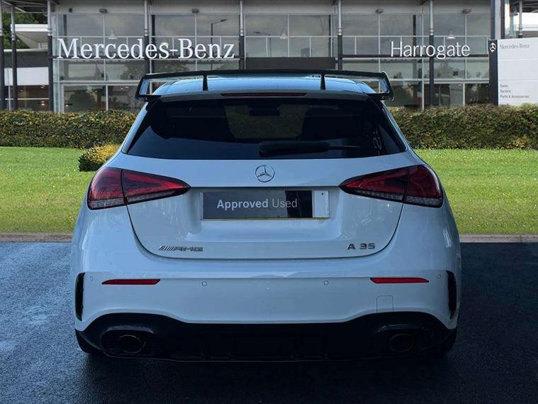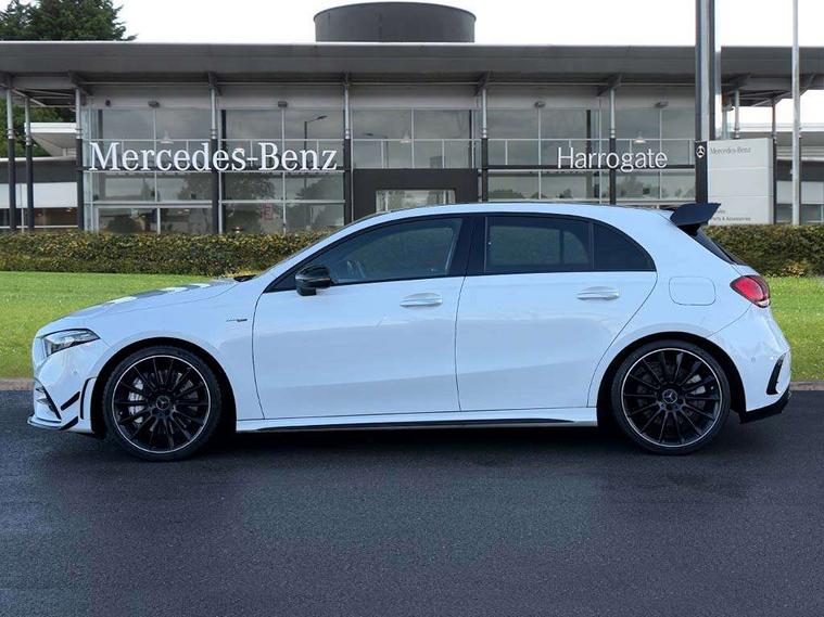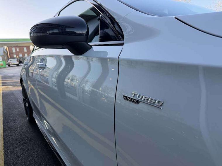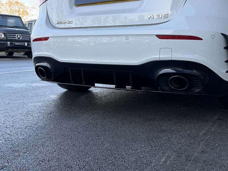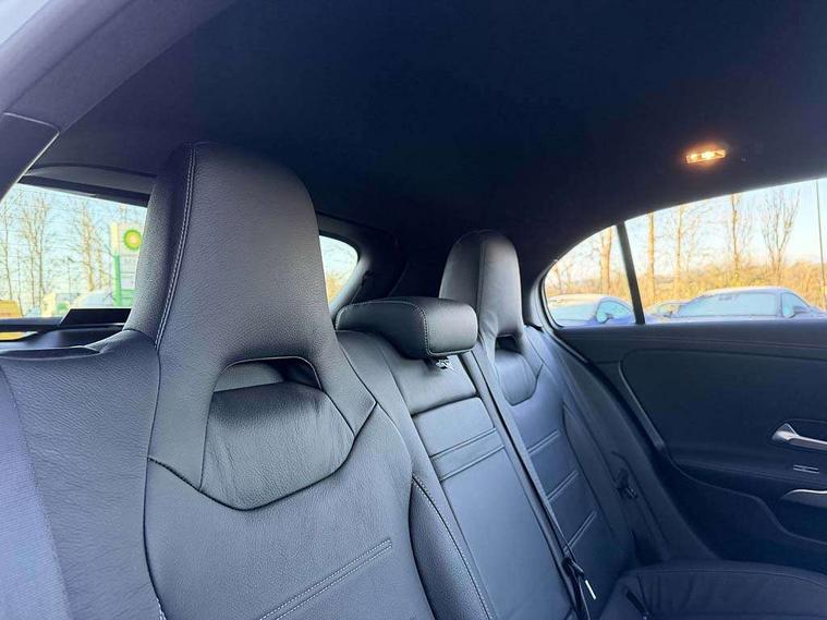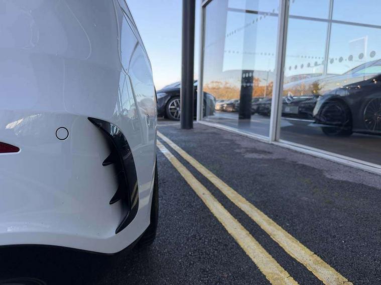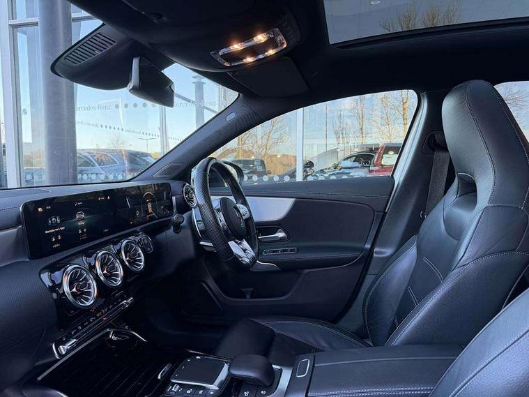 10.25" Digital instrument cluster display screen, 10.25" media display, 180 degree rear view camera with parking guidelines, Active parking assist with visual and audible warning of detected obstacles, Attention assist, Brake pad wear indicator warning light, Car wash mode, Cruise control + speed limiter, Direct steering, Dual bluetooth interfaces, DYNAMIC SELECT with driving programs (Slippery, Comfort, Sport, Sport+ and Individual), ECO start/stop function, Fluid level warning indicator for fuel, oil, coolant and washer fluid, Hard-disk navigation, Hey Mercedes Voice activation, Lamp failure indicator, Lane keeping system, Mercedes me connect including emergency call system, accident recovery, breakdown and maintenance management, Mercedes me remote services, Outside temperature gauge, Owners manual in English, Pre-installation for private car sharing, Preinstallation for Mercedes Benz link, Service indicator (ASSYST), Smartphone integration with Apple CarPlay and Android auto, Speed limit assist, Speed sensitive power steering, Traffic sign assist, Trip computer, Ultrasonic sensors positioned in the front and rear bumpers, AMG performance suspension, Rear axle multi-link, Suspension with adaptive damping system, 2 USB ports (type C) in rear stowage compartment and one in front of center console, 6 speakers, DAB Digital radio, MBUX multimedia system with DAB digital radio and touchpad including satellite navigation, Mercedes-Benz sound system - 100W, 4 Electric Front and Rear windows, Adaptive brake lights, AMG bodystyling - Front apron with splitter in chrome, rear apron with chrome trim and chrome visible trim elements in tailpipe, AMG Front apron with flics as air deflector elements on the outer air intakes, AMG radiator grille with twin blade lamella and AMG Lettering, AMG Rear apron with specific diffuser look with four vertical fins and two round chrome plated tailpipe trim elements with a diameter of 90 mm, AMG spoiler lip on roof, AMG Sports exhaust system with two round tailpipes measuring 90 mm in diameter attached in rear apron, AMG lettering plus ribbing on the inside of the, Automatic headlights, Black weather strip, Body colour bumpers, Body colour door handles with chrome inserts, Body colour side skirt, Electric adjustable and heated door mirrors with integrated LED side indicators, Front wings wheel arches with TURBO 4MATIC lettering, Headlamp assist automatic headlamp activation, Heated glass rear windscreen + timer control, LED daytime running lights, LED High level third brake light, LED tail lamp, Multibeam LED headlights with adaptive highbeam assist plus, Panoramic sliding sunroof, Privacy glass, Radio aerial, Rain sensing windscreen wipers with two sensitivity settings, Rear fog lights, Rear side wing doors, Rear wiper, Trim elements on louvres in outer air inlets in high gloss black, Wider wheel arches for AMG wheels, 3 seat bench in 2nd row, 40:20:40 split folding rear seats, AMG Performance steering wheel in nappa leather, Auto Mercedes-Benz child seat recognition sensor, Black air vents with surround in silver chrome, Black roof lining, Brushed stainless steel sports pedals with rubber studs, Controller on centre console with chrome surround, Electrically adjustable front memory seats including lumbar support, Floor mats with AMG lettering, Front centre armrest with storage compartment, Front seat backs luggage nets, Heated front seats, Height/reach adjustable steering column, Illuminated AMG front door sills with changeable cover, Interior lighting - 64 colour Ambient lighting, Interior mirror with reading lamps in black and frameless, Rear armrest with 2 cupholders, Rear head restraints, Seat occupancy sensor for front passenger seat, Silver coloured aluminium gear shift paddles on steering wheel, Single front passenger seat, Sports seats with integrated headrests, Stowage compartment in centre console with retractable cover, Sunvisors with illuminated vanity mirrors, Touchpad on center console, Twin front cupholders, Two zone thermotronic luxury automatic climate control, Aerodynamic pack - A Class, AMG night pack - A Class, Light and sight pack - A Class, Mirror package - A Class, Seat comfort pack - A Class, 3 rear 3 point seatbelts, ABS with Brake Assist, Active bonnet, Active brake assist includes forward collision warning system with autonomous braking, Adaptive brake assist with hold function and hill start assist, Black seatbelts, Childproof locks manually operated for rear doors and electrically operated for rear power windows, Crash responsive emergency lighting, Driver and passenger head and side airbags, Drivers knee airbag, Dual stage driver/passenger airbags, Electronic parking brake, ESP curve dynamic assist, ESP with ASR, Front and rear seatbelt reminder, Front brake calipers with AMG lettering, ISOFIX and top tether child seat fixing points in two outer rear seats, Perforated front brake discs, Tyre pressure monitoring system, Warning triangle and first aid kit, Window airbags, Alarm system/interior protection/immobiliser, Keyless entry lock/unlock, Keyless Go, Remote central locking and crash sensor with emergency opening function, Urban guard vehicle protection system with immobiliser and interior protection, Light aluminium with longitudinal grain interior trim, 19" AMG multi-spoke matt black painted light alloy wheels with high sheen finish, Summer tyres, Tirefit sealant kit,