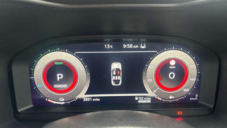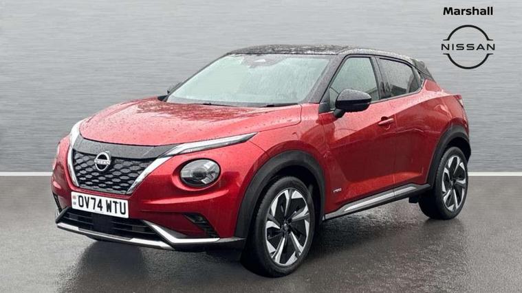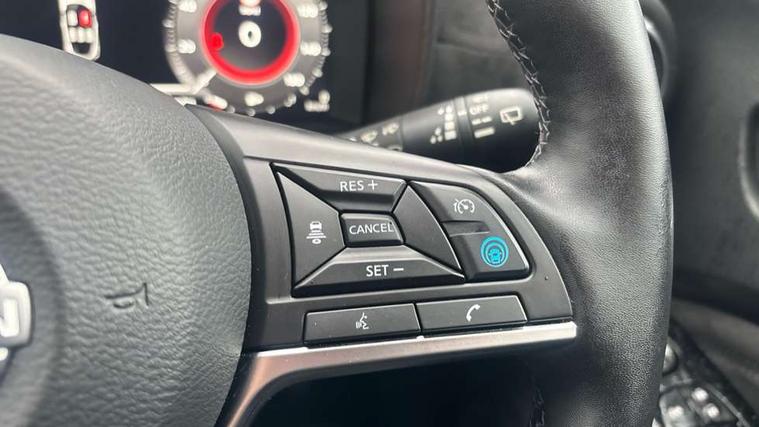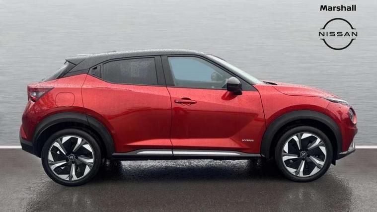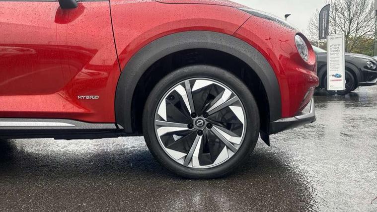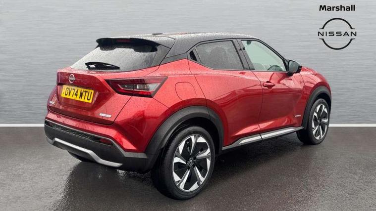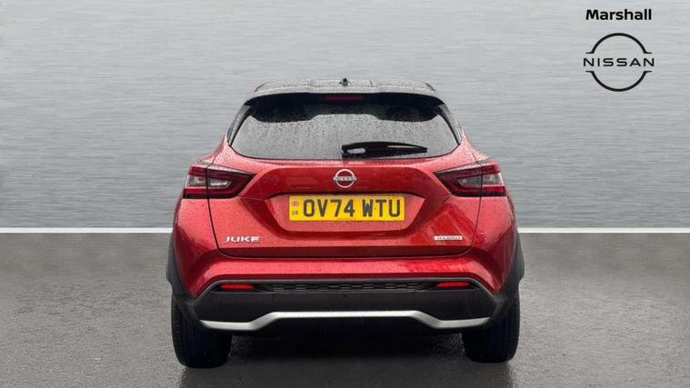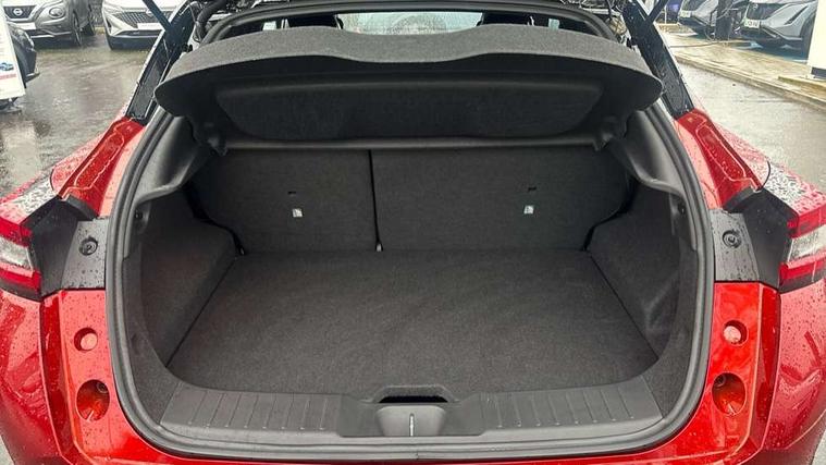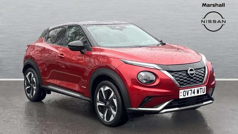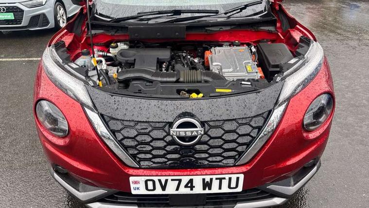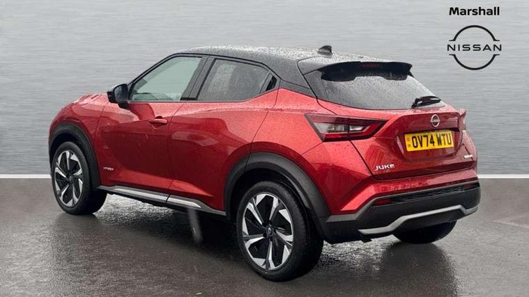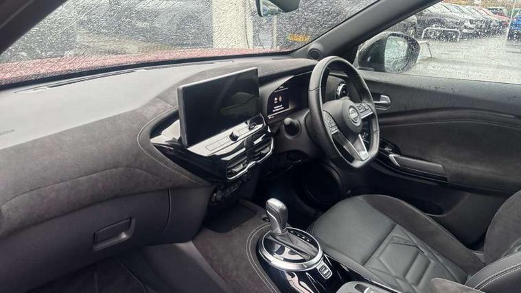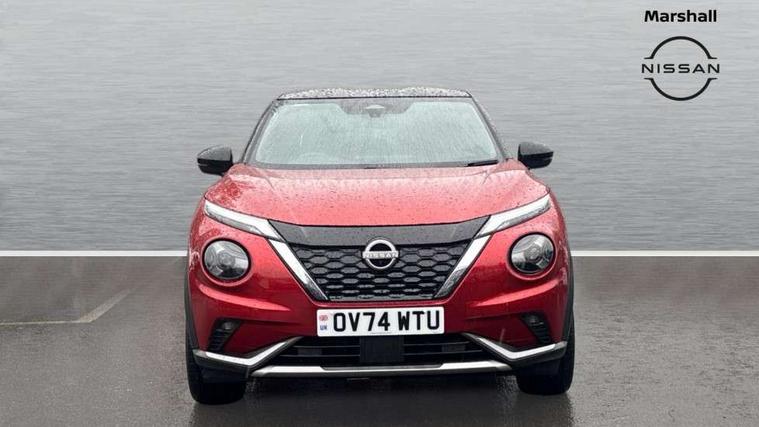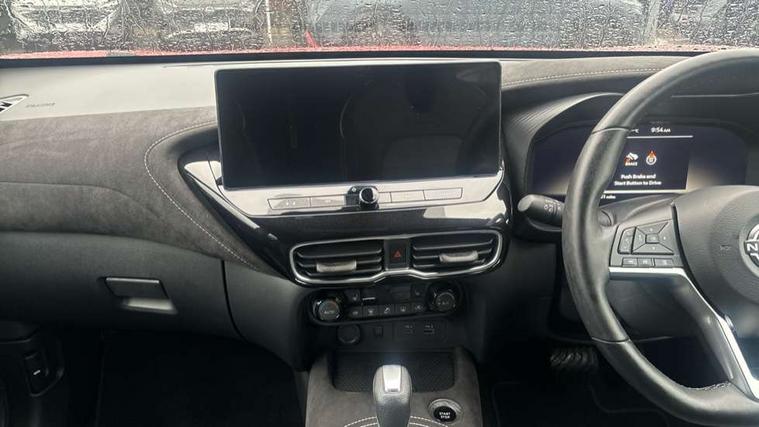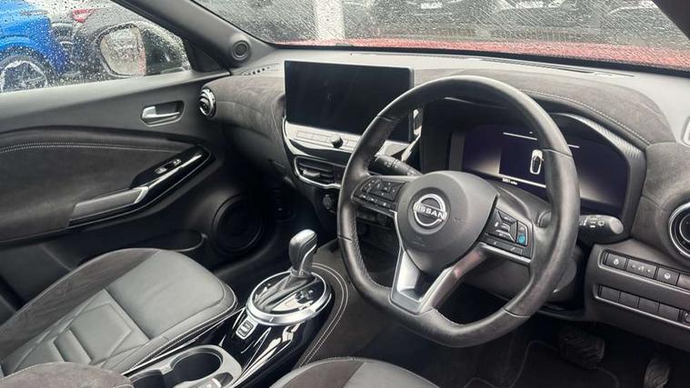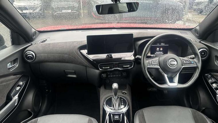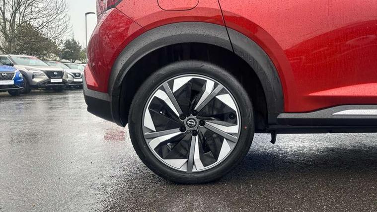 12.3" full colour TFT screen combimeter, Drive modes select (Eco, normal and sport), e-Pedal step, Emergency and breakdown call, EV mode switch, Front parking sensor, Intelligent driver alert system, Intelligent lane intervention, Lane departure warning system, Nissan connect 12.3" touch screen entertainment system, Nissan connect nav with TomTom traffic, Nissan connect services, Outside temperature sensor, Power Steering, Rear parking sensor, Stop/start button, Traffic sign recognition, Trip computer, Voice recognition, WiFi connectivity, Wireless Apple CarPlay and Google Android auto, Wireless Smartphone charger, 10 Bose speakers 6 speakers and 2 headrest speakers for driver/passenger seats, 2 X Rear console USB port, Bluetooth system, USB, Aux-in and 12V socket, Bose personal sound stage control, DAB Digital radio, Auto dimming frameless rear view mirror, Automatic hazard signal with emergency stop signal, Body colour door handles, Electrically adjustable door mirrors with integrated indicators, Follow me home headlights, Front and rear electric window with one touch driver window, Heated and auto folding door mirrors, High beam assist, LED 3rd brake light, LED daytime running lights, LED front fog lights, LED headlamps, LED rear fog lamp, LED rear lamps, One touch passenger window, Rain sensor windscreen wipers, Rear privacy glass, Rear side wing doors, Rear wiper, Roof spoiler, Shark fin roof antenna in solid Black, Three blink turn signal, 3 height adjustable rear headrests, 3 seat bench in 2nd row, 60/40 split folding rear seat, Automatic climate control, Card holder on driver sunvisor, Door ambient lighting, Driver seat back pocket, Driver side rear coat hanger, Driver/passenger sunvisors and vanity mirrors, Front and rear cabin lights, Front armrest, Front door pockets with bottle holders, Front head restraints, Front/rear passenger grab handles, Gear console ambient circle lighting, Height adjustable driver's seat, Internal chrome door handles, Leather gearshift knob, Luggage board, Luggage space lighting, Monoform sporty seats, Multifunction steering wheel, Passenger seat back pocket, Rear door bottle holders, Single front passenger seat, Smooth synthetic leather steering wheel, Synthetic leather kneepad, Telescopic steering wheel adjustment, Two cupholders in front centre console, Two rear isofix child seat anchorage points with top tether, Welcome light and console tray ambient lighting, Heat pack with height adjustable passenger seats - Juke, Interior personalisation pack - Juke, ProPilot pack - Juke Auto, Satin grey exterior personalisation pack - Juke, ABS with EBD and brake assist, Active ride control, Active Trace Control, Driver and passenger airbags, Driver and passenger side airbags, Electric handbrake with auto hold function, Electronic Stability Programme (ESP), Front and rear curtain airbags, Height adjustable seatbelts, Hill start assist, Intelligent emergency braking with pedestrian and cyclist recognition, Rear door child safety locks, Seatbelt reminder for driver/front passenger and rear seats, Three 3 point rear seatbelts, Traction control, Tyre pressure monitoring system, VDC Dynamic Vehicle Control, Alarm, Immobiliser, Intelligent key and start push button with walk away lock and approach unlock functions, Remote central locking, 19" Aero alloy wheels, Tyre puncture repair kit,