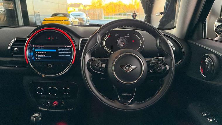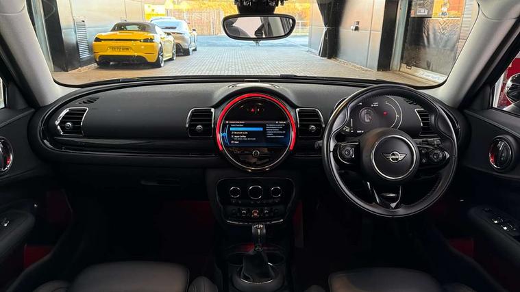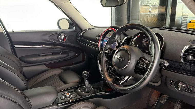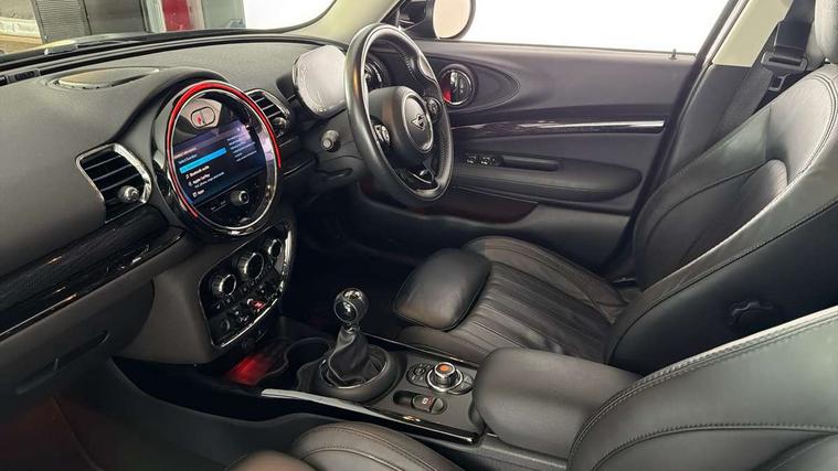 Active Guard incl speed limiting and lane departure functions with auto steering, and front collision warning with brake intervention, Automatic start/stop function with brake energy recuperation, Compatible mobile phone bluetooth with audio streaming, Digital cockpit, Electro-mechanical speed dependant steering assistance, Instrument cluster, Mini E-call, MINI TeleServices, On board computer, 6 Speed manual transmission including gear change indicator display, Double Vanos system, Fully variable valve control, High precision injection, FM tuner and DAB digital radio, Body colour fuel filler cap, Chrome line exterior, Chrome lower front grille grating, Chrome radiator grille bars, Door sill strips, Dynamic brake lights, Electric windows, Exhaust tailpipe, Heated rear window, Heated windscreen washer jets, LED headlights with closed ring as daytime driving lights, LED rear light with union jack design, Left exhaust tailpipe with chrome finisher, Model logo, Model logo on rear doors, Rain sensor with auto headlights, Rear fog lights, Rear window wiper, Side scuttle panel with integrated indicator, Split rear doors, Sun/heat protection glass, White indicator lenses, 12V Accessory socket in centre console, 360L luggage compartment capacity, 4 lashing eyes in luggage compartment, 60/40 split folding rear seat, Chrome air vents, gear lever base and door handles, Chrome interior highlights, Cupholders, English handbook, Front and rear head restraints, Glove compartment, Height and length steering column adjustment, Interior lighting with 12 basic colours selectable via toggle switch in roof, Isofix rear child seat preparation, Leather gearshift lever and handbrake gaiters, LED reading lights, vanity mirror lights, front foot well light and spotlight on front seats, Manual air conditioning, MINI Yours fine walk nappa leather steering wheel with contrast stitching in silver and MINI Yours badge, Multifunction steering wheel, Storage compartments in doors, Sunvisors with vanity mirrors, Toolkit, Excitement pack - Clubman, Navigation pack - Clubman, 2 tone horn, 3 point seatbelts on all seats, 6 Airbags - front, side, head and seat belt tensioners, Anti-lock braking system (ABS), DSC - Dynamic Stability Control, Electronic handbrake, Front and rear disc brakes, Tyre pressure monitoring system, Alarm system with tilt sensor, monitoring doors, bonnet interior and tailgate, Auto drive away locking, Deadlocking function, Electronic vehicle immobiliser, Locking wheel bolts, Start/stop toggle with keyless go, Chrome line interior,
