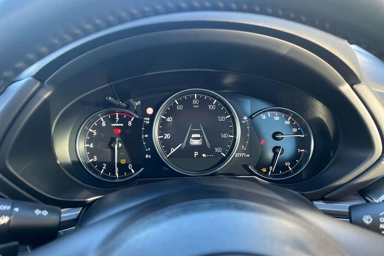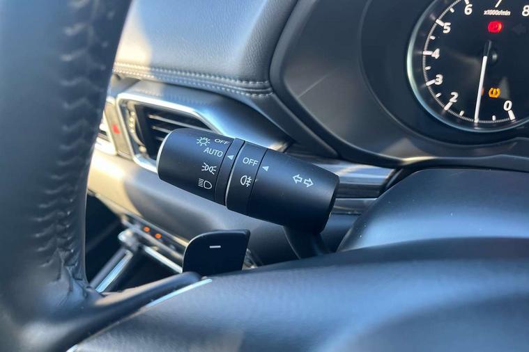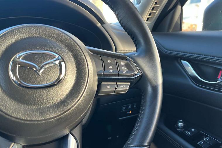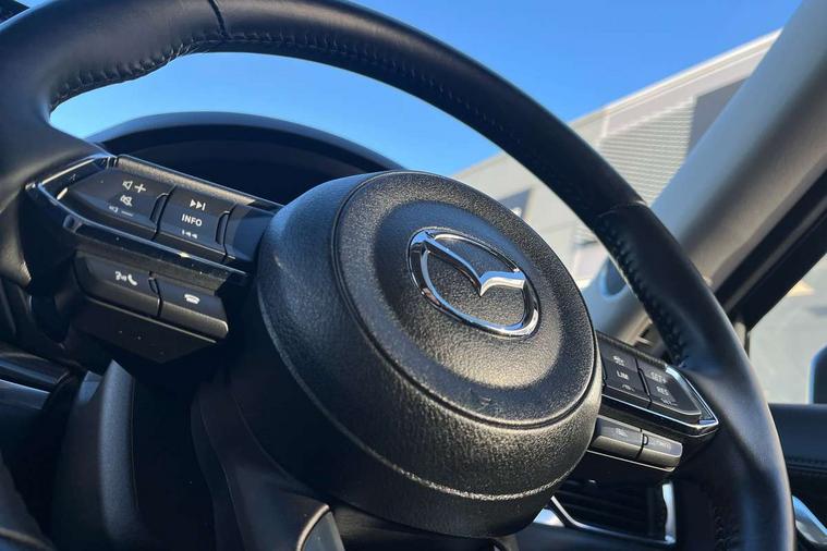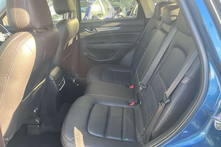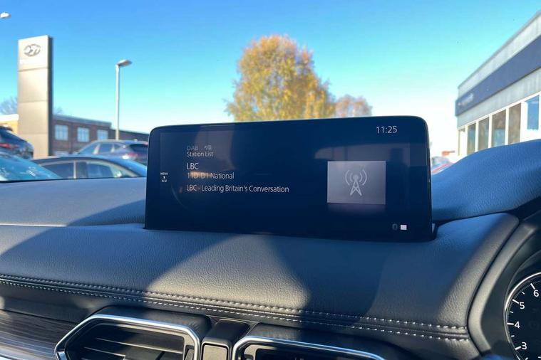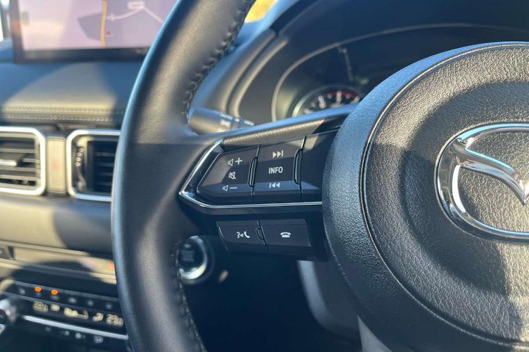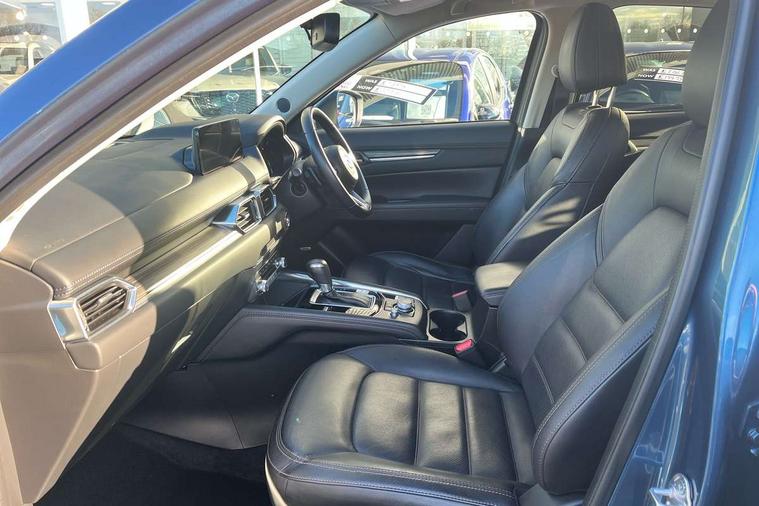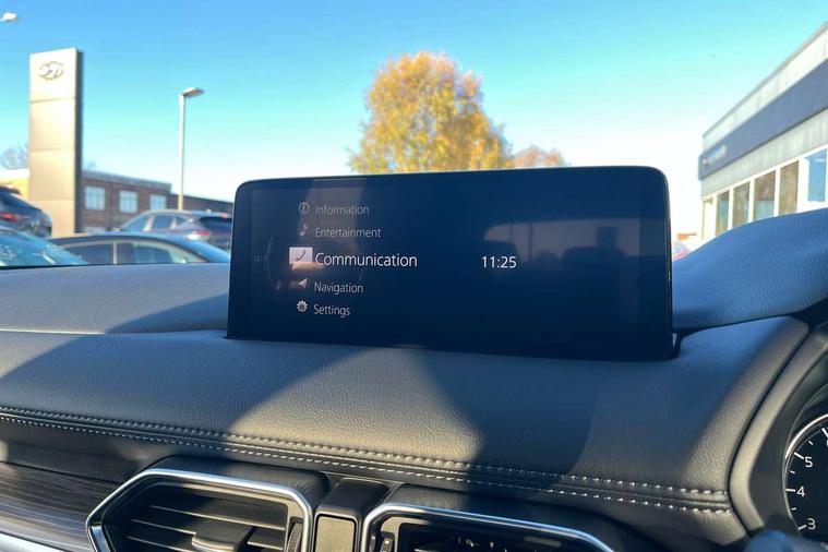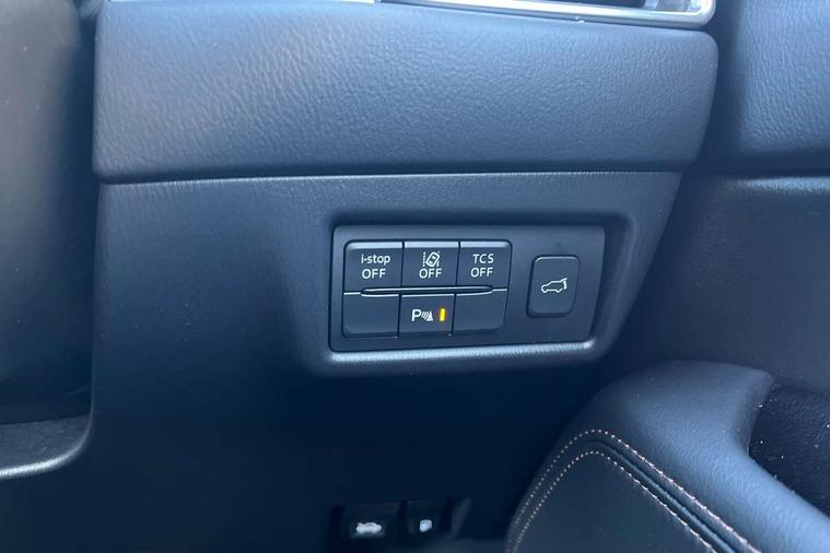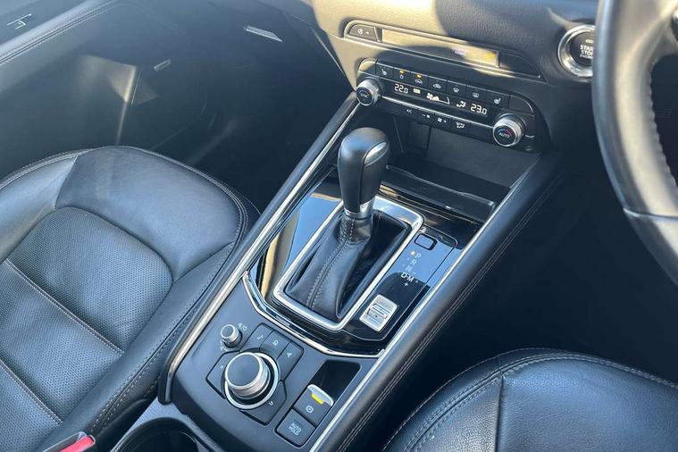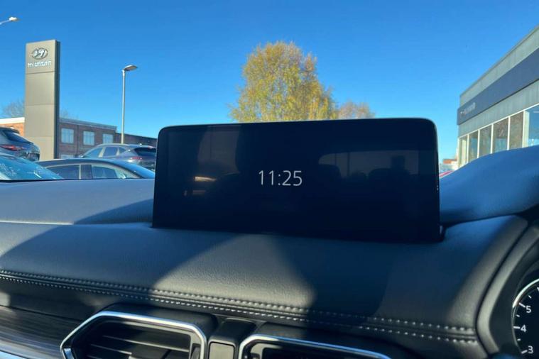 10.25" display with Mazda Connect infotainment, 7" colour TFT display, Apple car play/Android Auto, Blind spot monitoring with rear cross traffic alert, Bluetooth connectivity with voice control, Collision prevention assist, Connected services, Cruising Traffic Support, Drive mode selector, Electric power steering, Emergency stop signalling system, Engine start/stop button, Forward collision warning, Front and rear parking sensors, Integrated navigation system, Intelligent speed assist, Lane departure warning system, Lane keep assist, Qi wireless phone charging, Radar cruise control with Stop and Go, Reversing camera, Service indicator, Traffic sign recognition (TSR), Trip computer, Windscreen projected colour active driving display (HUD) with memory, i-stop, 2 USB sockets in rear, 2x USB sockets in front, AM/FM radio, Bluetooth audio streaming, Bose premium sound system with 10 speakers, DAB Digital radio, Multimedia Commander including separate volume dial, Steering wheel mounted audio controls, Adaptive front lighting system, Auto dimming rear view mirror, Automatic headlights, Black inlay dashboard panel, Body colour door mirrors, Body colour roof spoiler, Body coloured front and rear black lower bumper mouldings, Bright finish signature wing, Coming/leaving home lighting function, Door mirror integrated indicators, Dual chrome tailpipes, Dusk sensitive headlamps, Electric front/rear windows with one touch auto up/down, Front grille in gloss black finish, Gloss black B and C pillars garnish, High beam assist, Intermittent rear wash/wipe, LED auto levelling, LED daytime running lights, LED front fog lights, LED Headlights, LED third brake light, Power folding and heated door mirrors, Power tilt/slide sunroof, Privacy glass (rear side windows only), Rain sensing front wipers, Rear side wing doors, Satin black side mouldings, Scuff plates, Shark fin antenna, Signature LED rear combination lights, Vinyl with wood grain metal inlay door trim panel, Windscreen wiper de-icer, 12v electrical power outlet, 3 seat bench in 2nd row, 3 stage heated front seats, 40:20:40 Karakuri fold-flat seat system, 6 way electric adjustable passenger seat, 8 way electric driver seat with lumbar support + memory, Cargo room flat floor board with waterproof undertray, Driver seat power slide, recline and height adjustment, Driver, Front passenger and two rear grab handles with coat hooks, Driver/passenger front seatback pockets, Driver/passenger sunvisors + illuminated vanity mirrors (drivers with ticket holder), Dual zone climate control, Folding centre armrest with 2 cup holders, Front and rear door pockets, Front centre storage with two cupholders, Front passenger seat power slide, recline and height adjustment, Heated steering wheel, Humidity sensor, Illuminated glovebox, Interior dome light with integral spotlight, ISOFIX child seat anchorage points attached on outer rear seats, Karakuri tonneau cover, Leather upholstery, Leather wrapped steering wheel and gear knob, Light roof lining, Luggage compartment LED lighting, Luggage compartment power outlet, Paddle shifts, Rear air vents, Rear headrests, Rear seat recline, Roof mounted sunglasses holder, Single front passenger seat, Three height adjustable head restraints, Tilt/height adjustable steering wheel, White interior LED illumination lighting, 3 point front seatbelts with pre-tensioners, 3 rear 3 point seatbelts, ABS, Advanced Smart City Brake Support - SCBS, Child locks on rear doors, Driver and front passenger side airbags, DSTC-Dynamic Stability and Traction Control, Dual front airbags, Electronic brake force distribution, Electronic parking brake with auto hold, ESP, Front and rear curtain airbags, Front passenger airbag deactivation, G-Vectoring control, Hill hold assist, Seatbelt reminder front and rear, Single stage passenger airbags, Smart brake support with forward obstruction warning, Tyre pressure monitoring system, Automatic door locking when moving off, Deadlock, Immobiliser, Power door locks, Remote central locking, Smart keyless entry, Thatcham Cat.1 alarm, 19" diamond cut black alloy wheels, Tyre repair kit,