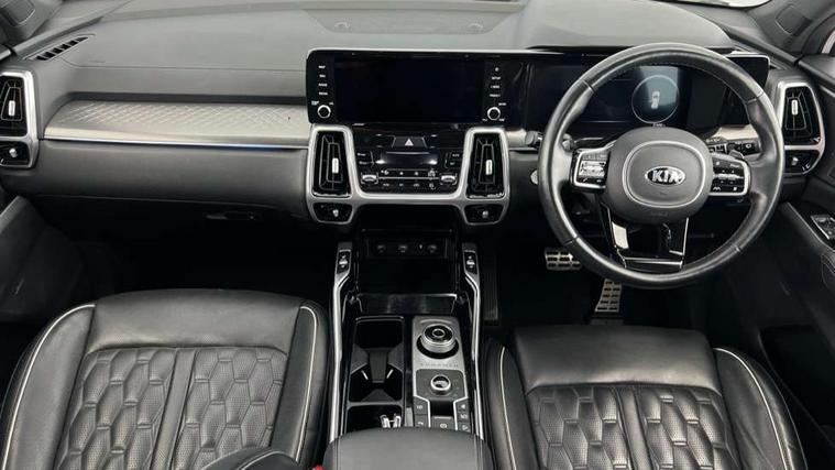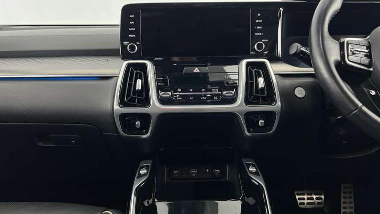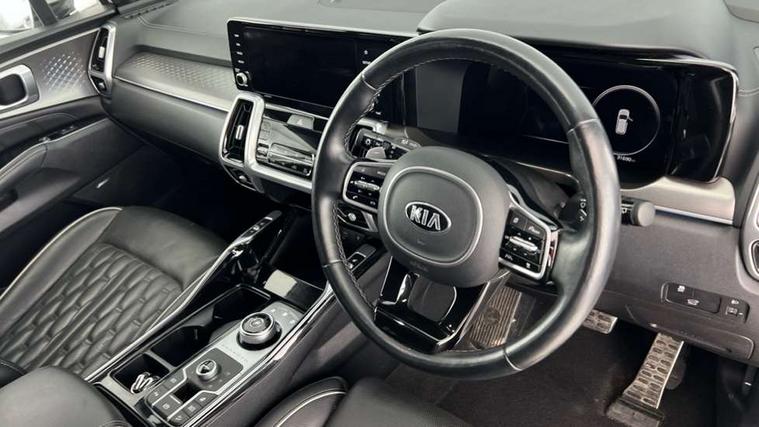 10.25" Touchscreen Satellite Navigation with DAB, 360 degree around view monitor, Apple car play/Android Auto with voice control, Blind spot collision avoidance assist, Blind spot monitor camera, Customisable Head Up Display, Digital cockpit, Drive mode selector, Driver attention warning, eCall emergency system, Emergency stop signalling system, External temperature gauge, Forward Collision-Avoidance Assist (FCA) - City/Pedestrian, Front parking sensors, Highway Driving Assist (HDA), Intelligent speed limit assist, Lane follow assist, Manual speed limit assist (MLSA), Parking collision avoidance assist (PCA), PAS, Rack mounted power steering, Rear parking sensor, Reversing camera system with dynamic guidelines (Integrated into centre fascia screen), Smart cruise control with stop and go functionality, Smart power tailgate, Telematics system with UVO connect services, Trip computer, Wireless Smartphone charger, Intelligent All-wheel drive, Self levelling rear suspension, Terrain mode select (Mud, Snow, Sand), Bose premium sound system with 12 speakers and subwoofer, Multi device Bluetooth connection with voice recognition and music streaming, Radio/MP3 player, Steering wheel mounted audio controls, USB port for connection of a media device, All round electric windows auto up/down function, Auto dimming rear view mirror, Automatic defog system, Automatic headlights control, Black side sill and wheel arch body mouldings, Body colour door mirrors, Body coloured bumpers, Electrically folding/adjustable/heated door mirrors with LED indicators, Exterior grab door handles, Front and rear silver skid plates, Gloss black radiator grille, Headlamp levelling, Heated rear window, Heated rear windscreen, LED Bi-Function headlights, LED daytime running lights, LED front fog lights, LED High-mounted Brake Light, LED rear combination lights, LED rear fog lights, Panoramic sunroof with tilt/slide function and automatic electric roll blinds, Privacy glass, Rain sensing front wipers, Rear spoiler, Roof rails, Satin chrome exterior door handles, Trailer stability assist, Windscreen Washer Level Warning, 1 x 3rd Row USB charge port, 10 way power adjustable driver seat with 4 way electric lumbar support and integrated memory system, 2 x 2nd Row USB charge port, 2 x Front row USB charge port, 2nd row window blinds, 3 x passenger assist grips, 50/50 split/folding 3rd row of seats, 60:40 split remote folding and reclining 2nd row seats, 8 way power adjustable front passenger seat with 2 way electric lumbar (sliding, reclining, tilt, height), Air conditioning for 3rd row of seats, Ambient lighting, Center fascia premium etching, Centre console cupholder, Centre console storage box and armrest, Cupholders in rear armrest, Door scuff plate, Dual zone automatic air conditioning, Front and rear door storage, Front cabin LED lights with sunglass holder, Front seat and rear pockets, Gearshift paddles, Heated front seats, Heated steering wheel, Height adjustable head restraints, Illuminated glovebox, Interior door lock/unlock function, ISOFIX Child seat top tethers and anchor fixings, Leather trimmed steering wheel, Light grey headlining, Load area cover, Luggage area LED light, Luggage net hooks, Metal pedals, Nappa leather upholstery, Outer 2nd row heated seats, Passenger walk-in switch, Rear air vents, Rear centre armrests, Sunvisors with vanity mirror illumination (Driver and front passenger), Tilt/telescopic adjustable steering wheel, Ventilated front seats, 3 point seatbelts on all seats, ABS/EBD, Active front headrests, Downhill brake control, Electronic parking brake with auto hold, Electronic stability control, Front center airbag, Front passenger airbag cut-off switch, Front seatbelt pretensioners, Height adjustable front seatbelts, Hill start assist control (HAC), Impact sensing auto door unlocking, Multi collision brake assist, Rear door child safety locks, Twin curtain airbags, Twin front airbags, Twin front side airbags, Tyre pressure monitoring system, Advanced anti theft alarm system, Deadlocks, Engine Start/Stop Button with Smart Entry System, Immobiliser, Locking wheel nuts, Visible vehicle identification number, 19" Alloy wheels, Temporary spare wheel (space saver),