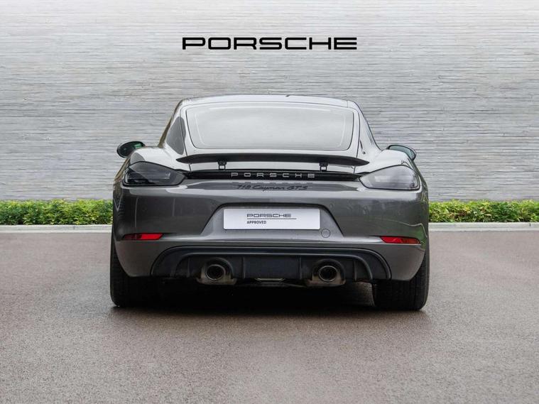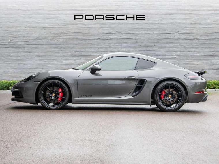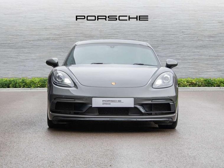 Auto start and stop system, Digital displays for vehicle speed, chosen gear, odometer, trip odometer and clock, Instrument cluster with central rev counter and high-resolution 4.6 inch colour display, Porsche Communication Management (PCM) including online navigation module, mobile phone preparation, audio interfaces and voice control system, 64 litre fuel tank, Aluminium block and cylinder heads, Central cooler, Closed underbody panelling, Direct fuel injection (DFI), Dynamic gearbox mount system, Gasoline particulate filter, Integrated dry-sump lubrication with an on-demand oil pump, Porsche Doppelkupplung (PDK), Porsche Stability Management (PSM) with ABS, advanced brake functions, Porsche TORQUE Vectoring (PTV) with mechanical rear differential lock, Rear wheel drive, Two seater vehicle with mid mounted engine, Two three-way catalytic converters and on-board diagnostics for monitoring emission control system and coated particulate filter, Variable intake manifold with two switchable resonance valves, VarioCam (camshaft control for inlet and exhaust valves) and adaptive cylinder management, Water cooled with thermal management, DAB Digital radio, Integrated 4G/LTE compatible SIM including data for the Porsche Connect Services, Integrated compatible SIM including Porsche Connect Services, Navigation incl porsche + Apple Carplay, connect module, wireless internet access, carfinder, remote vehicle status, remote service and vehicle track, Wifi and music streaming, Automatic headlight activation including welcome home lighting, Automatically extending rear spoiler, Body colour bumpers, Body colour door handles, Electrically adjustable heated exterior mirrors on door waist rails, aspherical on driver's side, Green tinted heat insulating glass, Grey top tinted windscreen, Heated rear windscreen, Intelligent lightweight body in Aluminium/Steel composite construction, LED taillights and integral 4 point brake lights and reversing lights, Power windows with one touch operation and door seal protection, Separate tinted auxiliary lights in the front end with LED indicators and position lights, Side air intakes with two grilles in black, Specifically designed GTS front and rear aprons partially painted in black, Twin tract sports exhaust system with two tailpipe in stainless steel high gloss black, Wide opening rear hatch with heated screen, Windscreen washer system with two wiper speeds and washer jets, 12V sockets in passenger footwell and centre console storage compartment, 718 logo on gear lever, Additional smooth finish leather with door panel armrest and centre console main storage compartment, Adjustable fan with air recirculation and defroster functions, Ascending centre console with uncovered storage compartment and closed storage compartment, Clothes hooks on front seat backrests, Footwell illumination, Front and rear luggage compartments, Front headrests, Heated seats, LED reading lights, orientation, ignition lock, additionally luggage compartment and glove compartment lighting, Lockable glovebox, Seat centres in race tex, side bolsters, headrests in leather and headrests embroidered with GTS logo in black, Storage compartments in each doors, Two individual cup holders (Passenger side, integrated into dashboard trim strip), Sport chrono package including mode switch - Cayman, 3 point automatic seatbelts, ASR, Electrically controlled parking brake, Front and rear lightweight spring strut axle, Front seatbelt pretensioners + load limiters, Full size driver and passenger airbags, Passenger airbag deactivate switch, Porsche side impact protection doors with thorax airbag in outer backrest side bolster and head airbag for driver/passenger in door panel, Tyre pressure monitoring system, Alarm system with interior surveillance, Anti-theft wheel bolts, Engine immobiliser with in key transponder, central locking and remote control, Wheel centres with full colour Porsche crest,