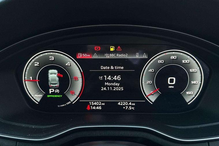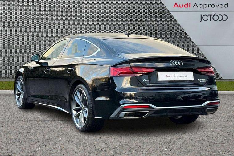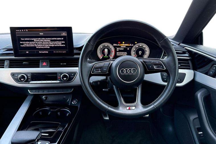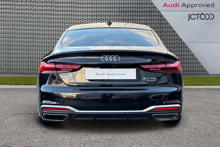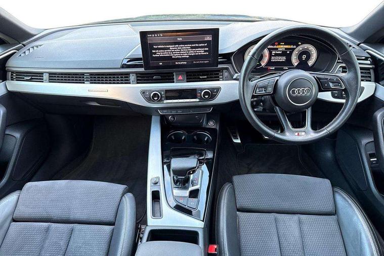 Audi connect safety and service (e-call), Audi connect with Amazon Alexa Integration, Audi drive select (Auto, Comfort, Dynamic, Efficiency and Individual), Audi parking system plus with front and rear sensors, Audi smartphone interface, Audi virtual cockpit - 12.3" full colour digital instrument cluster, vehicle/engine speed, Radio/media information+Driver assistance systems, Automatic start-stop system with coasting functionality and efficiency programme, Bluetooth interface, Electro-mechanical power steering, Email, calendar and text messages displayed via MMI, MMI nav+ with MMI touch - 10.1" high resolution MMI display, touch sensitive, 3D map, route/country info, dynamic route guide, personal route assist, Power operated tailgate, Rear view camera, Service interval indicator, Voice control system, Diesel particulate filter, Sports suspension lowered by 23mm, 8 passive loudspeakers, CD player, DAB digital radio reception, Two additional USB ports for rear passenger in rear centre console, Two SDXC card slots, Audi matrix LED headlights with LED rear lights + dynamic front and rear indicators, Auto dimming door mirrors, Auto dimming rear view mirror, Body colour bumpers, Body colour door handles, Body colour front spoiler lip, Body colour side sill trim, Body coloured door mirrors, Electric adjustable heated door mirrors, Electric folding door mirrors, Electric front windows, Front fog lights, Honeycomb structure radiator grille in grained matt black, Kerb-view function for passenger side, LED daytime running lights, LED side indicator lights integrated into door mirrors, LED third brake light, Matt aluminium silver tailpipe trim, Privacy glass, Rain and light sensors, Rear side wing doors, S line badges on front wings, S line front and rear bumpers with side skirts, S Line rear diffuser in matt anthracite black with trim strip in matt aluminium silver, Side air inlets in grained matt black with matt aluminium silver inlay, Variable front intermittent wipers, Windscreen with acoustic glazing, 3 seat bench in 2nd row, 3 spoke high multifunction leather sport steering wheel with paddle shfit and S badging perforated leather grips, 4 way electric lumbar support for driver and front passenger, 40/20/40 split folding 3 seater rear bench seat, Adjustable steering column, Black cloth headlining, Black perforated leather gearknob, Contrast stitching on seats, steering wheel and gear lever gaiter, Deluxe 3 zone electronic climate control, Front centre armrest, Front head restraints, Front/rear floor mats, Heated front seats, Illuminated door sill trim with S logo, ISOFIX child seat mounting and top tether, Luggage compartment mat, Manual seat adjustment, Rear centre armrest, Rear headrests, Single front passenger seat, Stainless steel pedals, Sunvisors with vanity mirrors, LED interior light pack - A5/RS5, 3x3 point rear seatbelts, 6 airbags - Driver, front passenger, curtain and side airbags, Electromechanical parking brake, Electronic Stabilisation Control (ESC) including ABS, ASR and EDL, Front passenger airbag deactivation, Height adjustable front seatbelts, Hill hold assist, Manual child lock in rear doors, Multi collision brake assist, Pop-up bonnet for pedestrian protection, Pre sense city, Seatbelt monitoring, Tyre pressure warning, Variable restraint system, Warning triangle and first aid kit, Anti theft alarm system, Anti theft wheel bolts, Immobiliser, Keyless Go, Remote central locking, Matt brushed aluminium inlays, Tool kit, Tyre repair kit,
